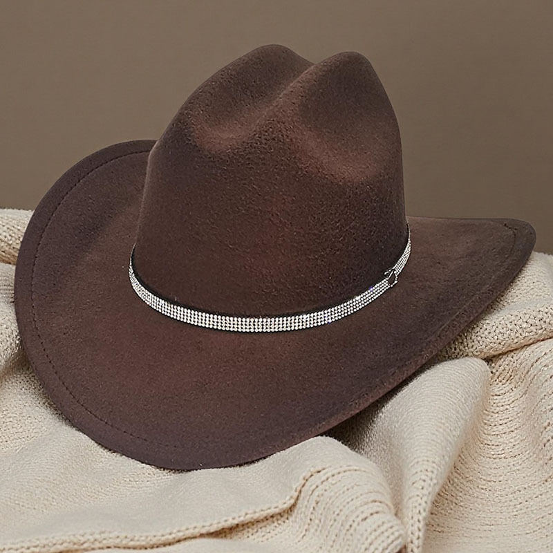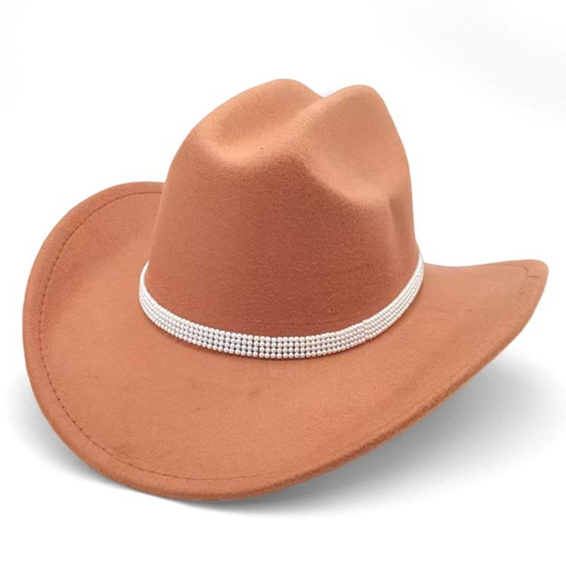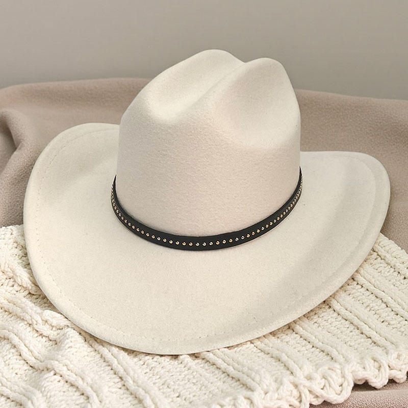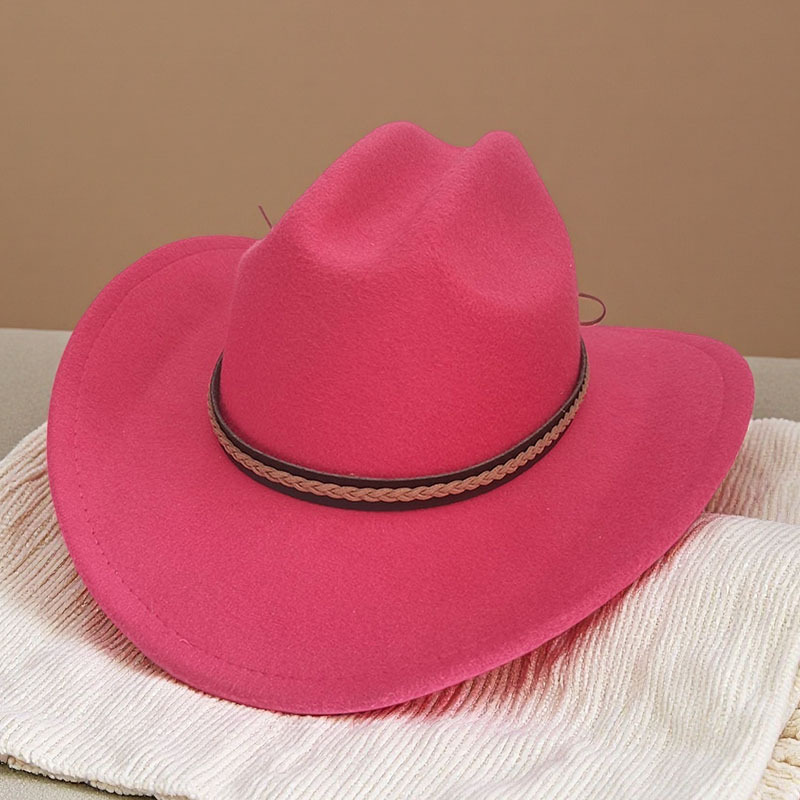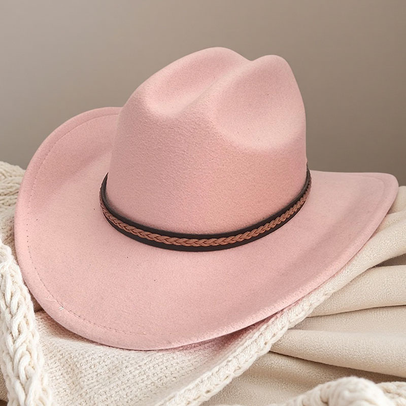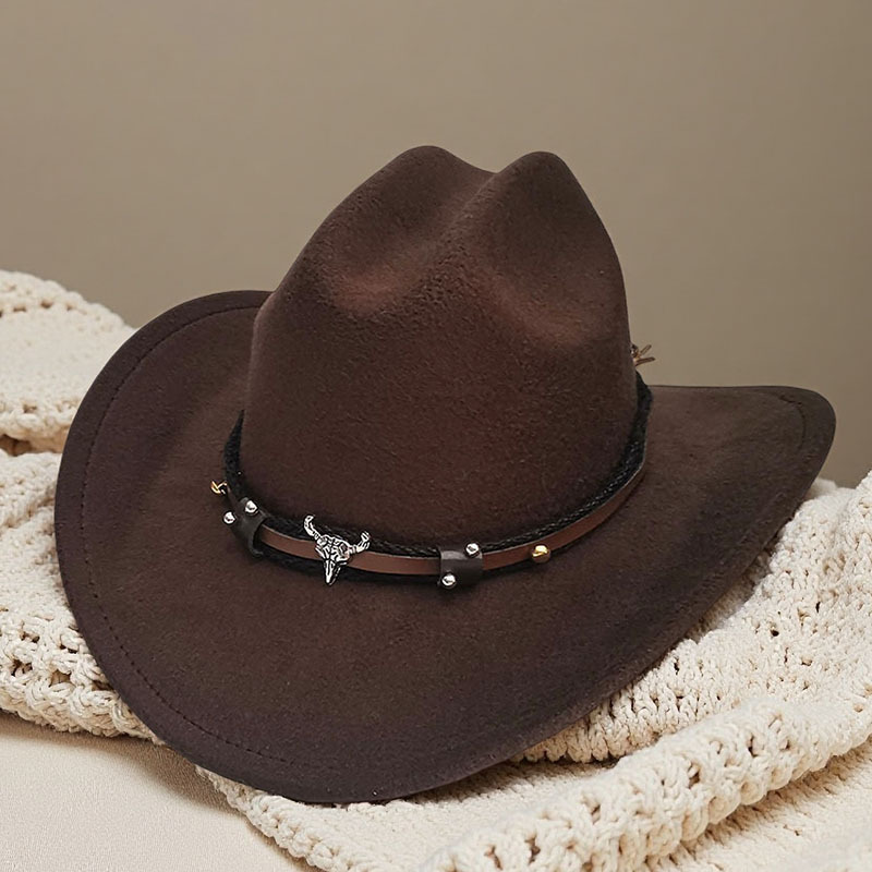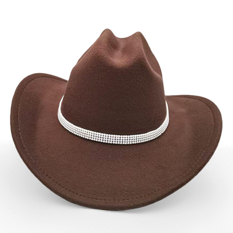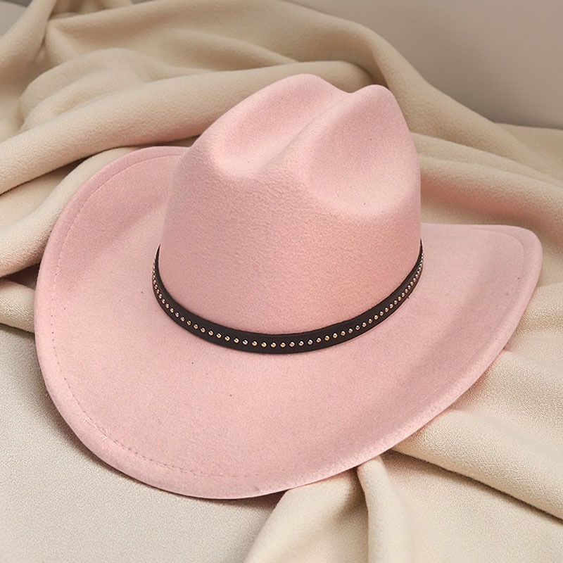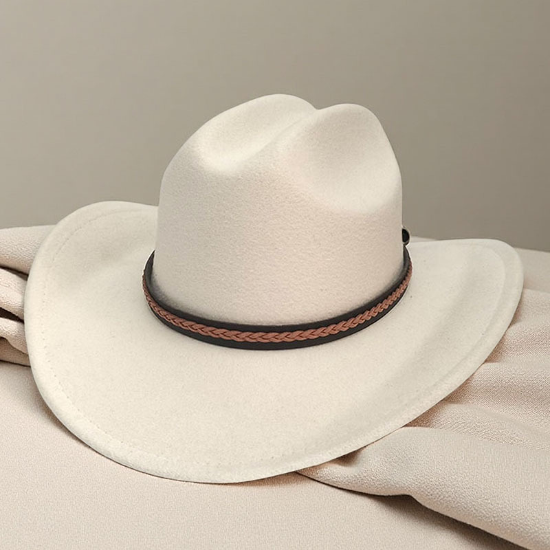 跨境亚马逊新款一字顶男女士大帽檐西部牛仔帽弯檐帽子荔枝纹皮带