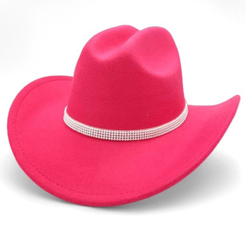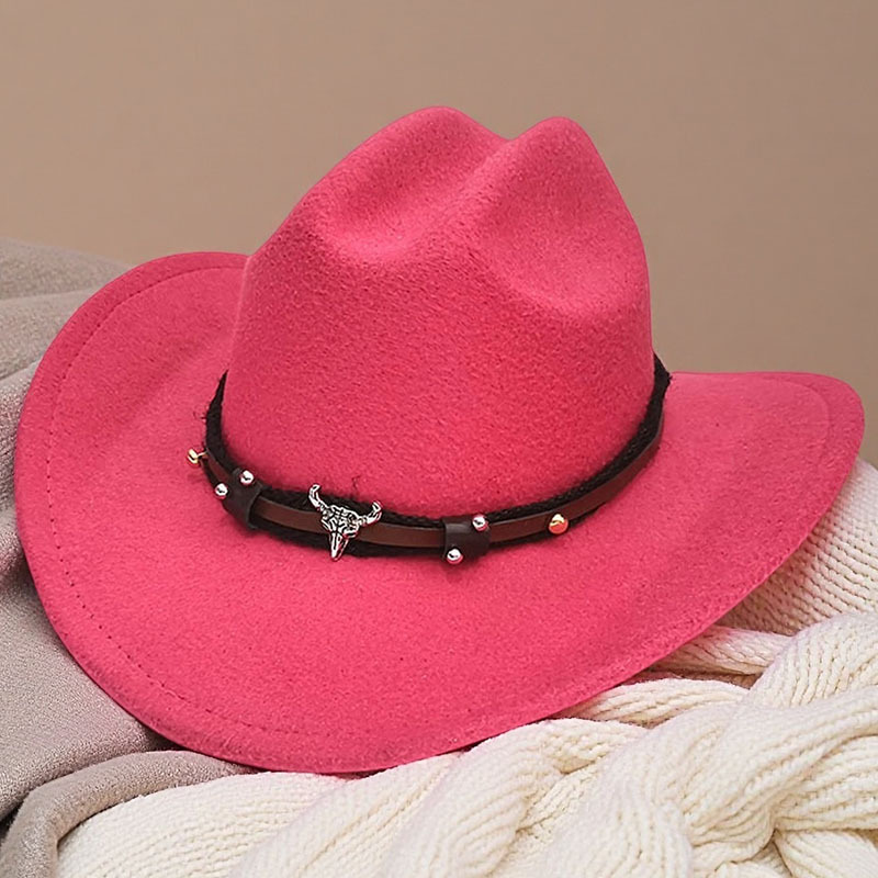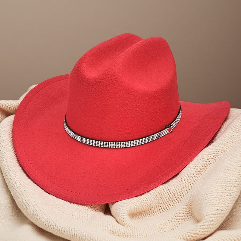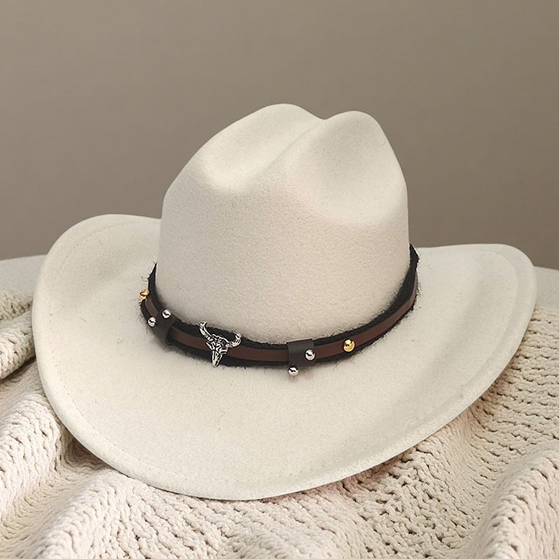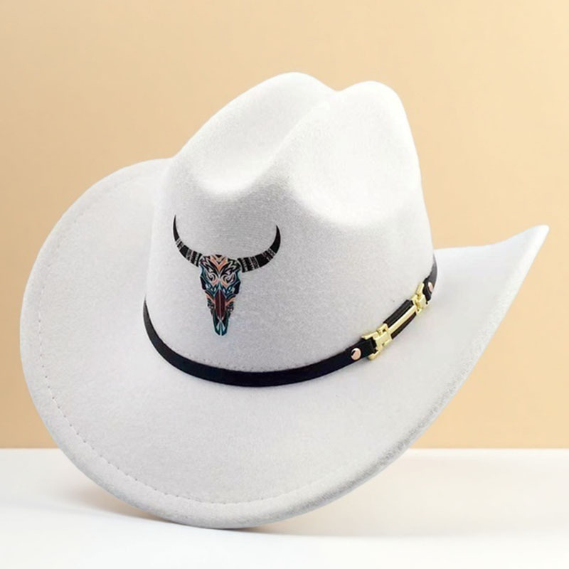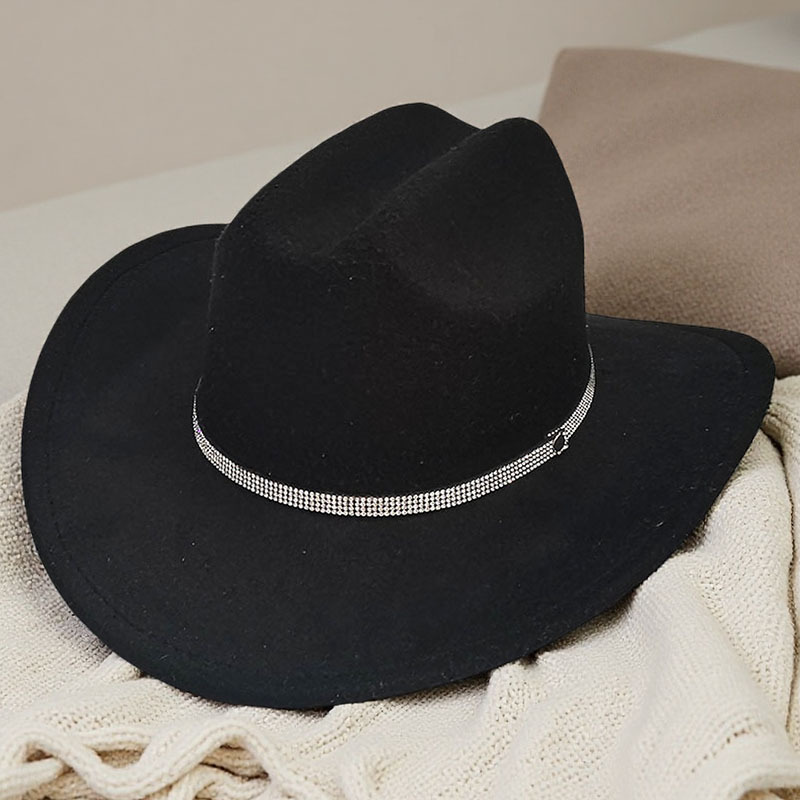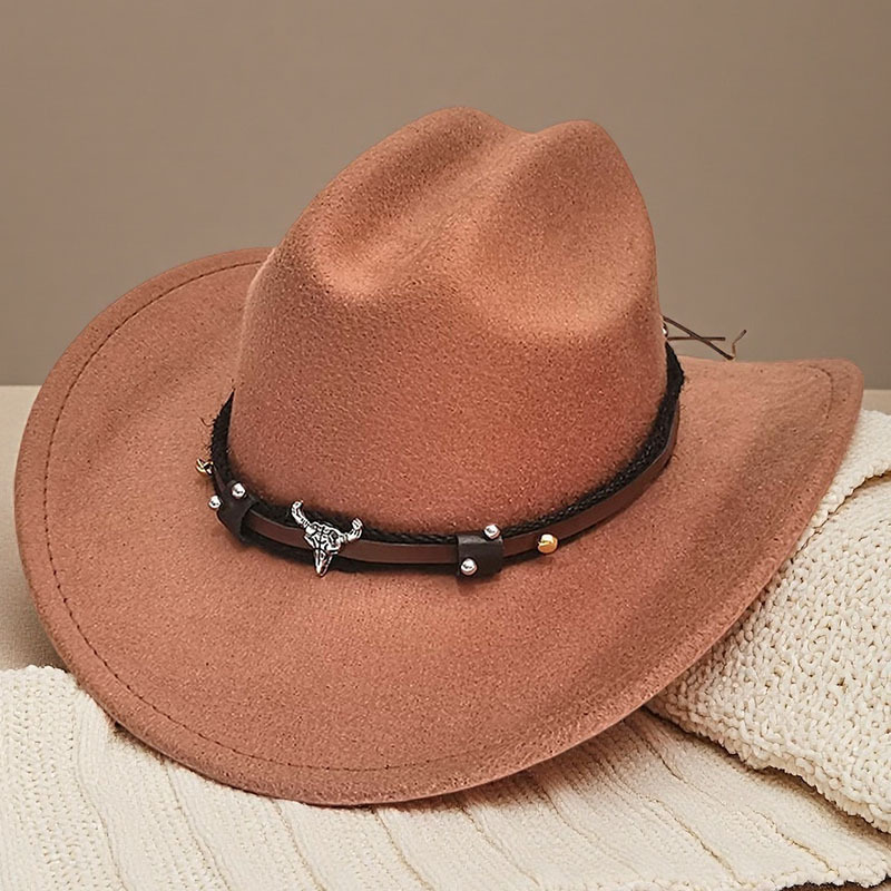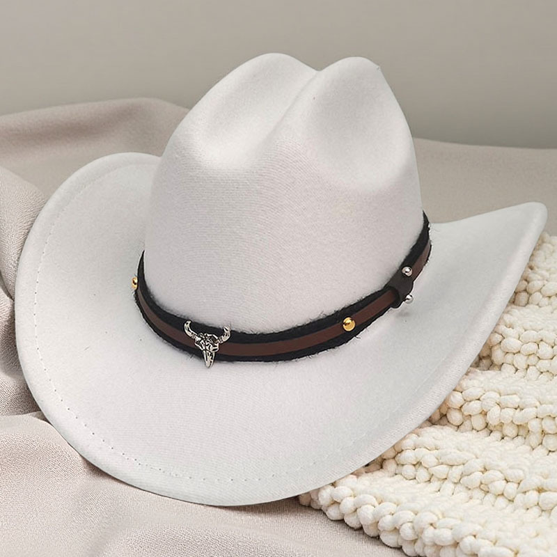 跨境亚马逊新款一字顶男女士大帽檐西部牛仔帽弯檐帽子荔枝纹皮带