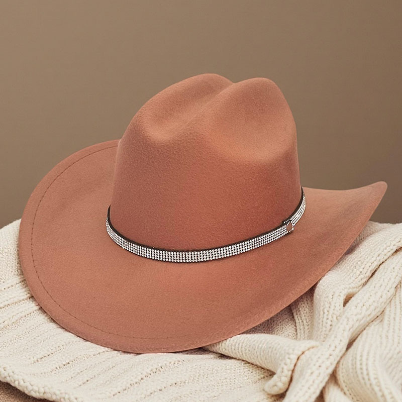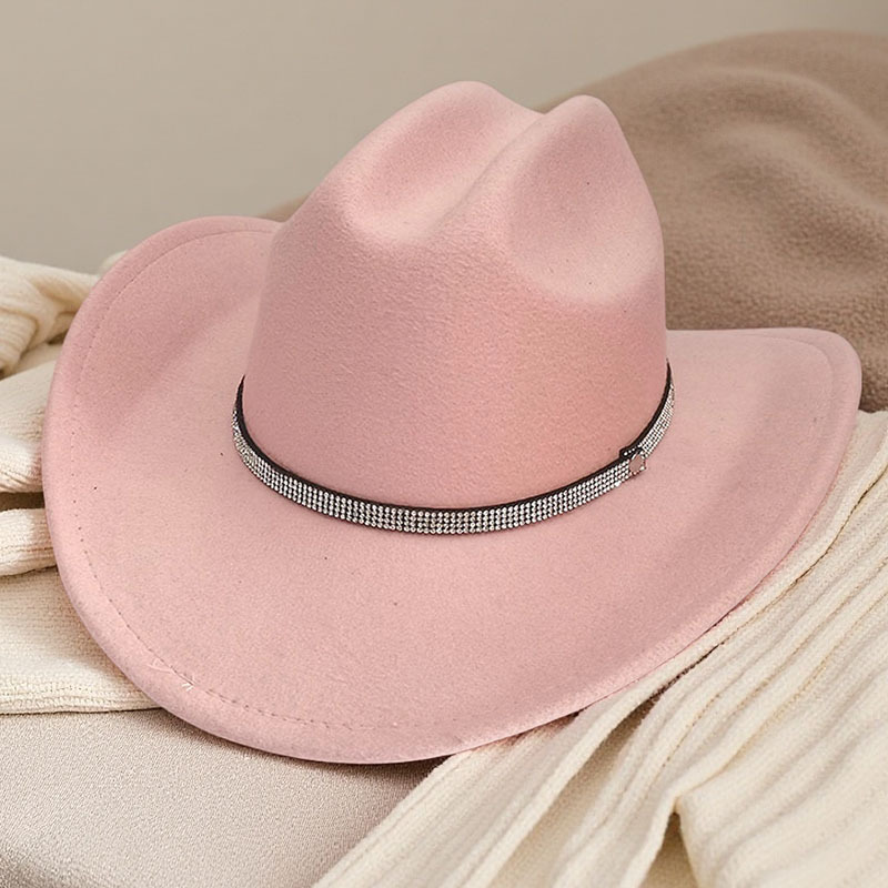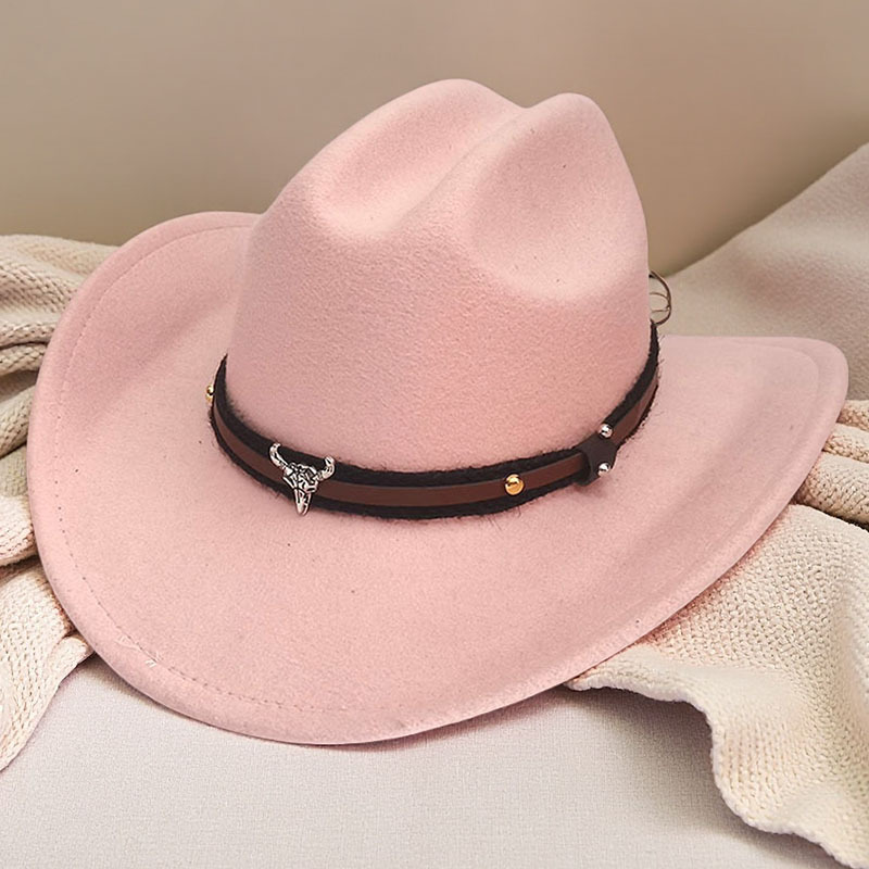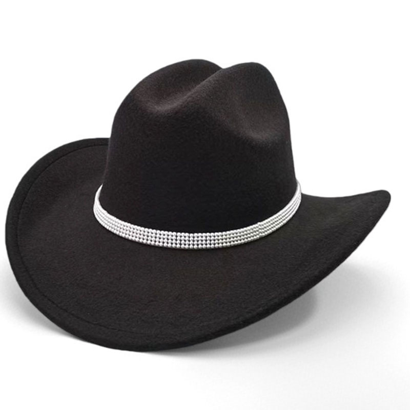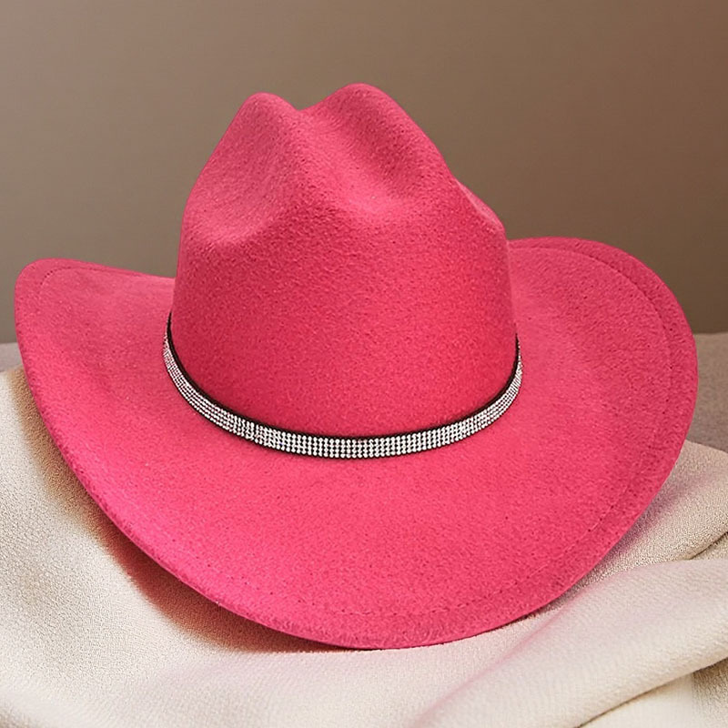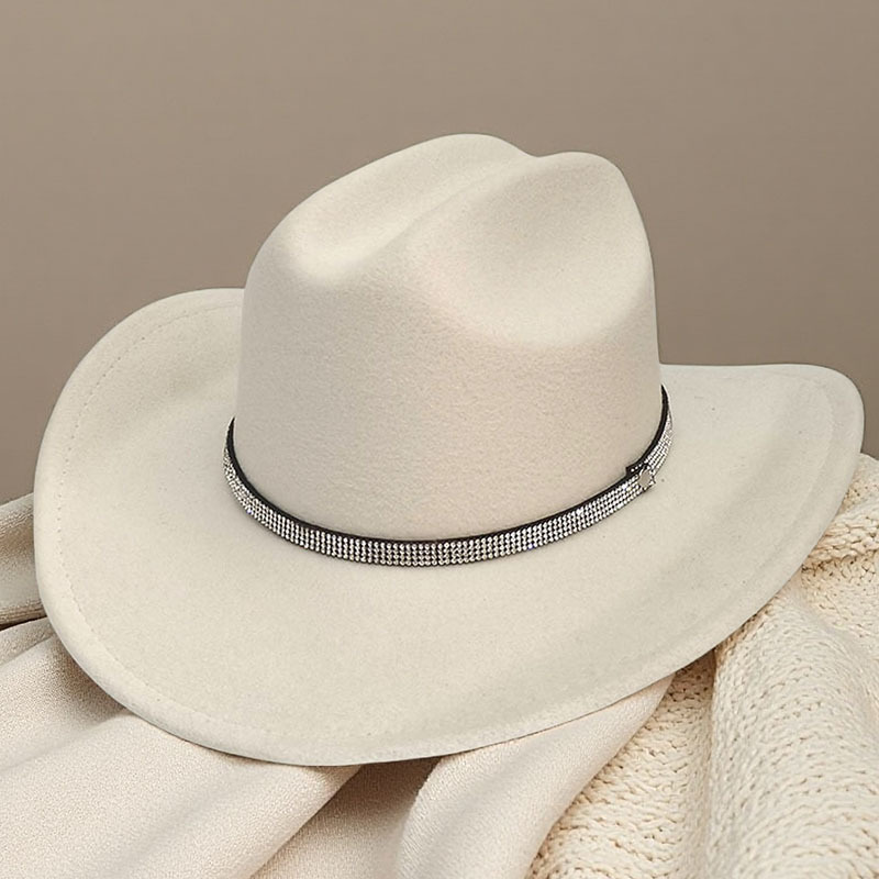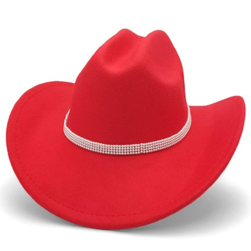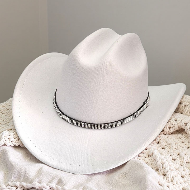跨境亚马逊新款一字顶男女士大帽檐西部牛仔帽弯檐帽子荔枝纹皮带