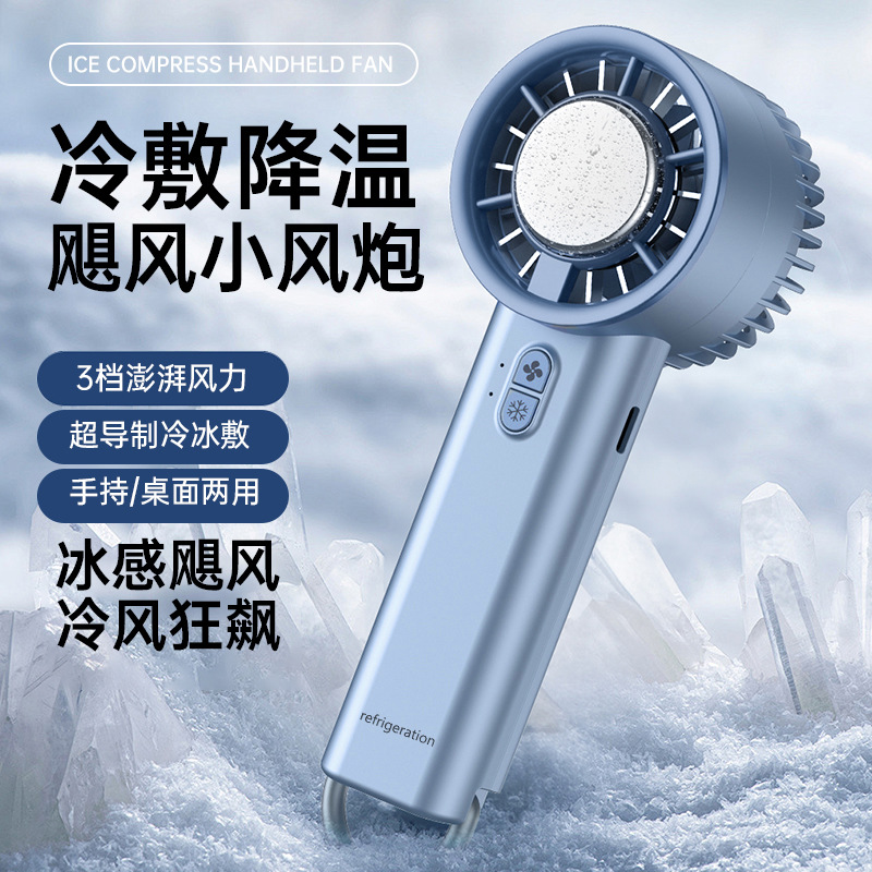 新款半导体冰敷制冷风扇手持便携式小型桌面充电涡轮迷你风扇