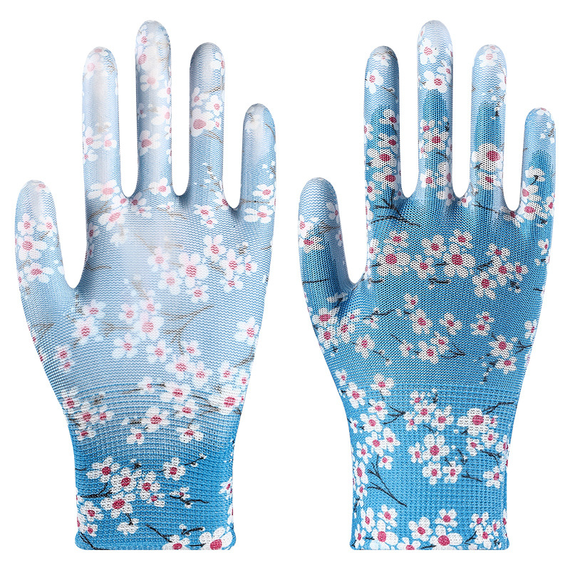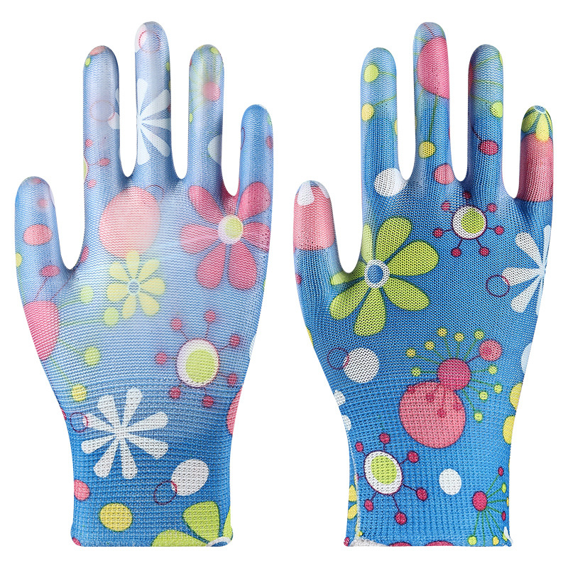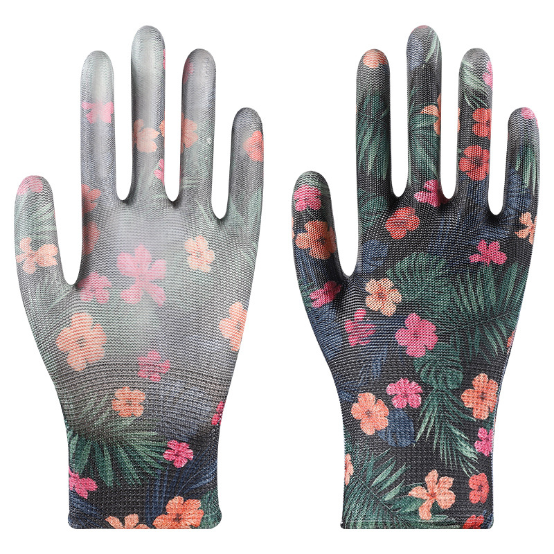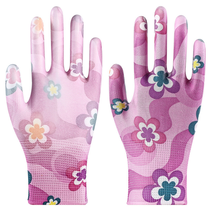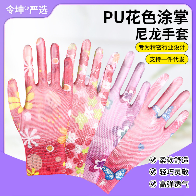 印花PU劳保手套尼龙采摘透气干活耐磨防滑劳动工作弹力防晒劳保