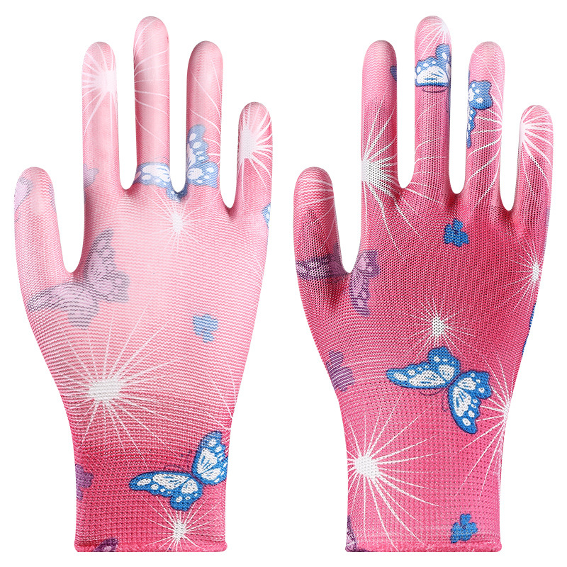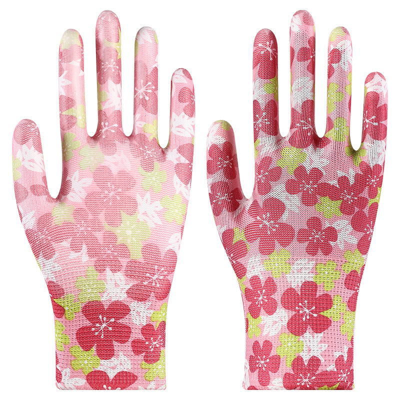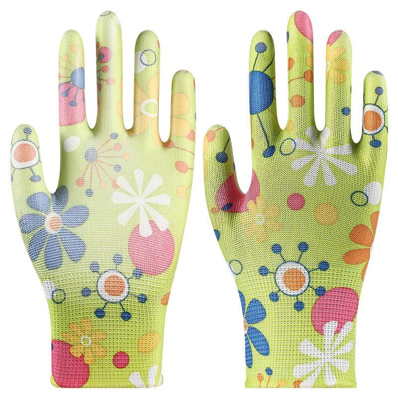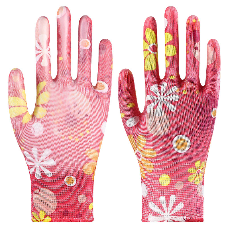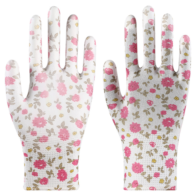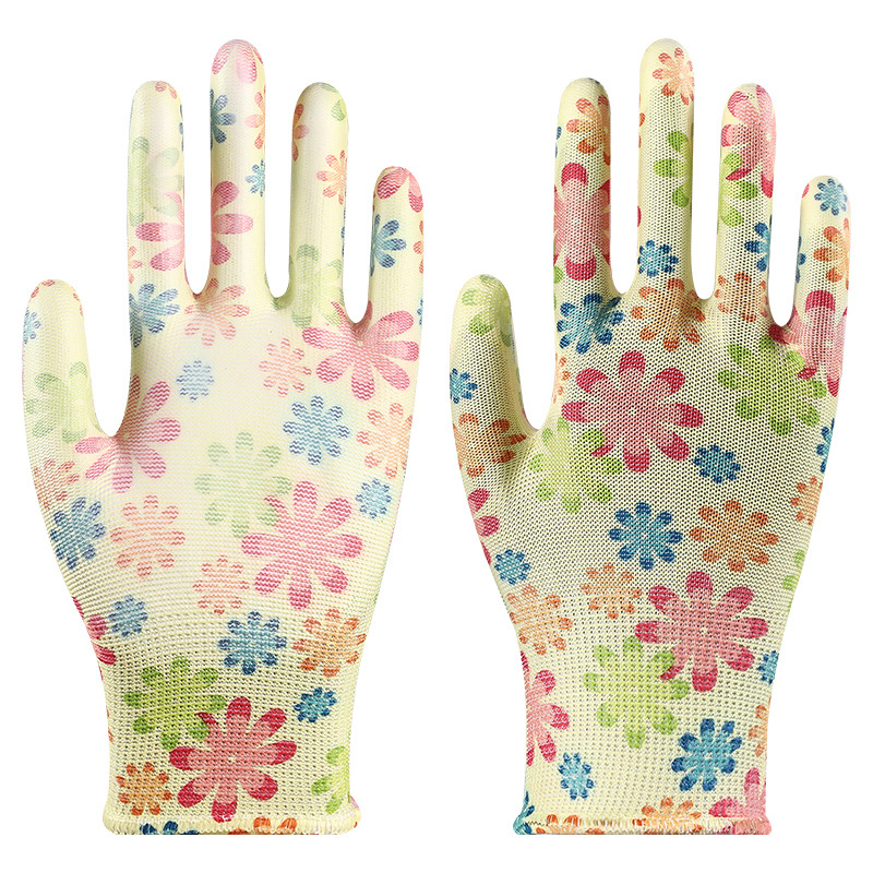 印花PU劳保手套尼龙采摘透气干活耐磨防滑劳动工作弹力防晒劳保