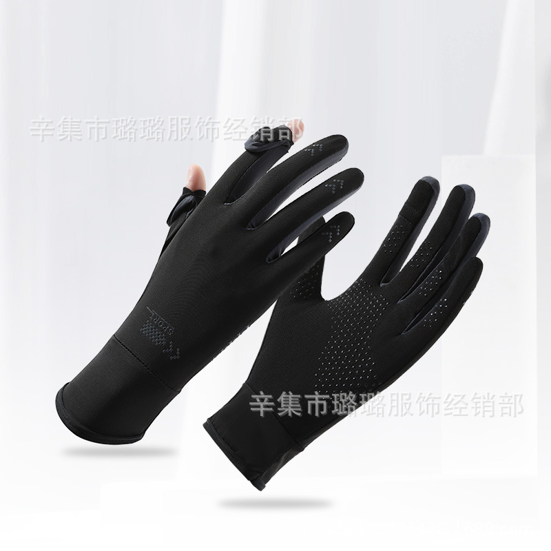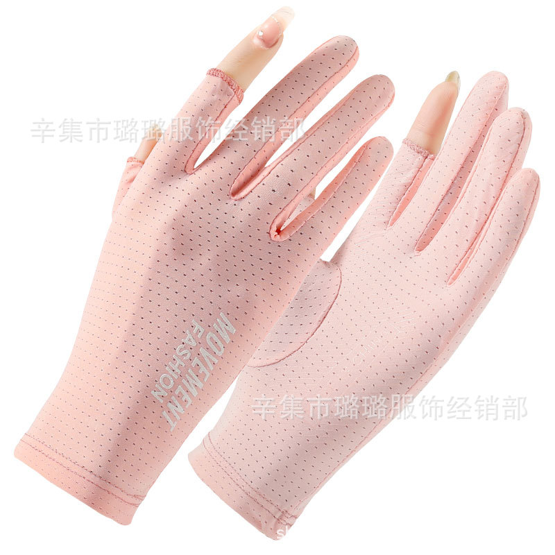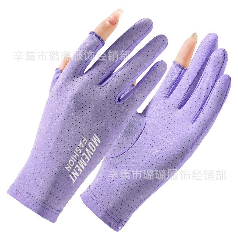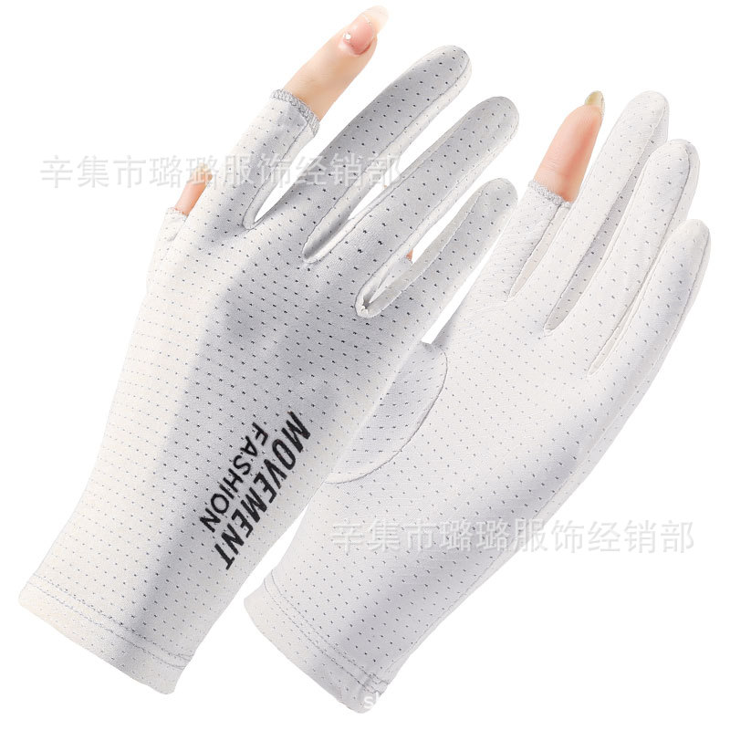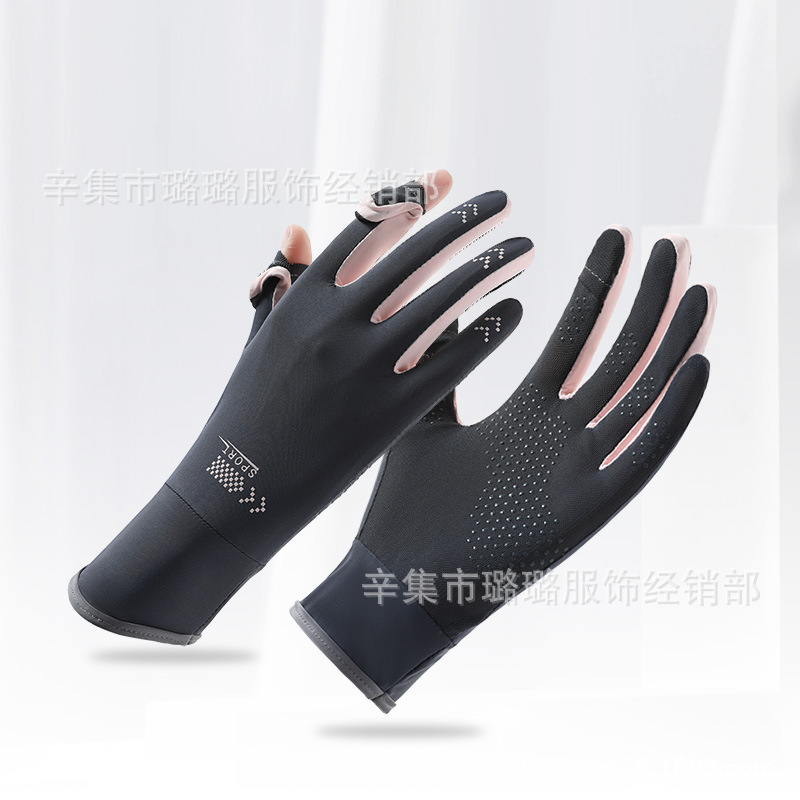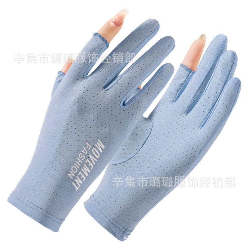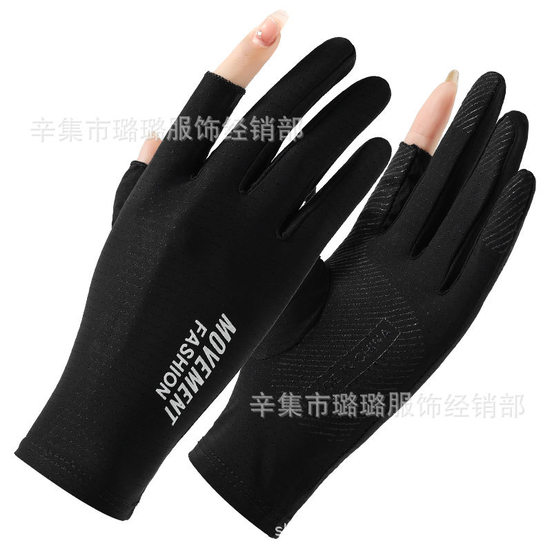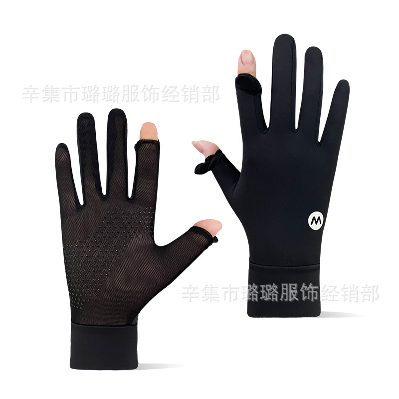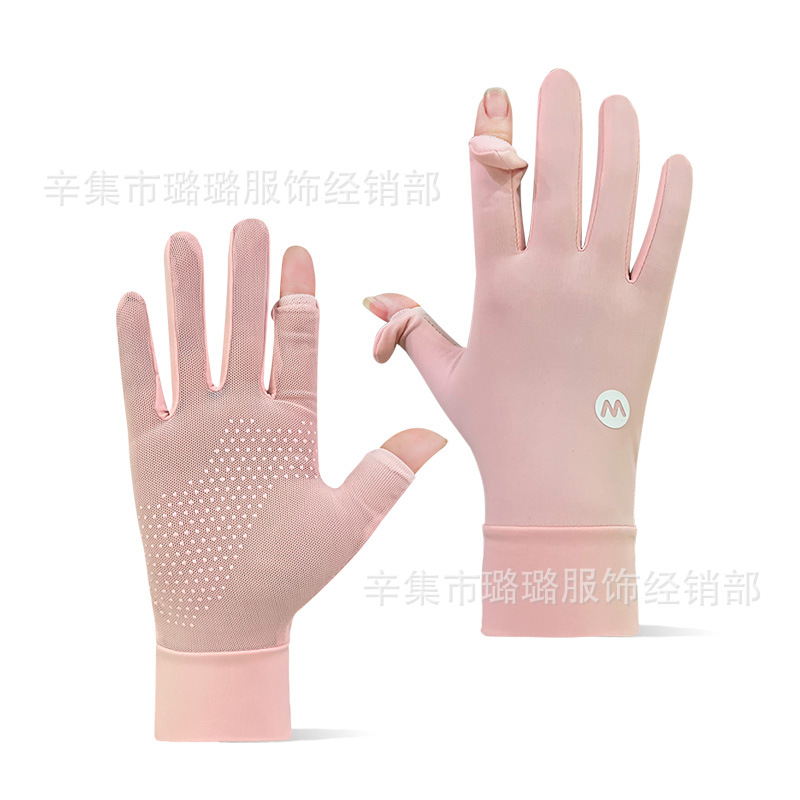 二指手套女 夏季薄款透气锦纶冰丝触屏手套 防晒防磨开车骑行手套