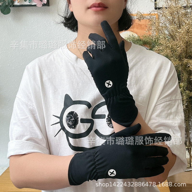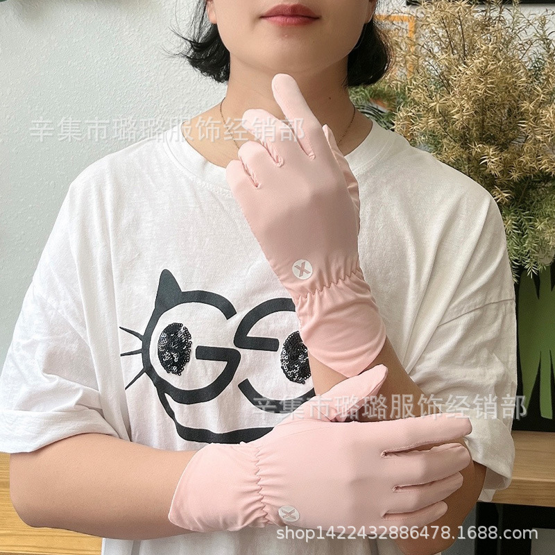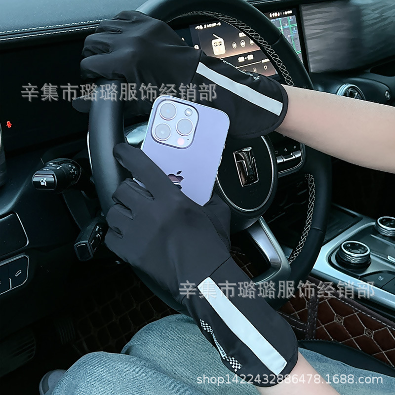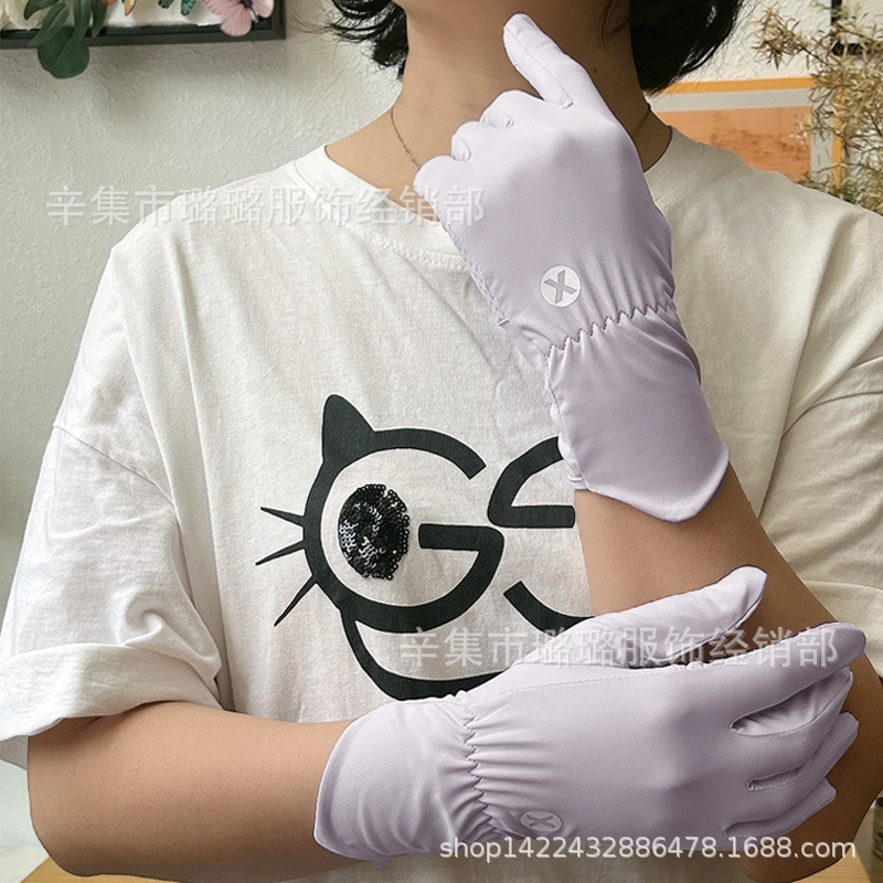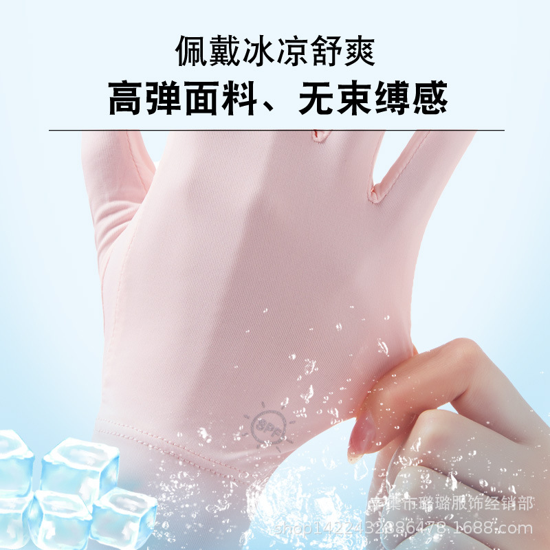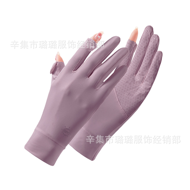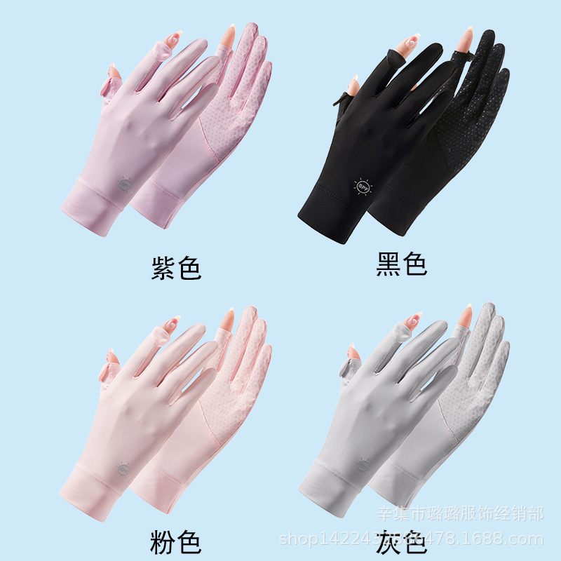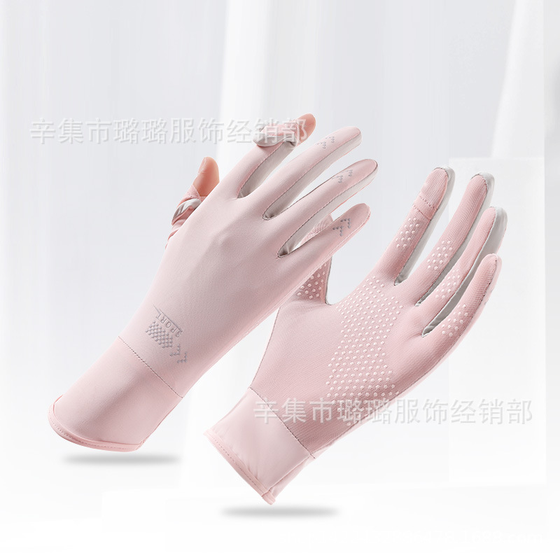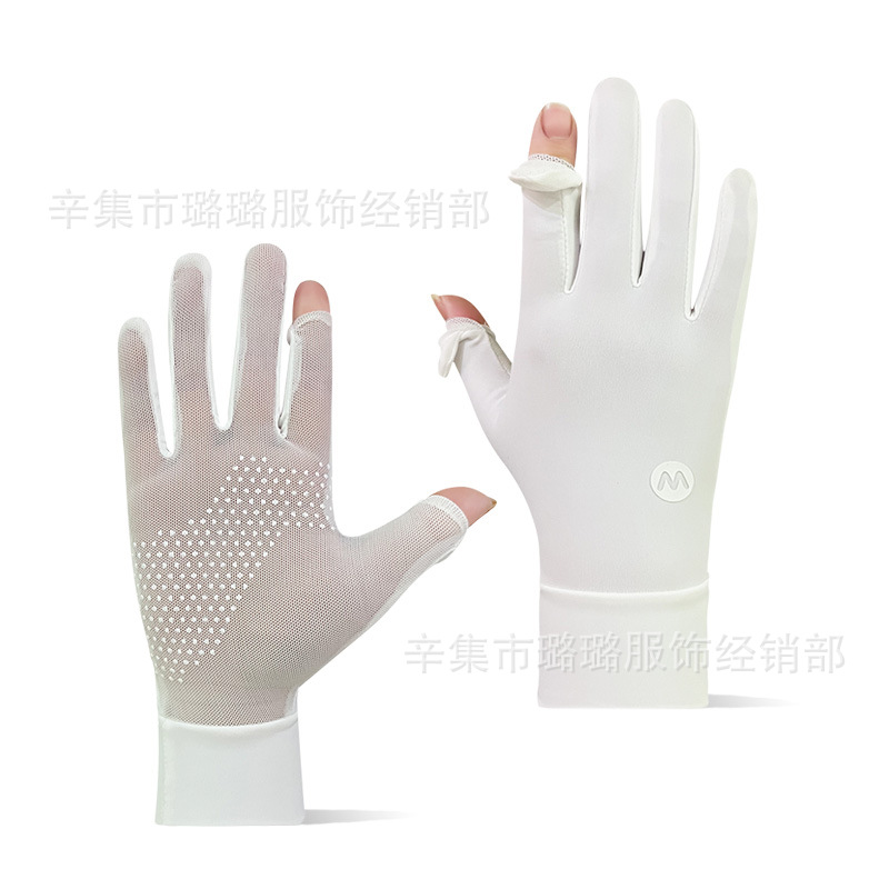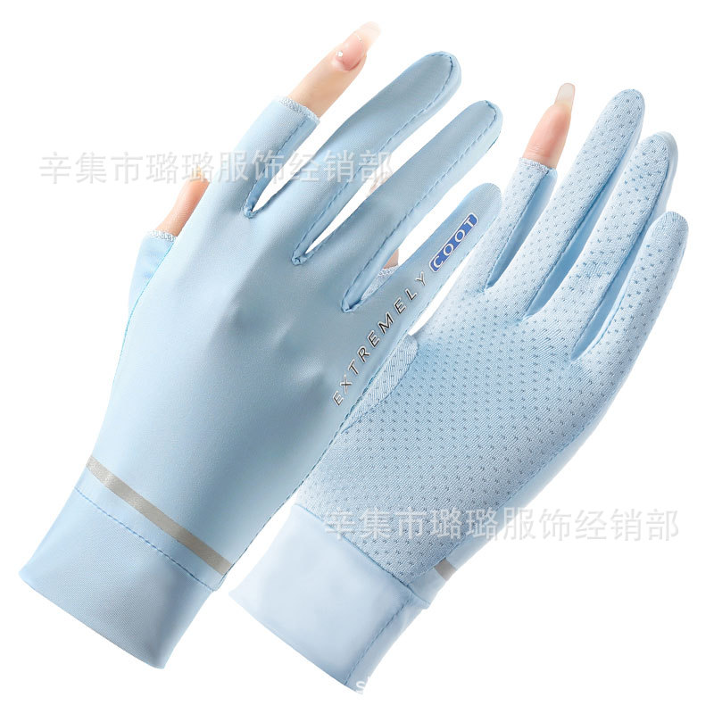 二指手套女 夏季薄款透气锦纶冰丝触屏手套 防晒防磨开车骑行手套