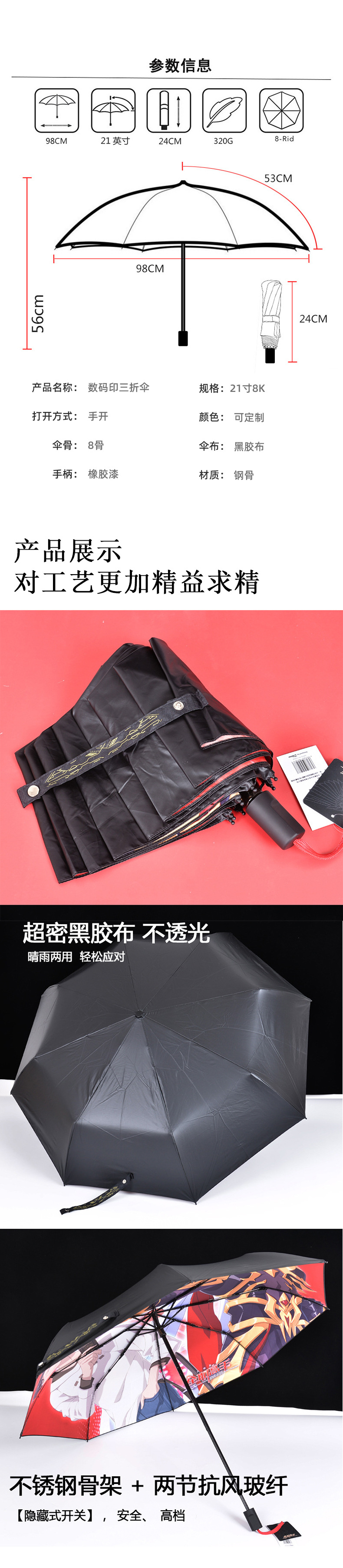 文创动漫雨伞uv黑胶折叠伞手动晴雨防晒遮阳礼品伞广告伞定制logo