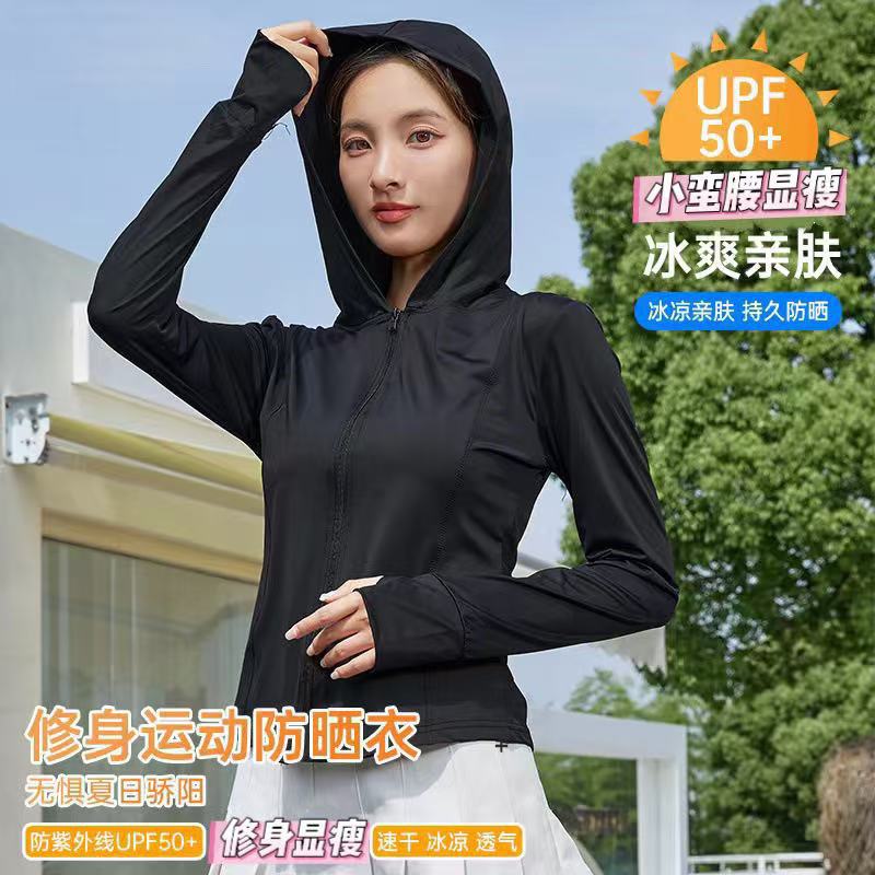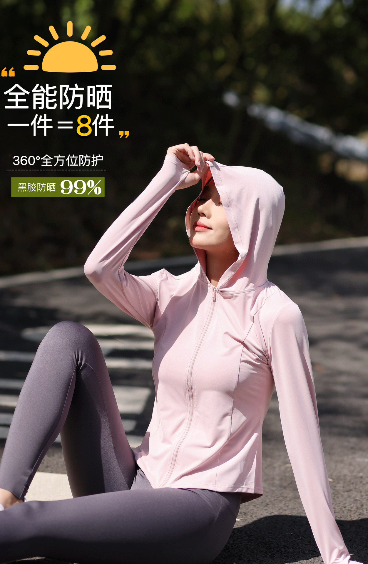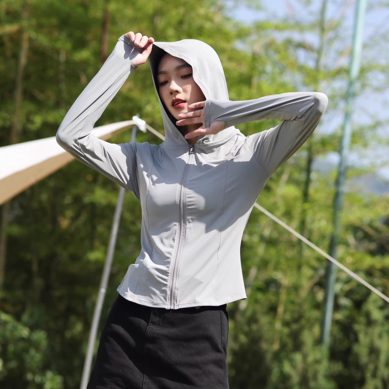 2025新款遮阳连帽女外套防紫外线防晒服修身显瘦运动瑜伽防晒衣