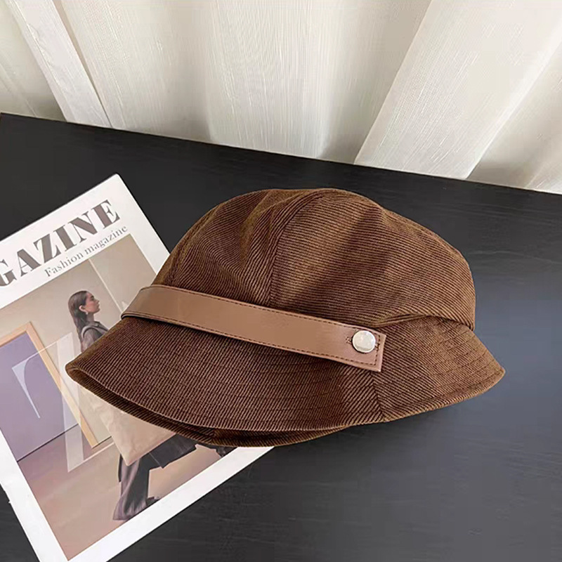 秋冬新款高品质灯芯绒渔夫帽英伦风休闲百搭时尚文艺百搭报童帽