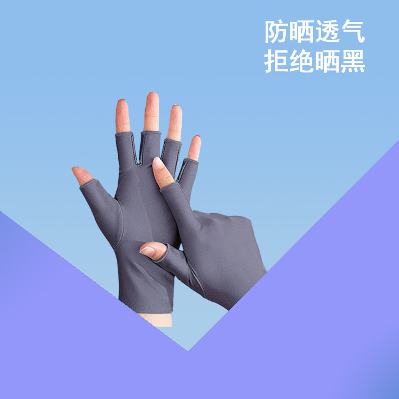 半指手套高级感简约骑行开车触屏男宽松冰丝防晒二指女士夏季美甲