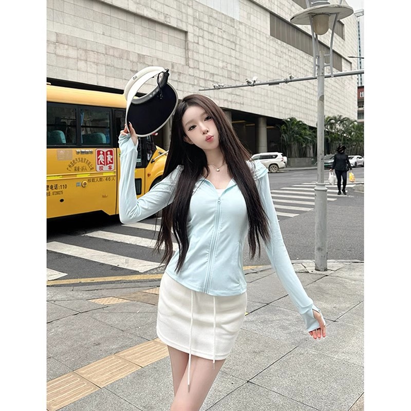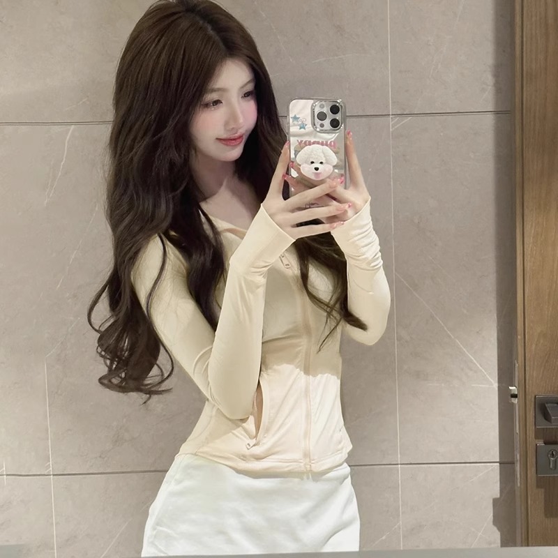 薄款透气防晒衣修身女上衣露营新款连帽冰丝紧身瑜伽女款户外运动