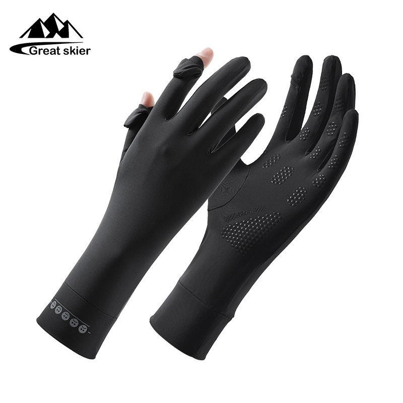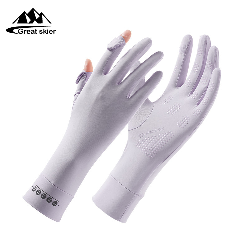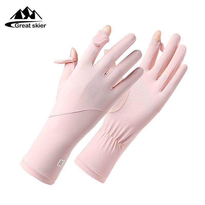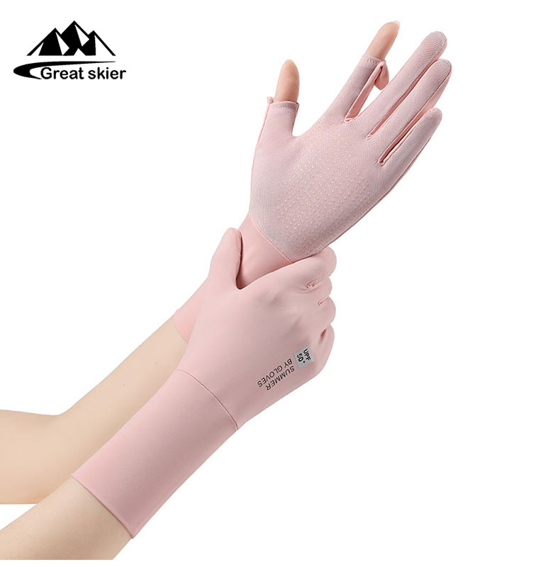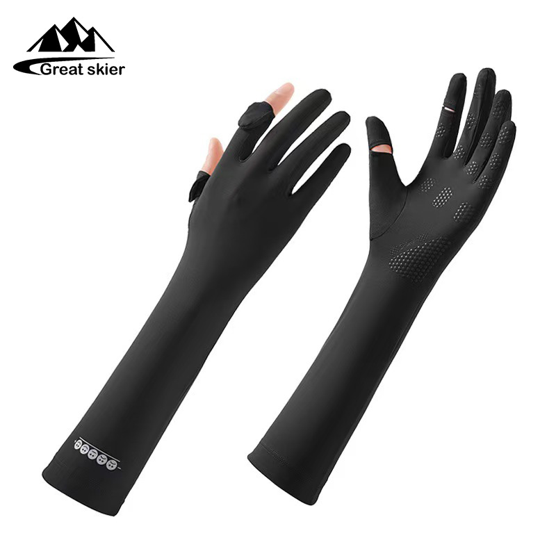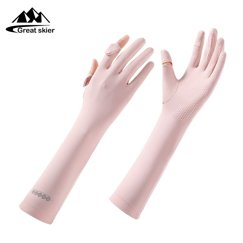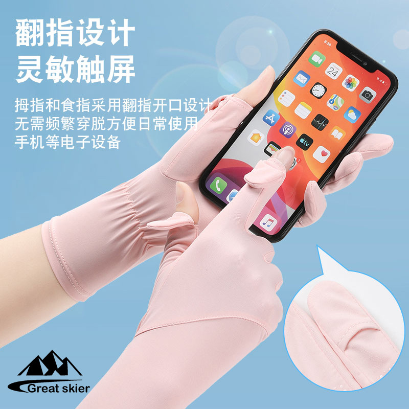 防晒手套女士夏季超薄骑行防紫外线防滑透气触屏冰丝加长翻盖袖套