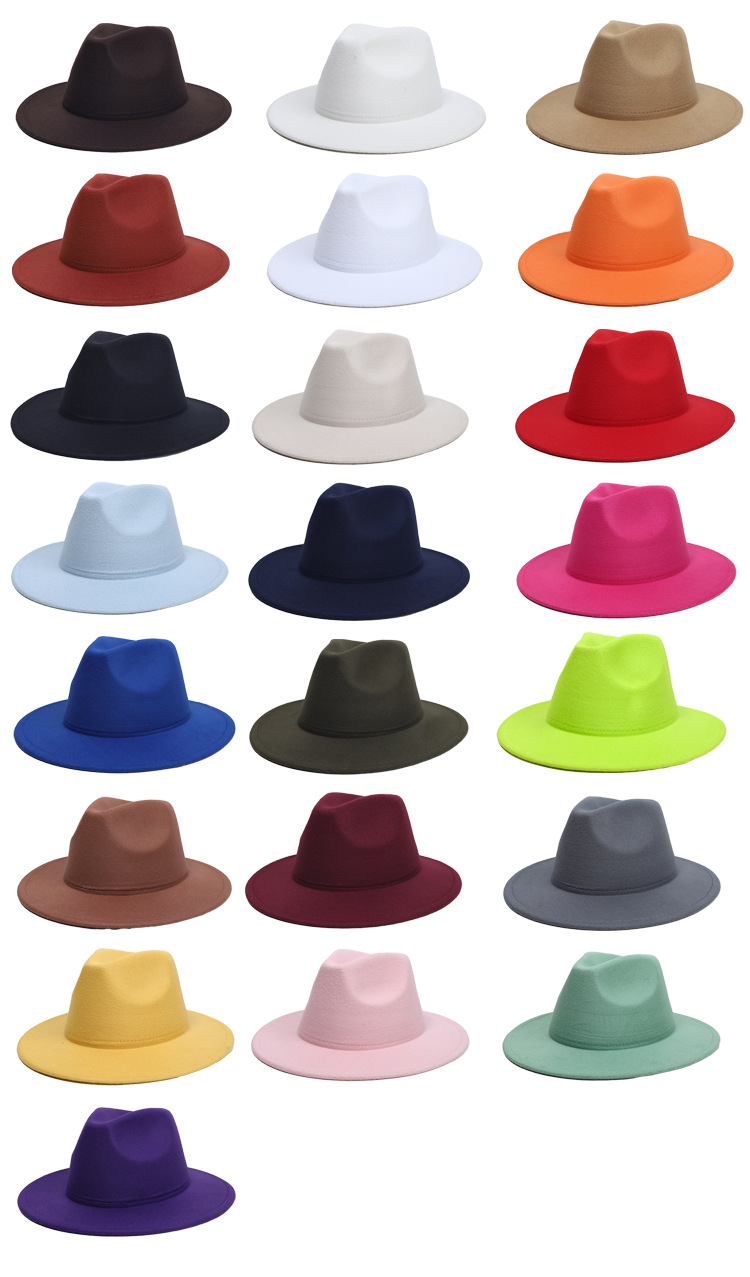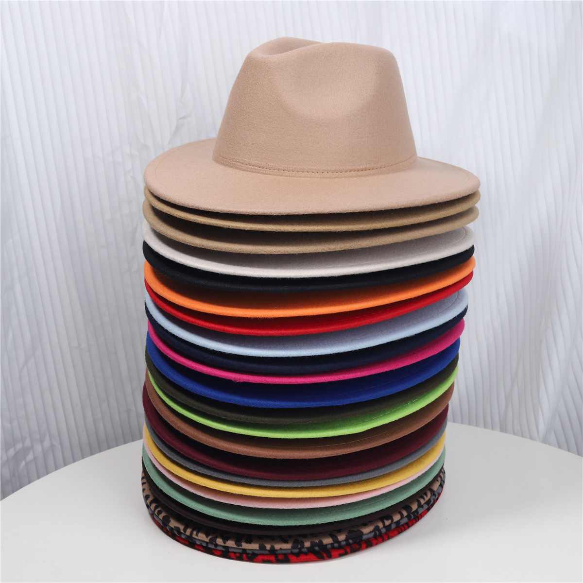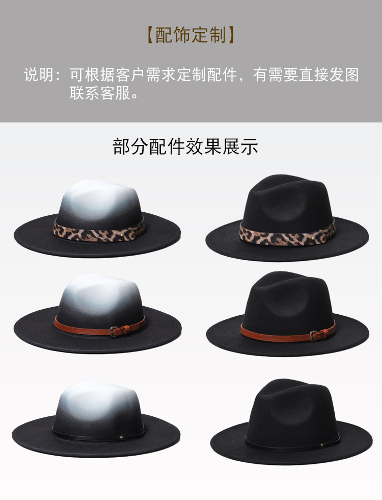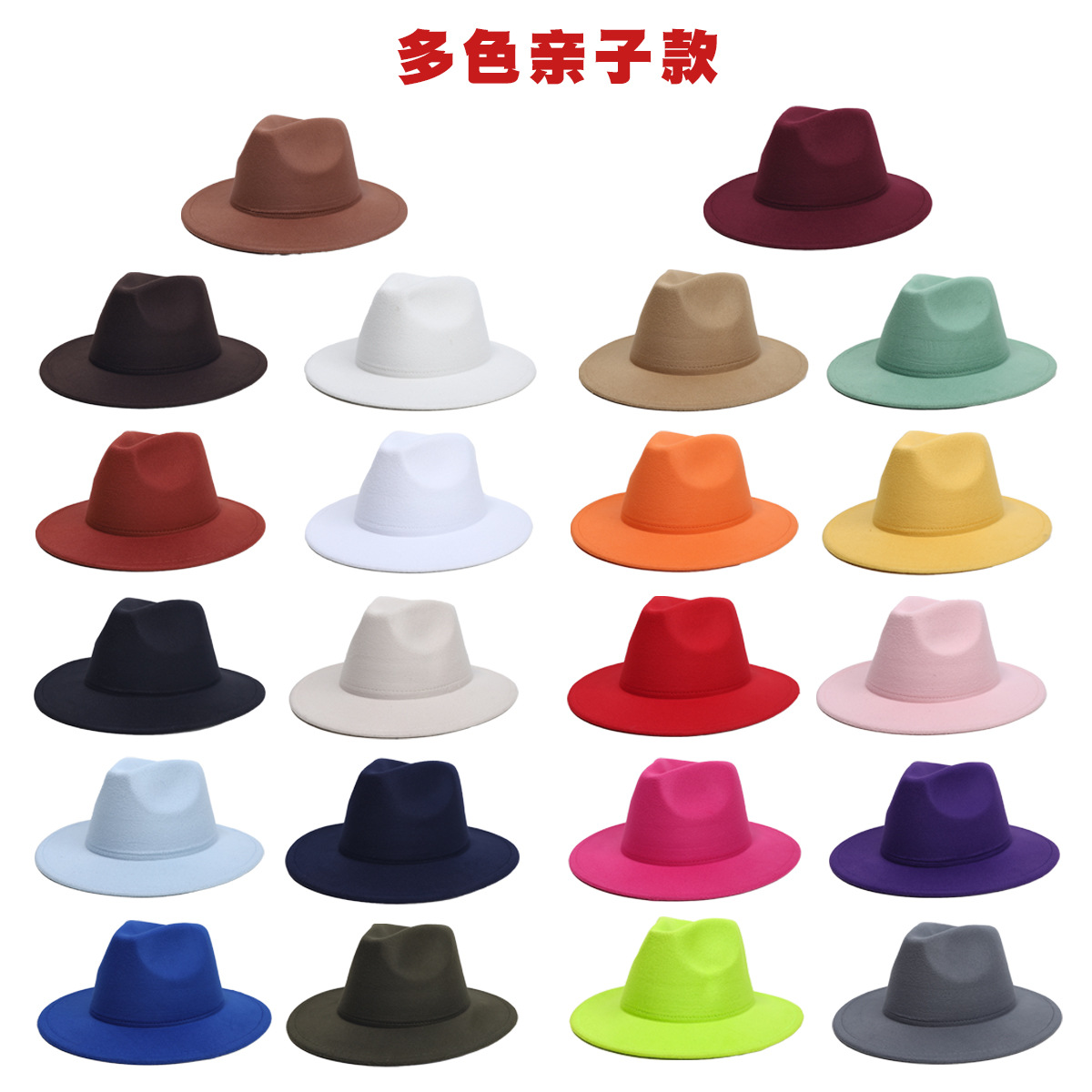 欧美跨境速卖通毛呢礼帽英伦风爵士帽男纯色大沿光板帽亲子款毡帽