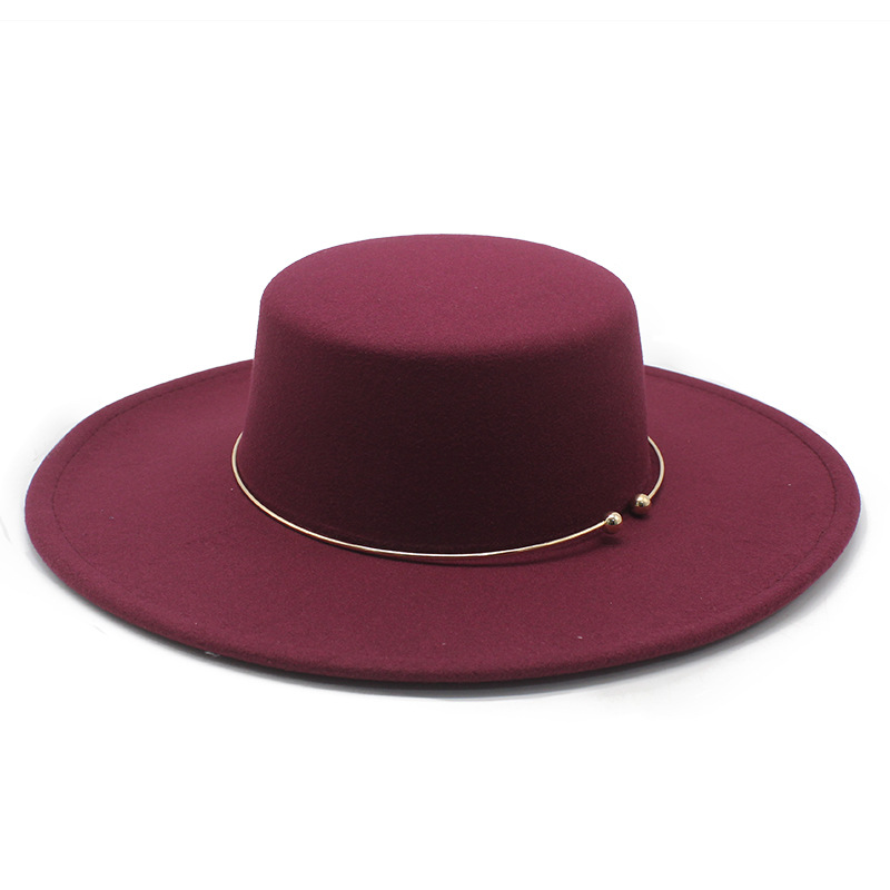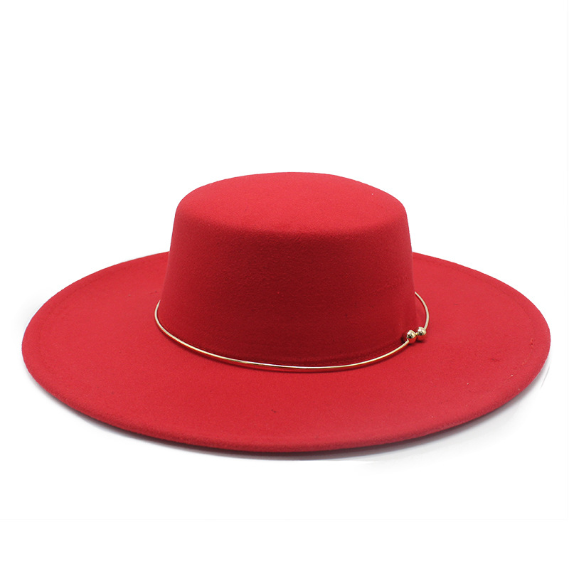 2021秋冬跨境新款加厚男女礼帽 羊毛毡平顶帽子10cm大檐毛毡帽