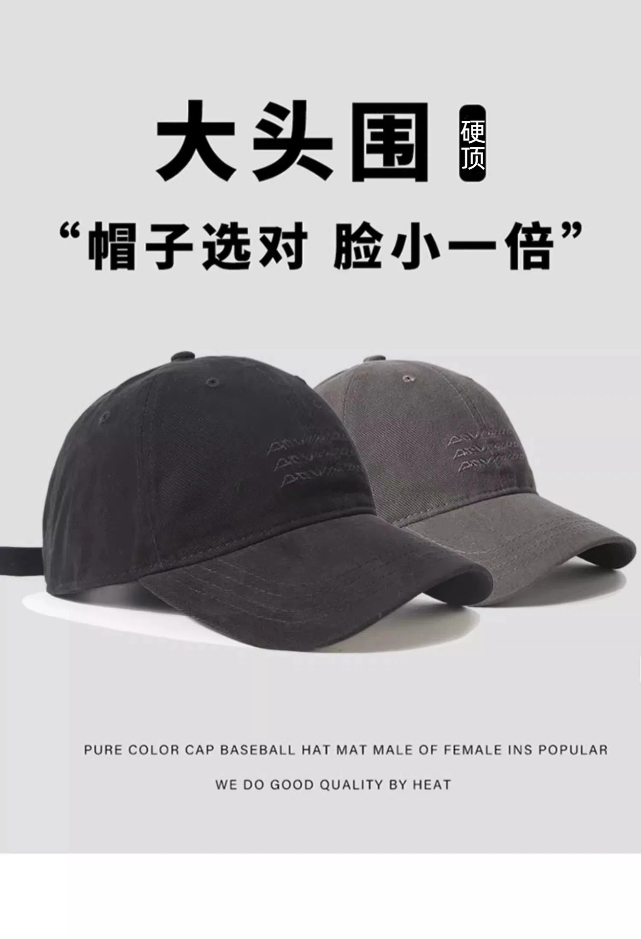 新款大头围硬顶棒球帽女韩版时尚复古显脸小磨毛遮阳防晒鸭舌帽男