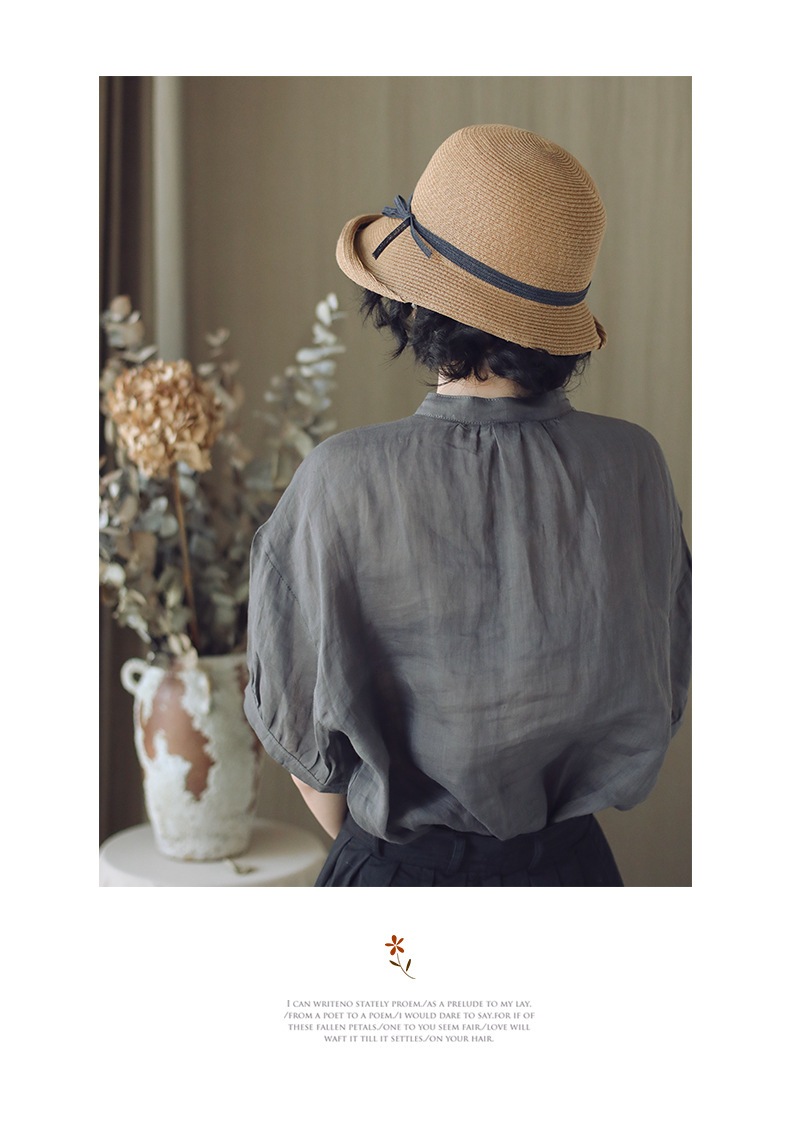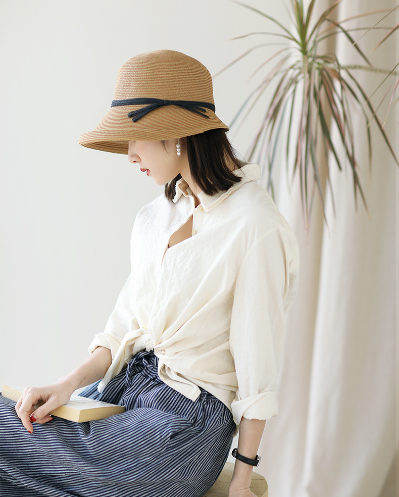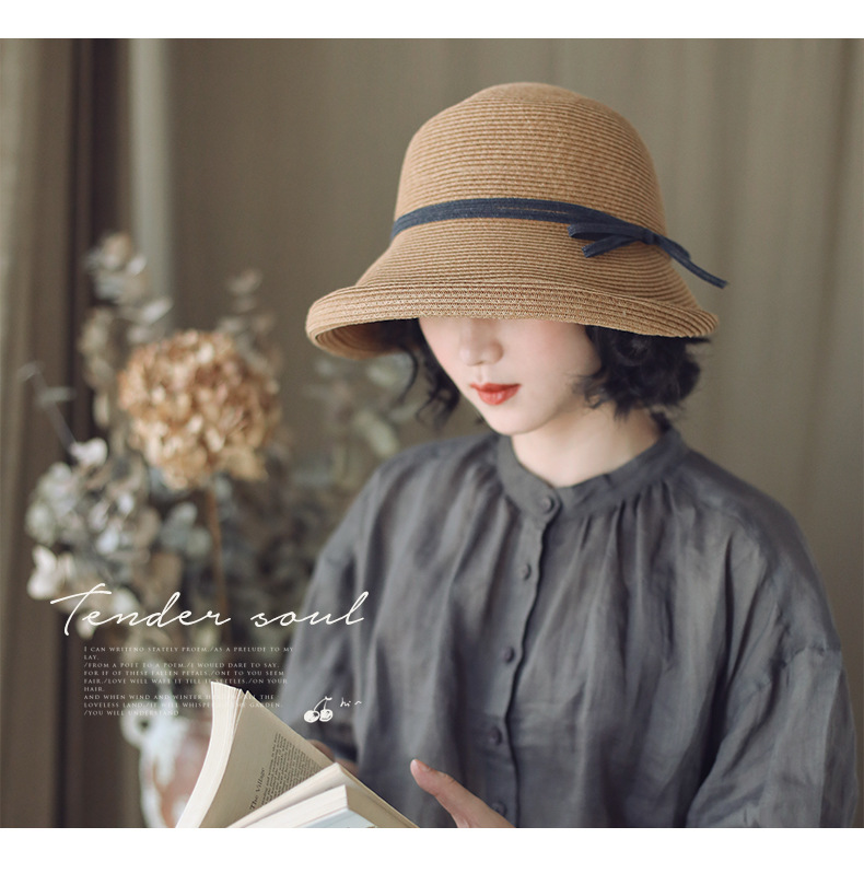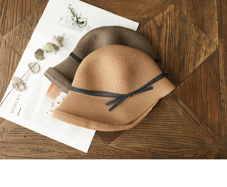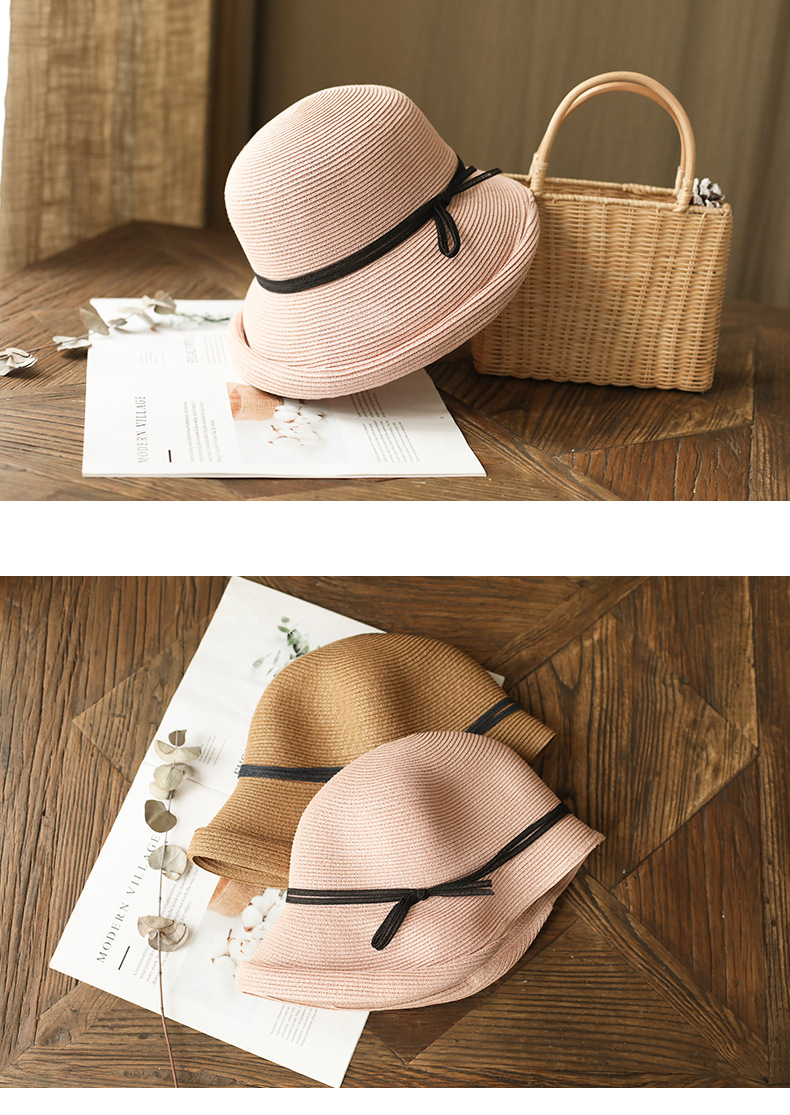 赫本风遮阳草帽女复古可折叠盆帽文艺渔夫帽子简约太阳帽休闲凉帽