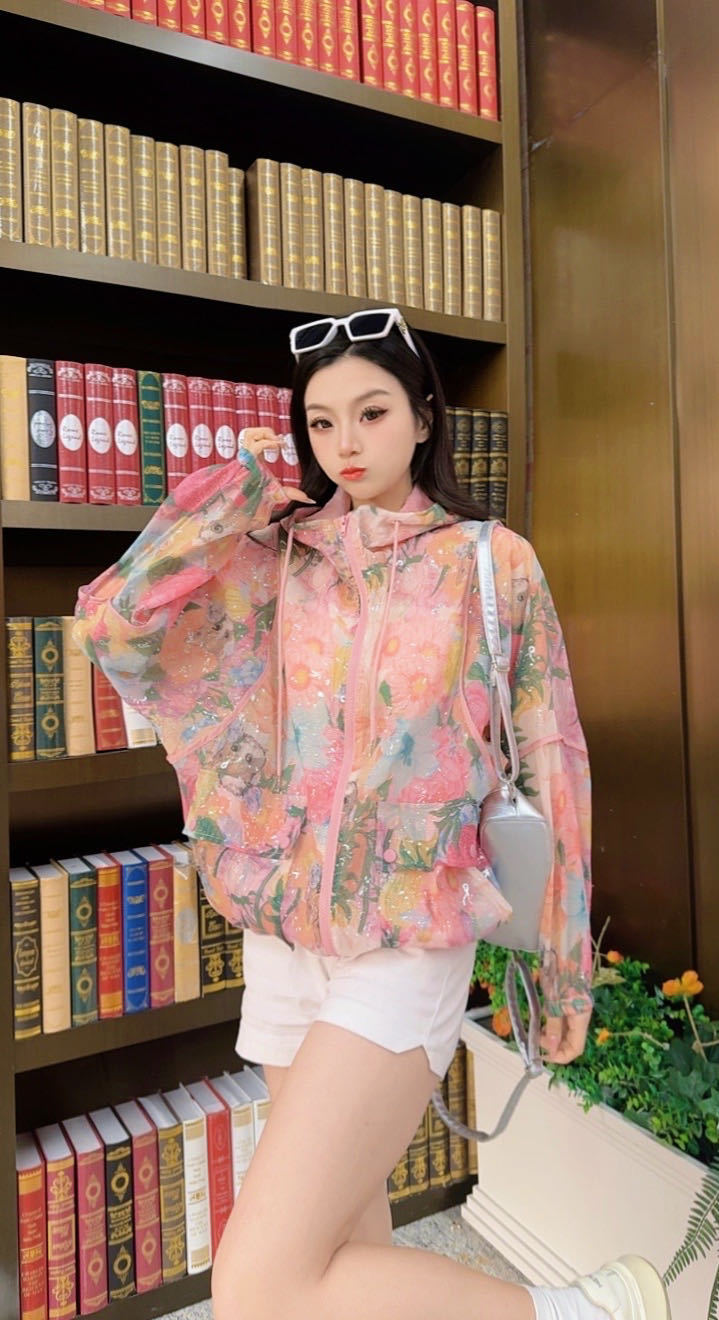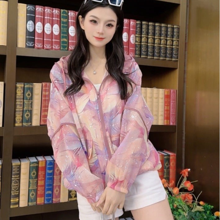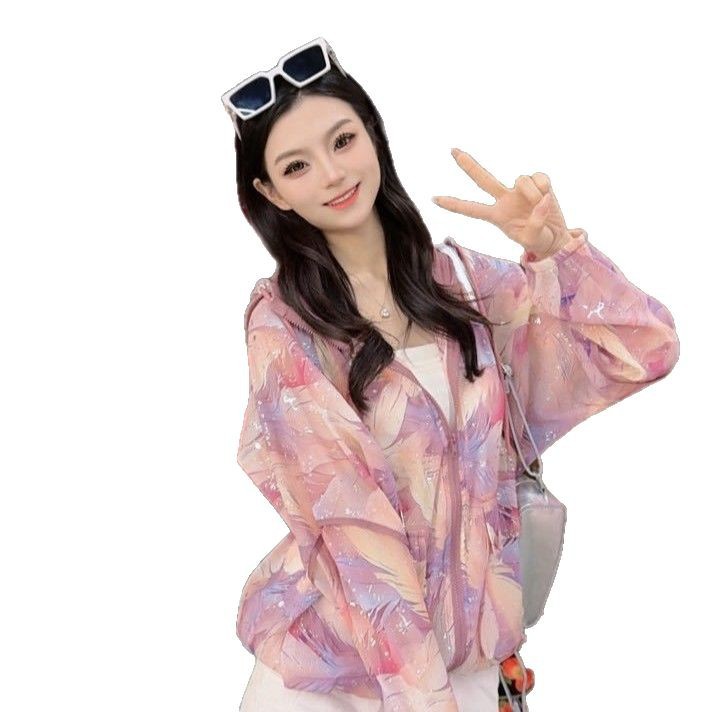 夏季时尚印花防晒衣外套女宽松百搭透气薄款连帽拉链长袖上衣批发