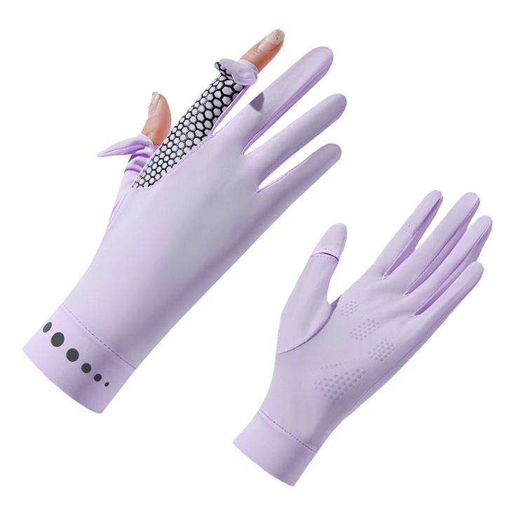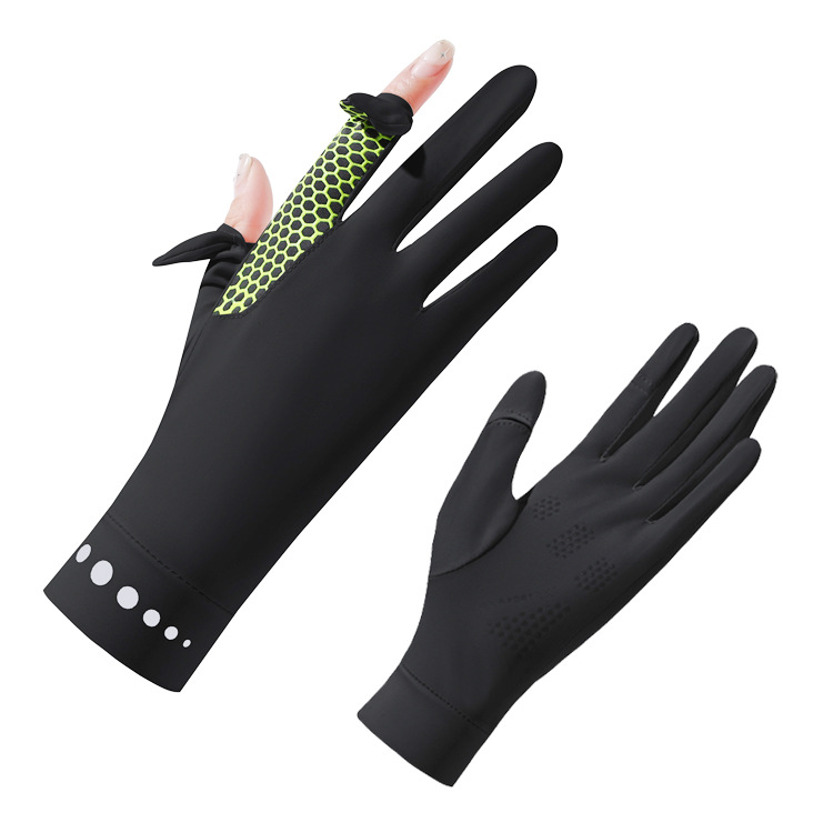 防晒夏季手套男女开车骑行防滑钓鱼防紫外线触屏露指翻盖冰丝手套