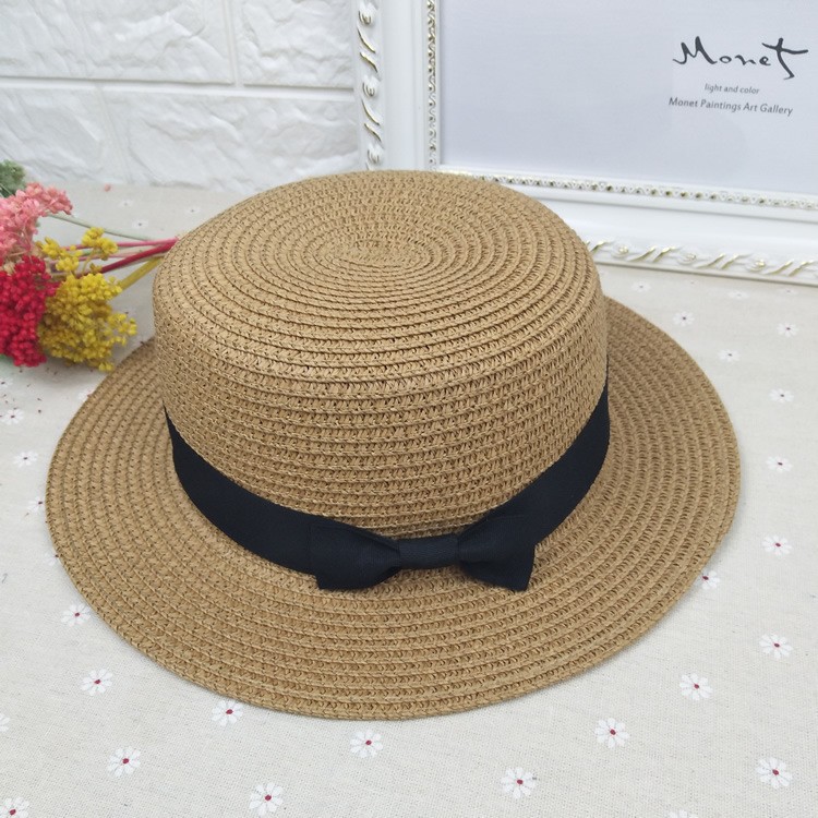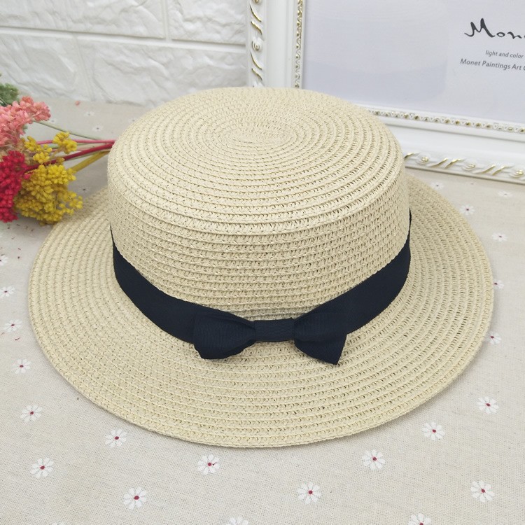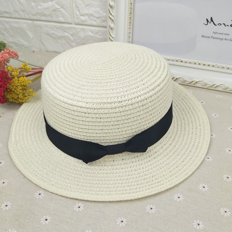 韩版夏季男女士平顶小礼帽草编帽子遮阳防晒帽沙滩度假旅游帽厂家