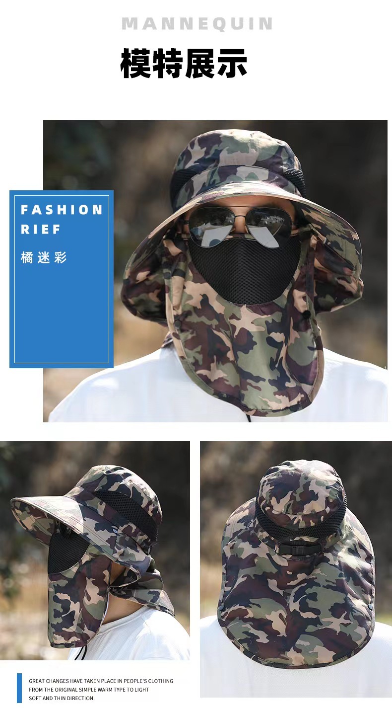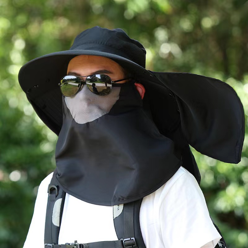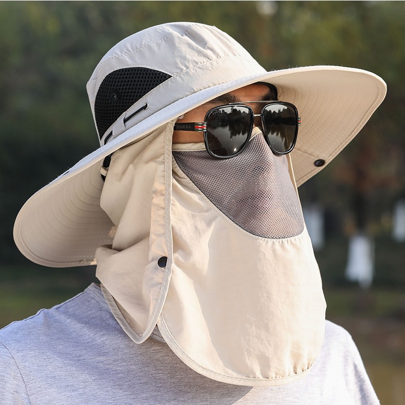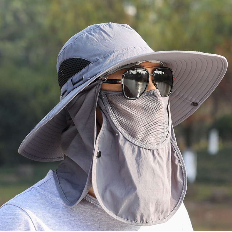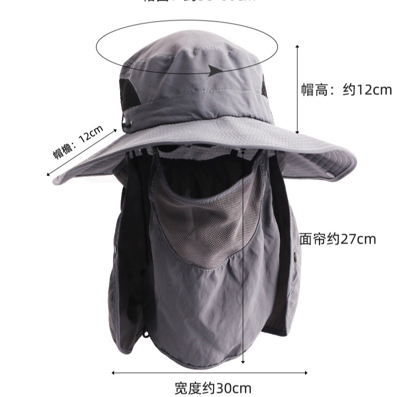 大沿遮阳帽男夏季遮脸防晒渔夫帽透气可拆卸太阳帽户外钓鱼帽子