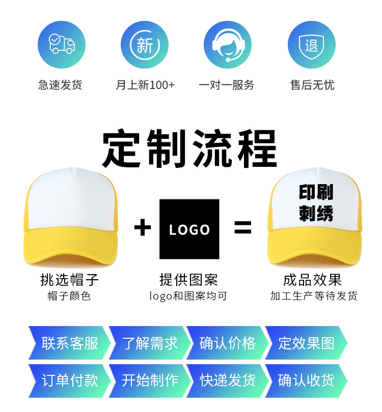海绵网帽定制logo卡车司机帽防晒透气印字广告促销拼色鸭舌帽子