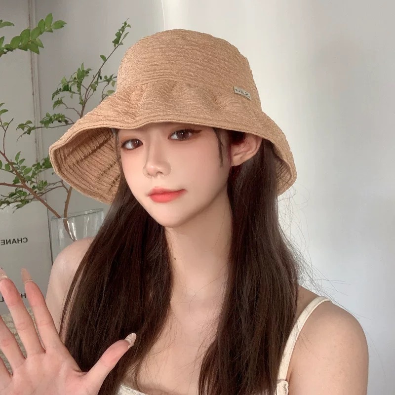 韩系褶皱可随意折叠轻薄渔夫帽春夏新款复古显脸小防晒遮阳盆帽