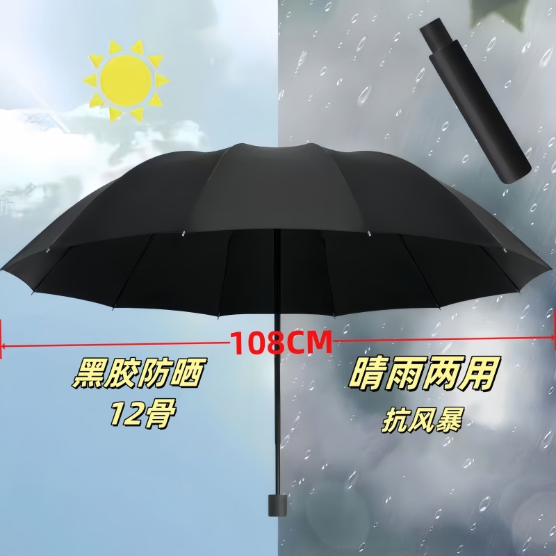 十二骨加大雨伞大号折叠结实伞女晴雨两用伞防晒遮阳伞太阳伞男士