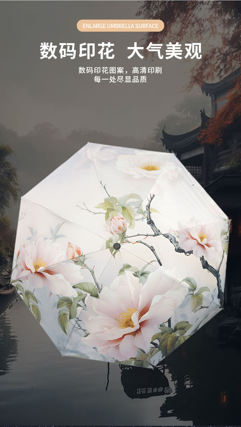 佳苹伞包邮半遮光黑胶古风高颜值数码印花晴雨伞防紫外线遮阳伞