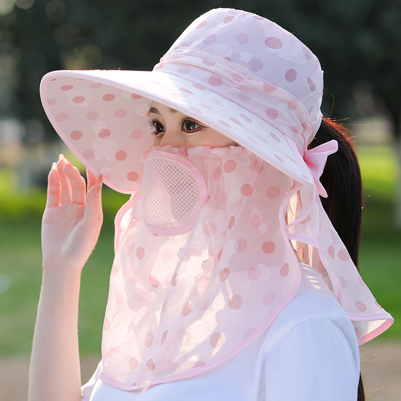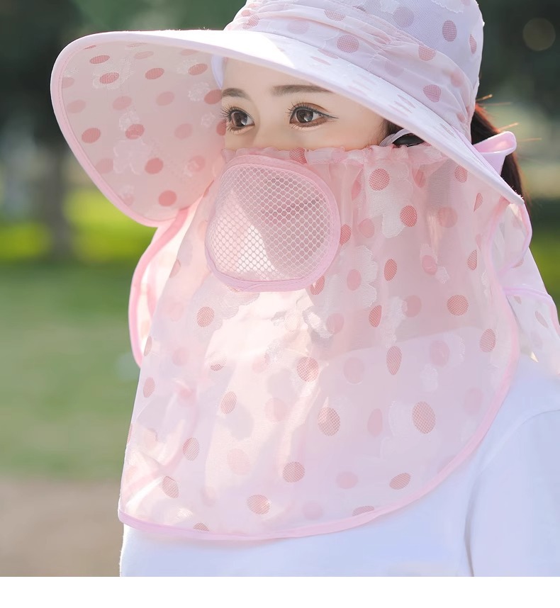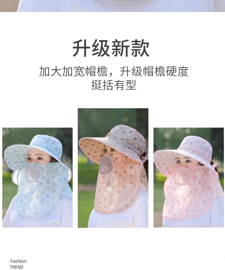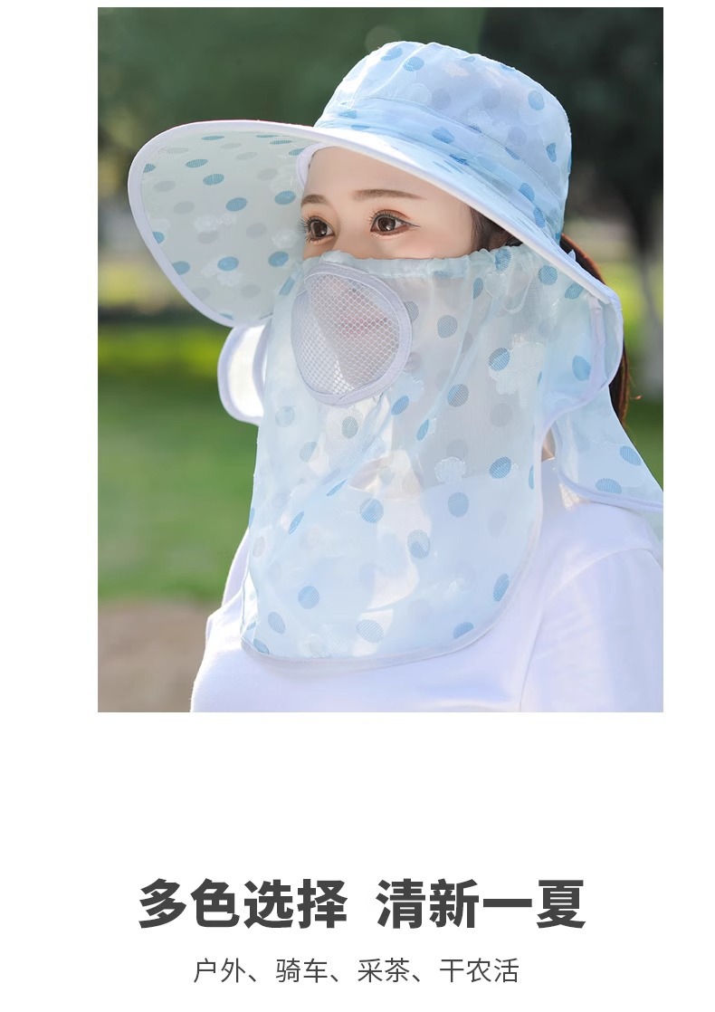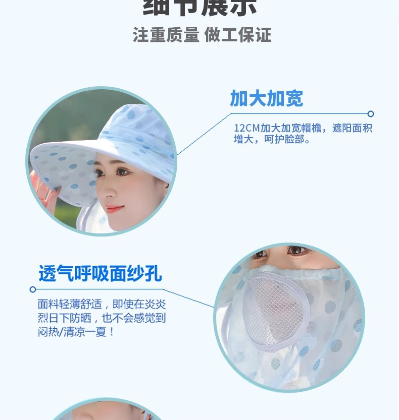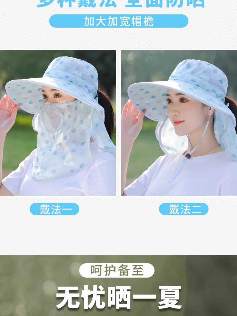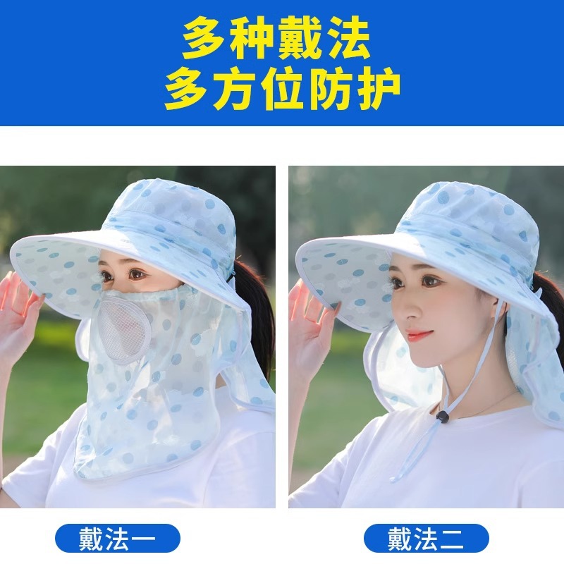 夏季新款女士遮阳帽大檐可拆面罩防晒帽户外采茶骑行遮脸太阳帽
