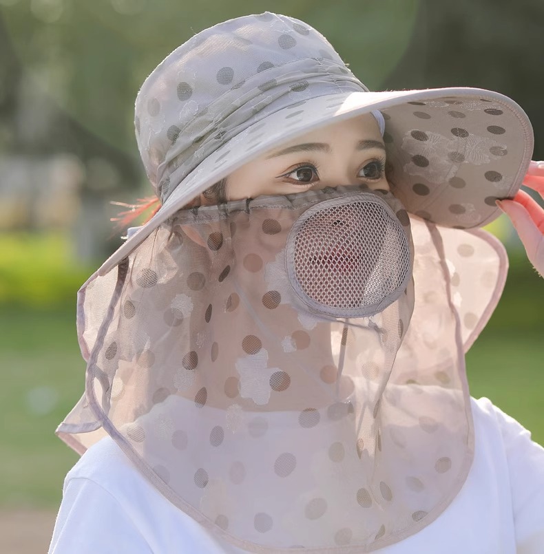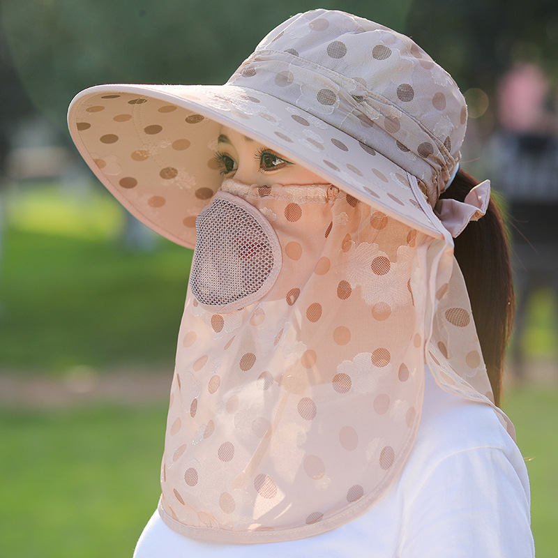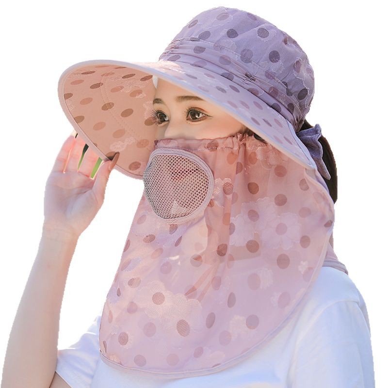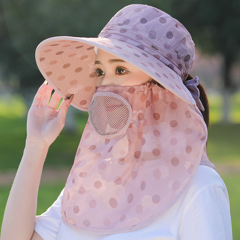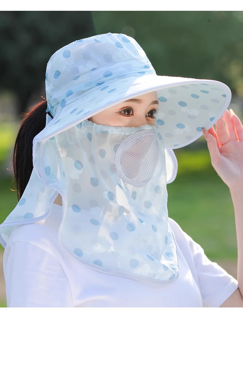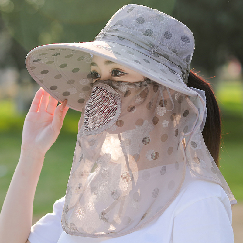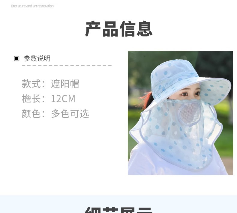 夏季新款女士遮阳帽大檐可拆面罩防晒帽户外采茶骑行遮脸太阳帽