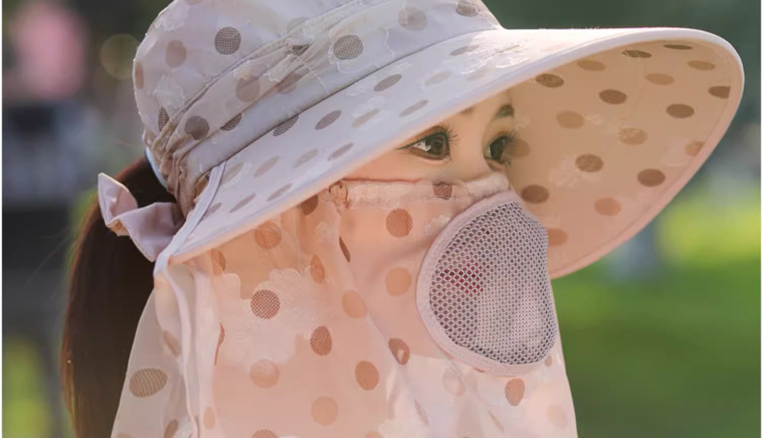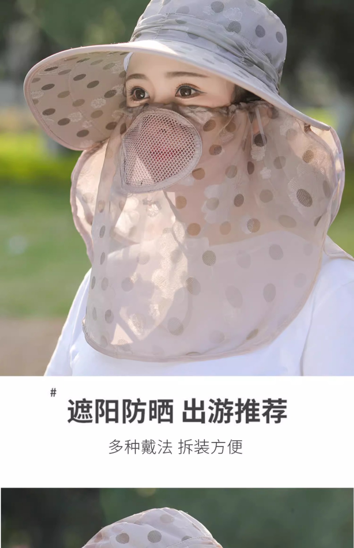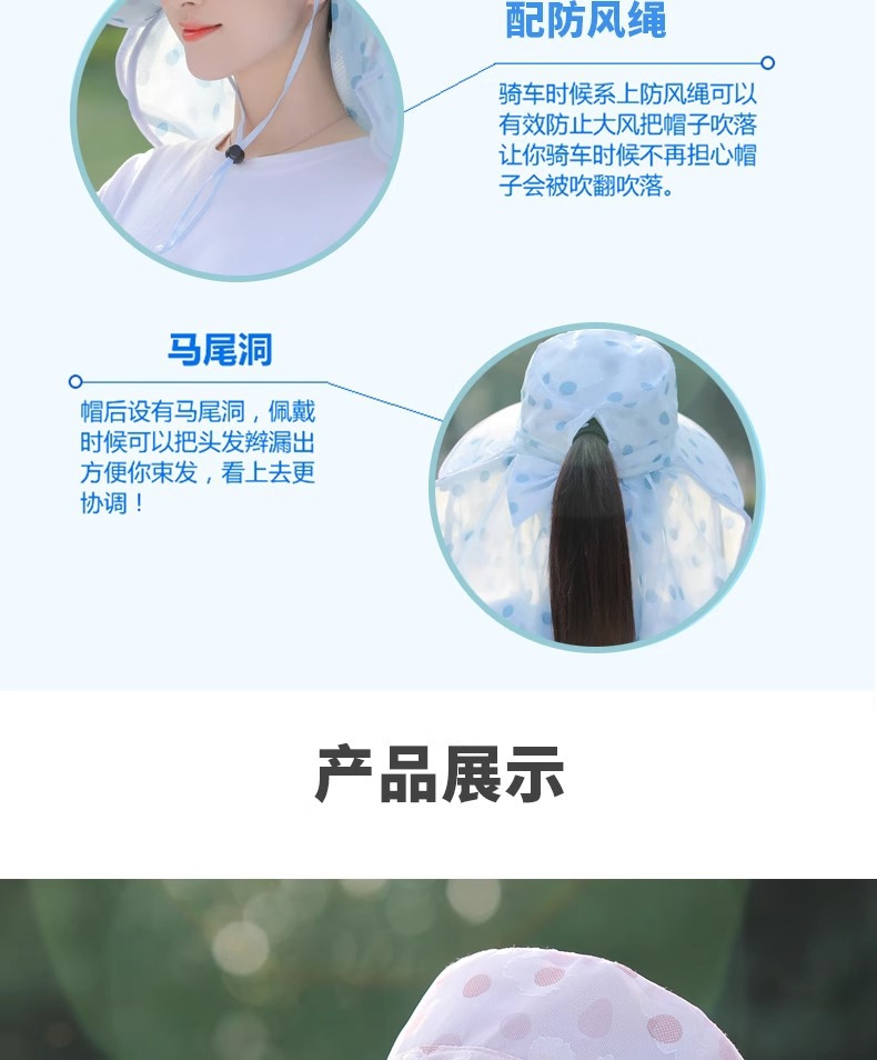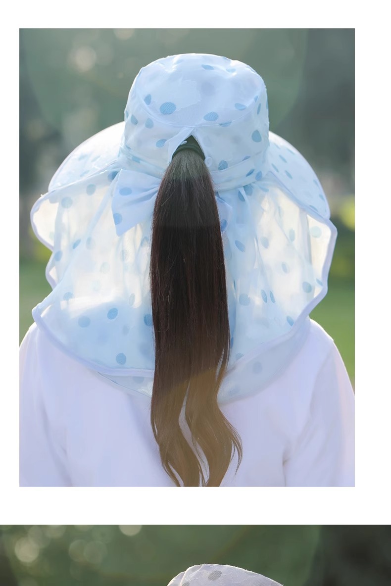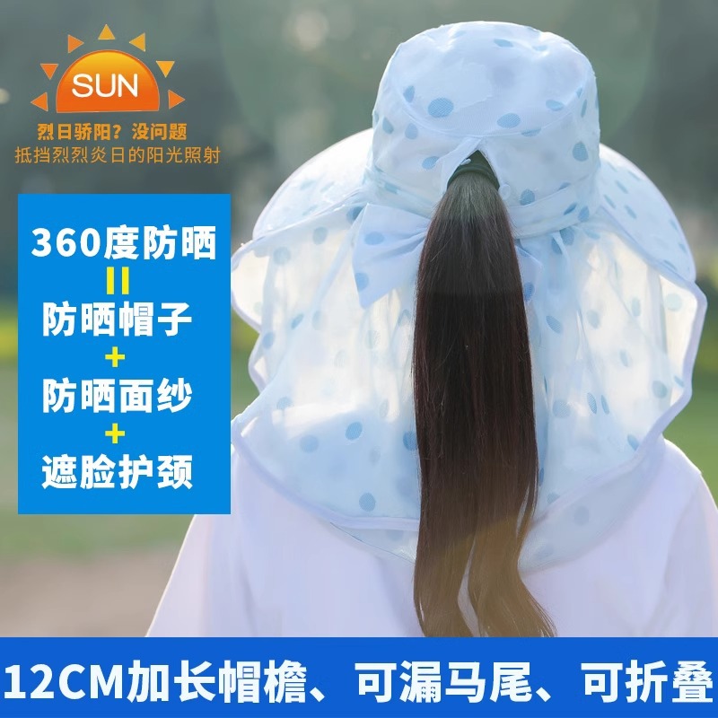 夏季新款女士遮阳帽大檐可拆面罩防晒帽户外采茶骑行遮脸太阳帽