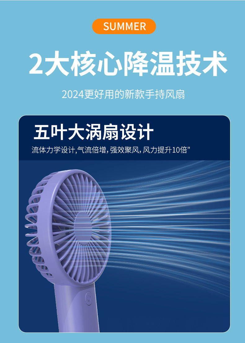 便携小风扇手持充电式夏季活动礼品宣传送客户打印LOGO户外便携