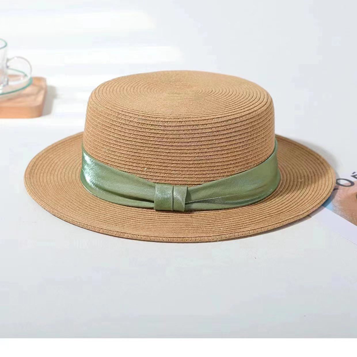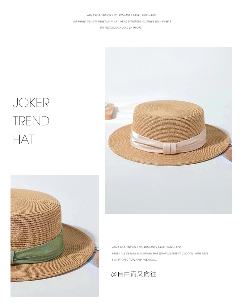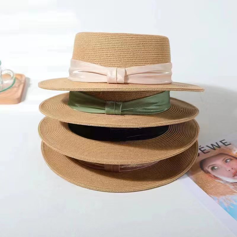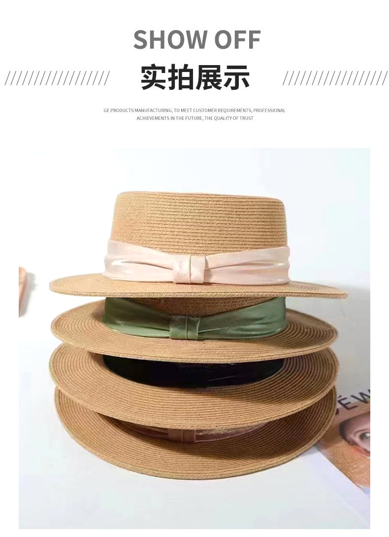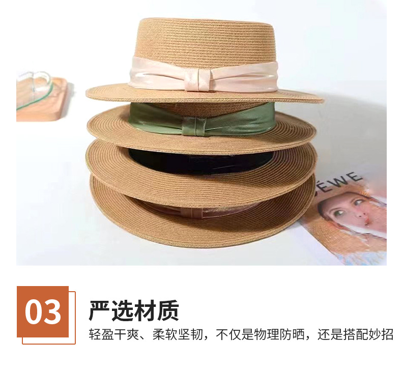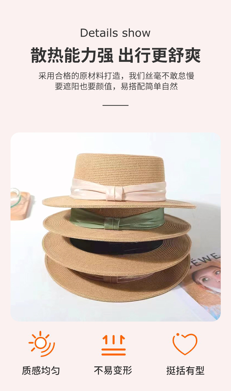 INS 春夏女士网红英伦小礼帽草编海边度假简约遮阳时尚草帽平顶帽