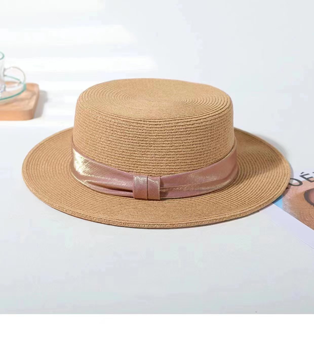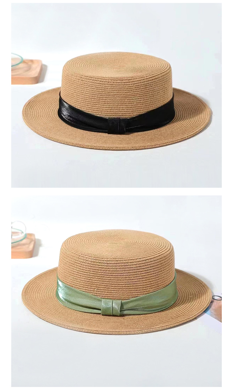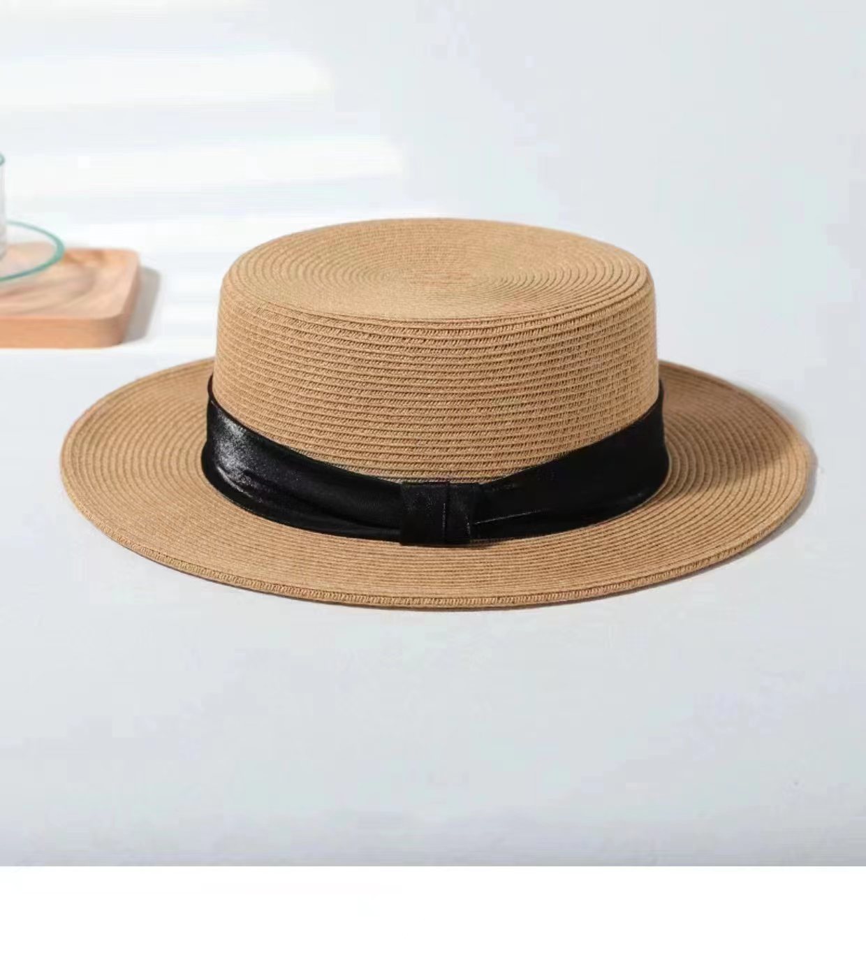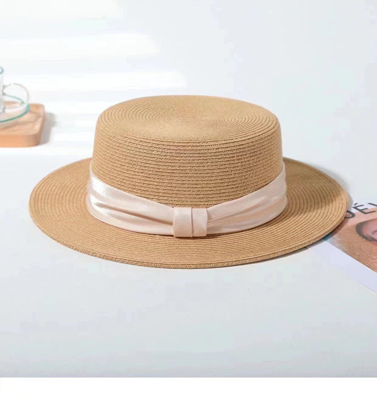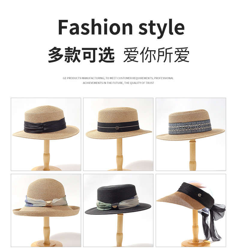 INS 春夏女士网红英伦小礼帽草编海边度假简约遮阳时尚草帽平顶帽