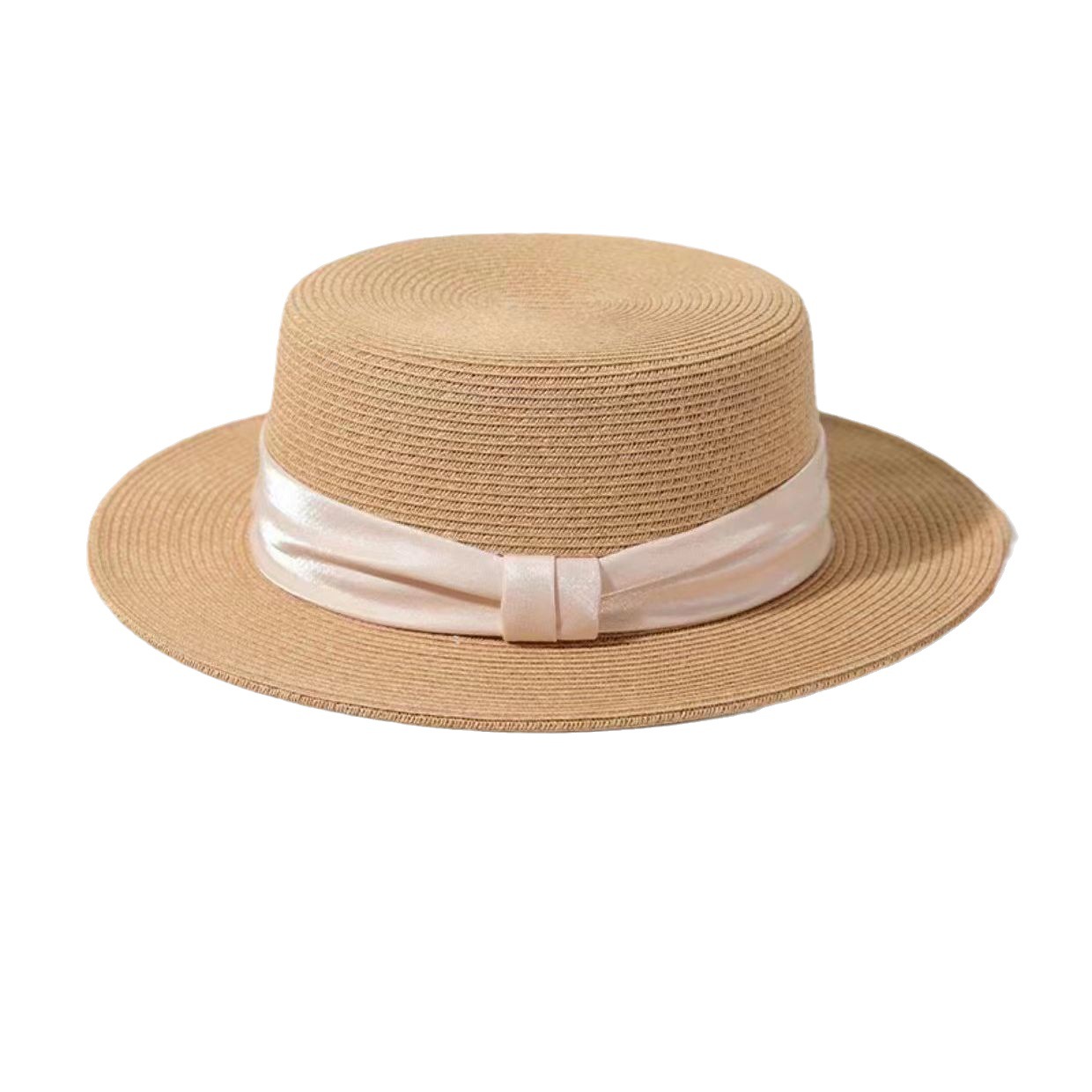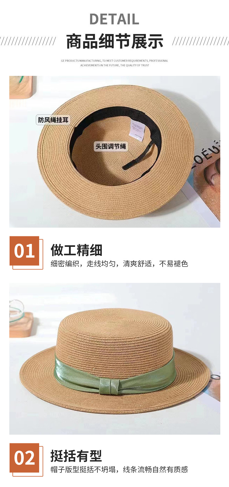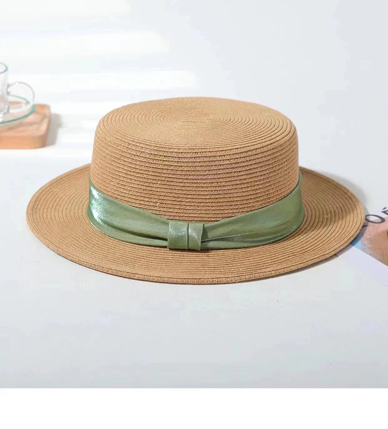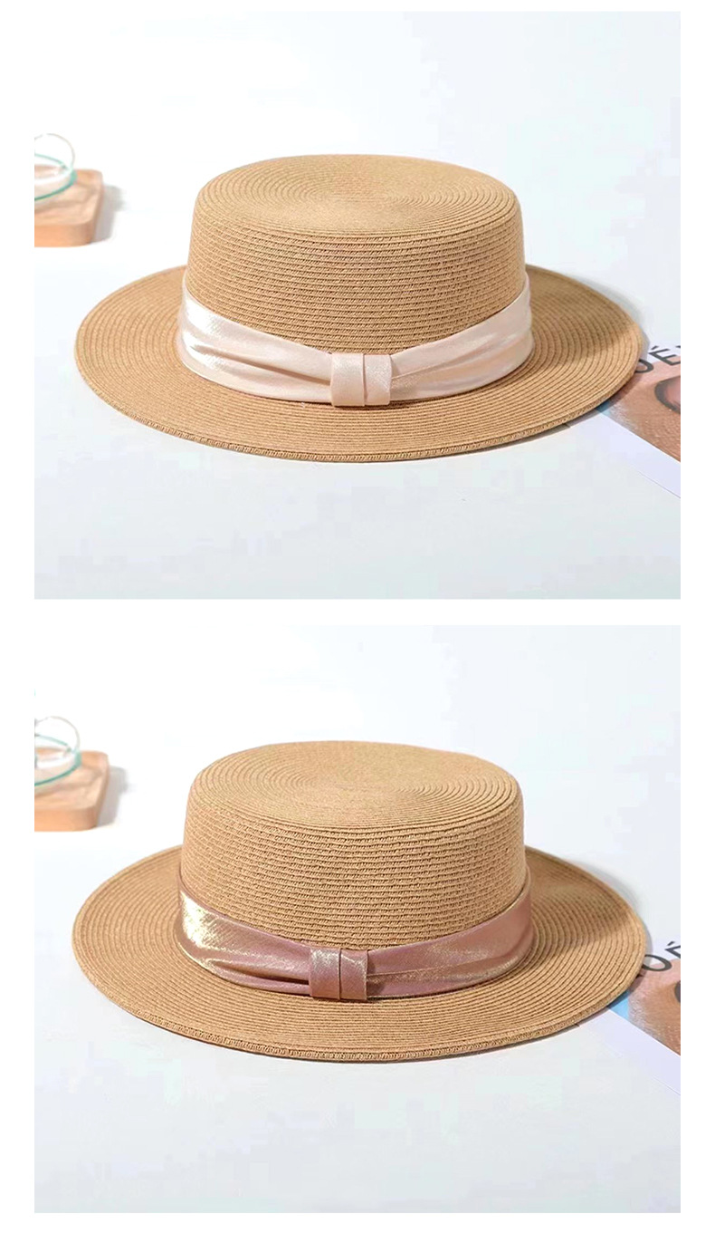 INS 春夏女士网红英伦小礼帽草编海边度假简约遮阳时尚草帽平顶帽