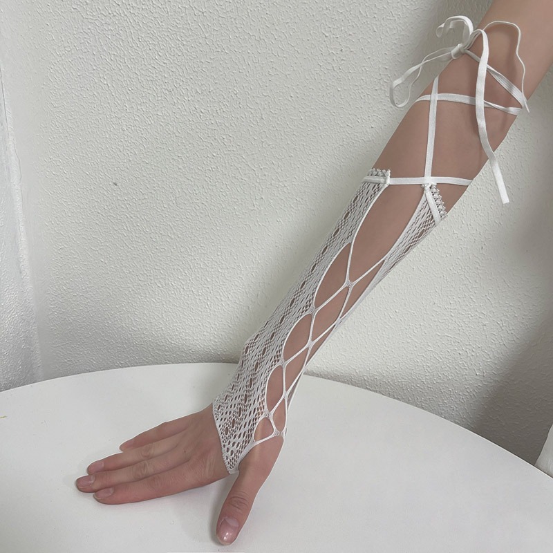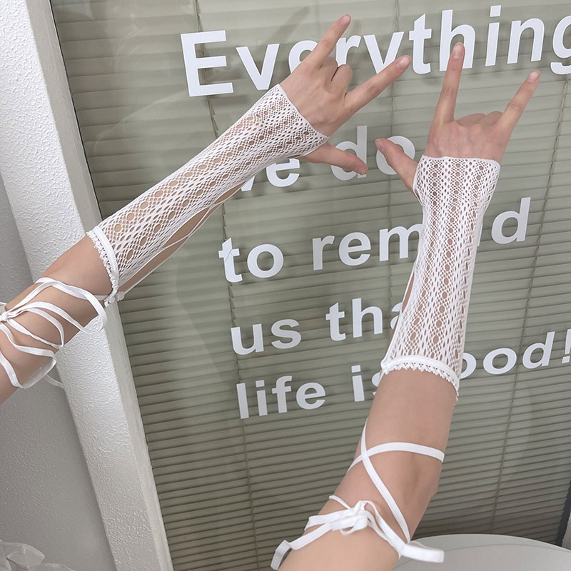 Y2k新款绑带手套Cosplay长筒绑带袖套夏季防晒洛丽塔装扮绑带袖套