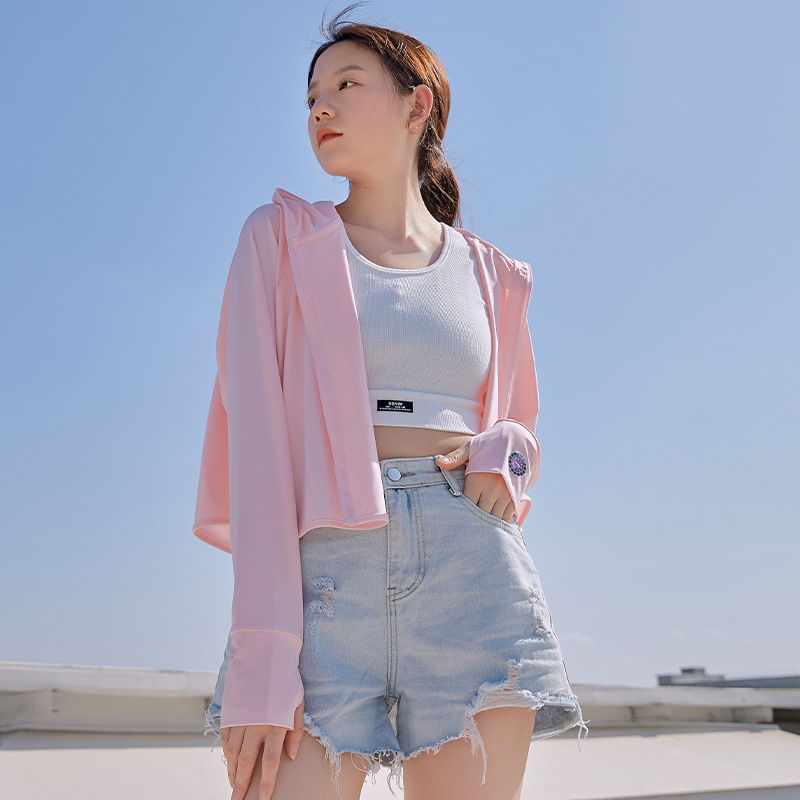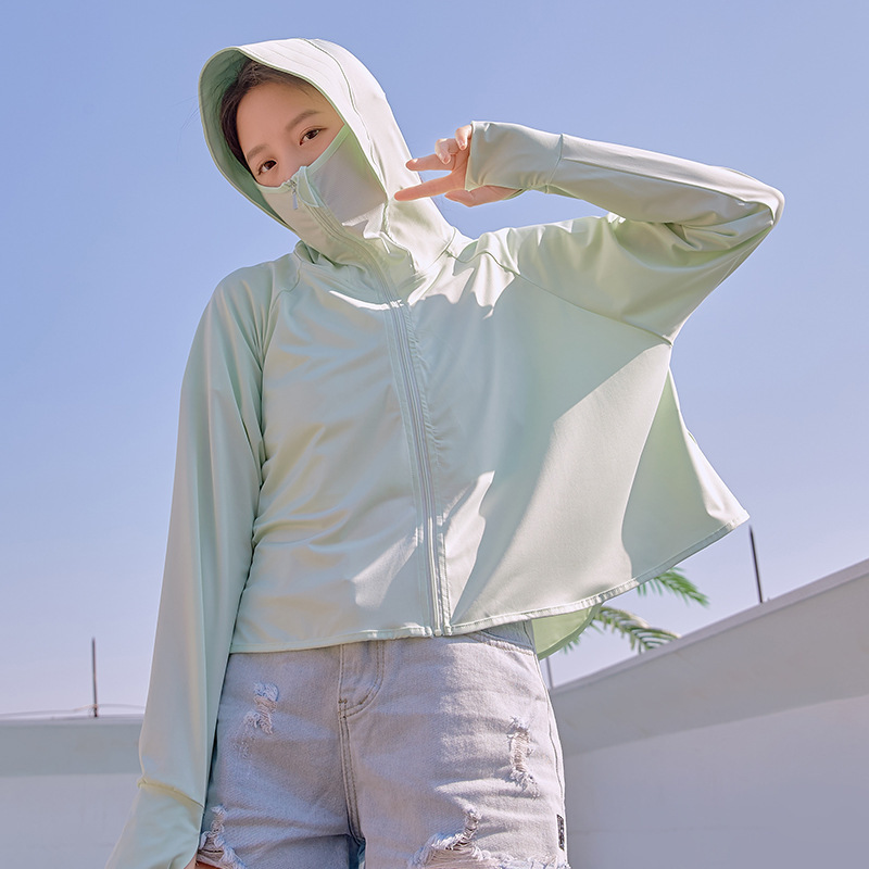 2026新款防晒服女短款夏季防紫外线冰丝薄款透气连帽披肩防晒衣