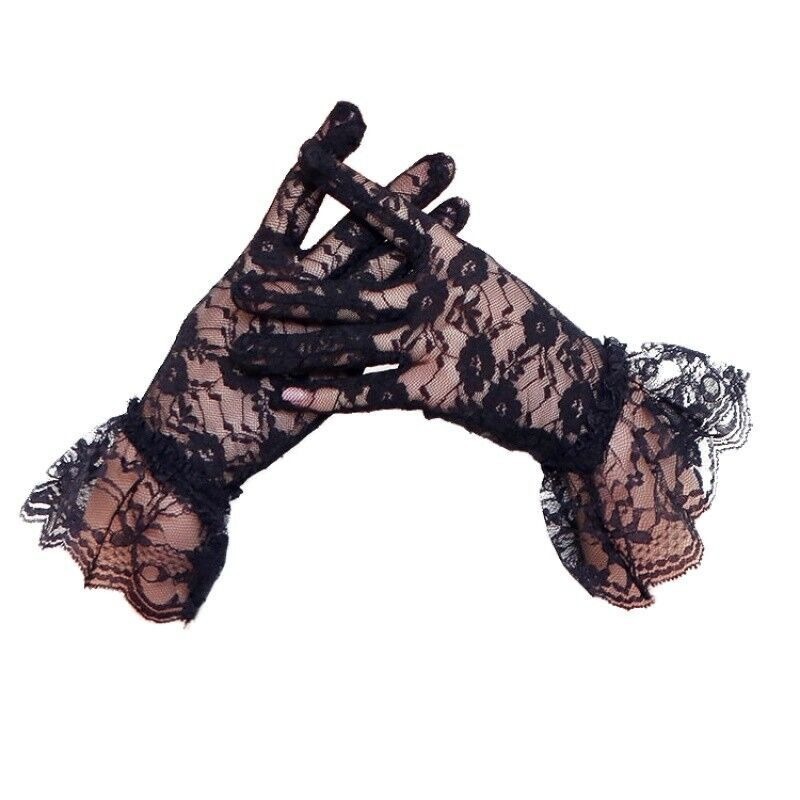 夏季黑色蕾丝短款开车防晒手套新娘婚礼优雅女士蕾丝花边手套