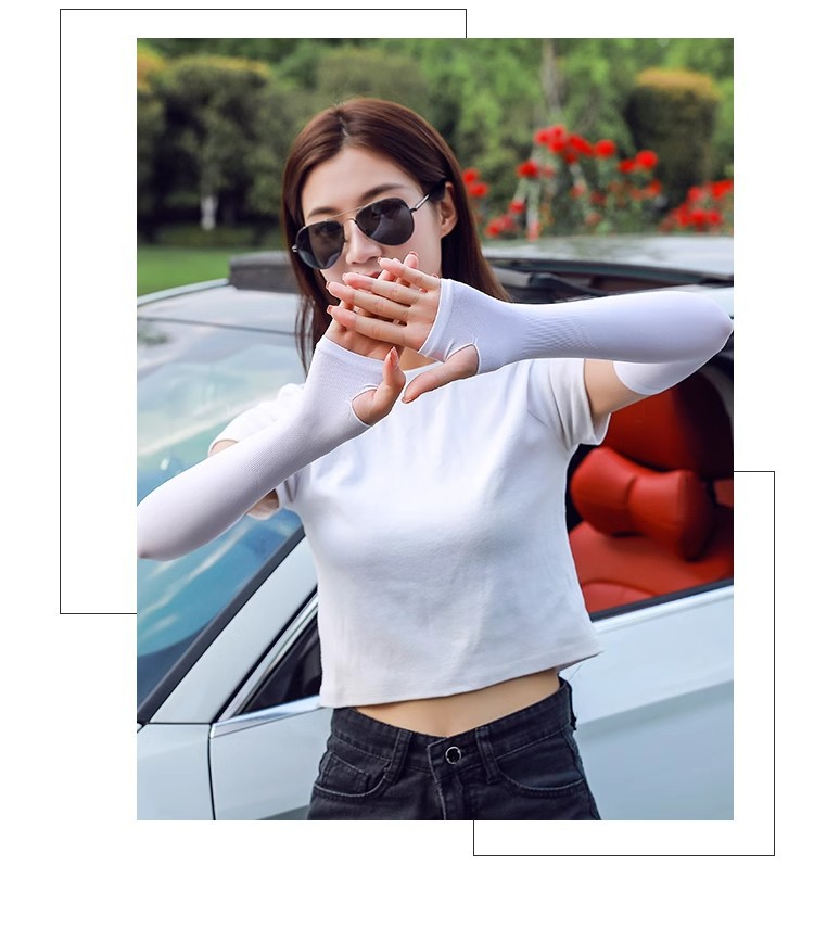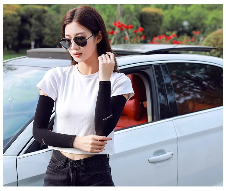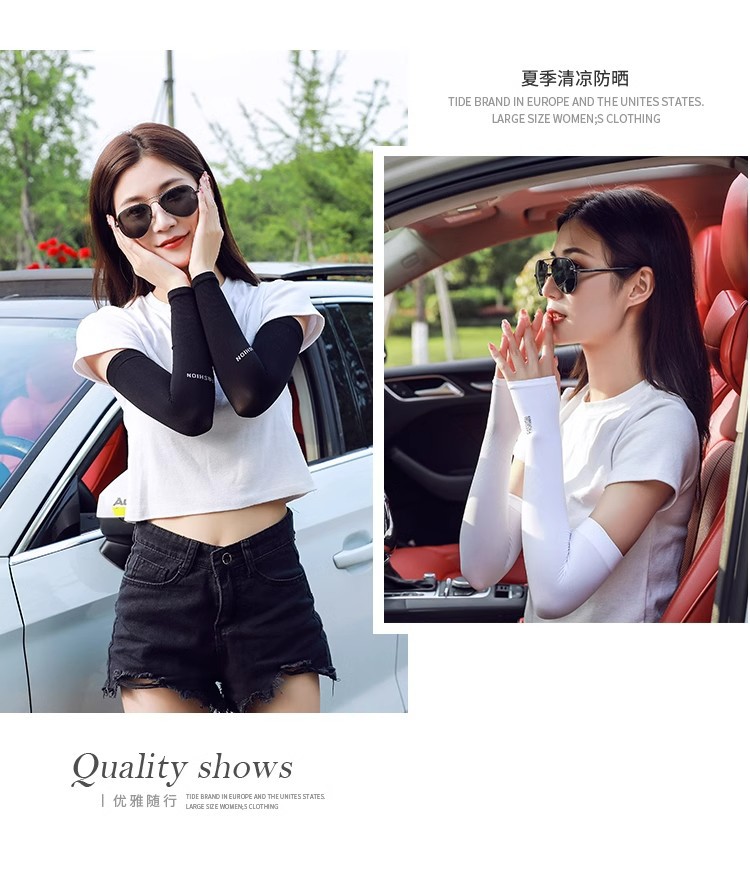 冰袖夏季女宽松透气纯色手袖套开车护臂防紫外线防晒冰丝袖套耐脏