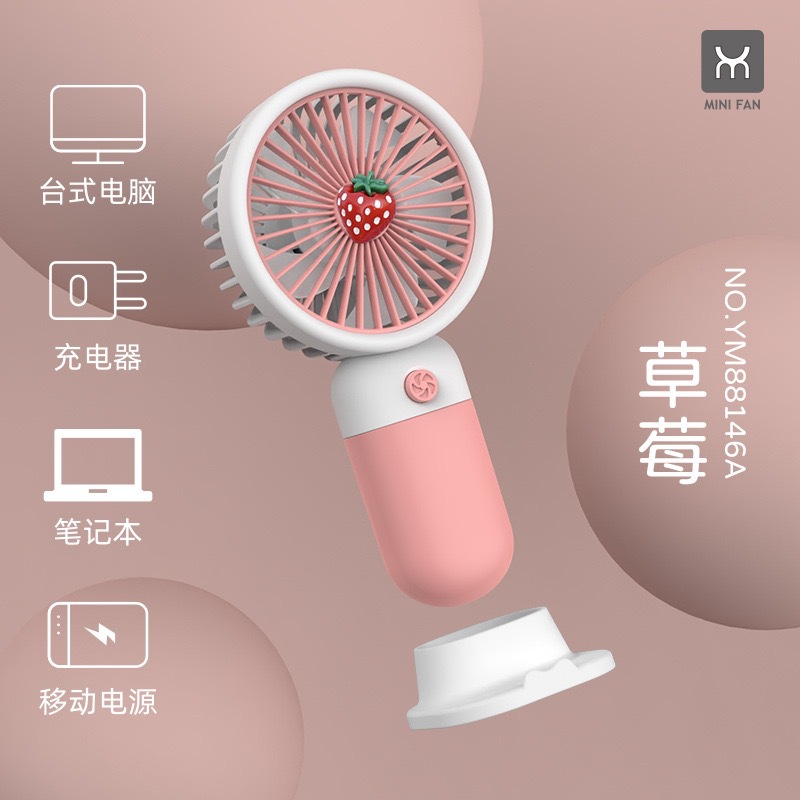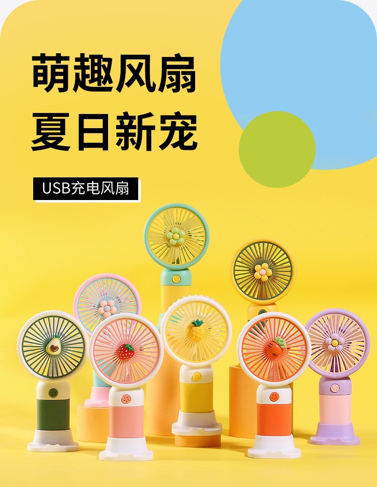 卡通可爱水果小花朵夏天手持小风扇便携桌面手机支架充电款长续航