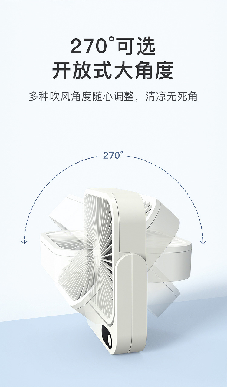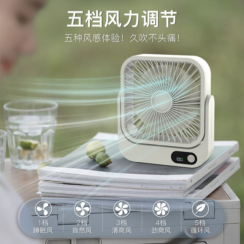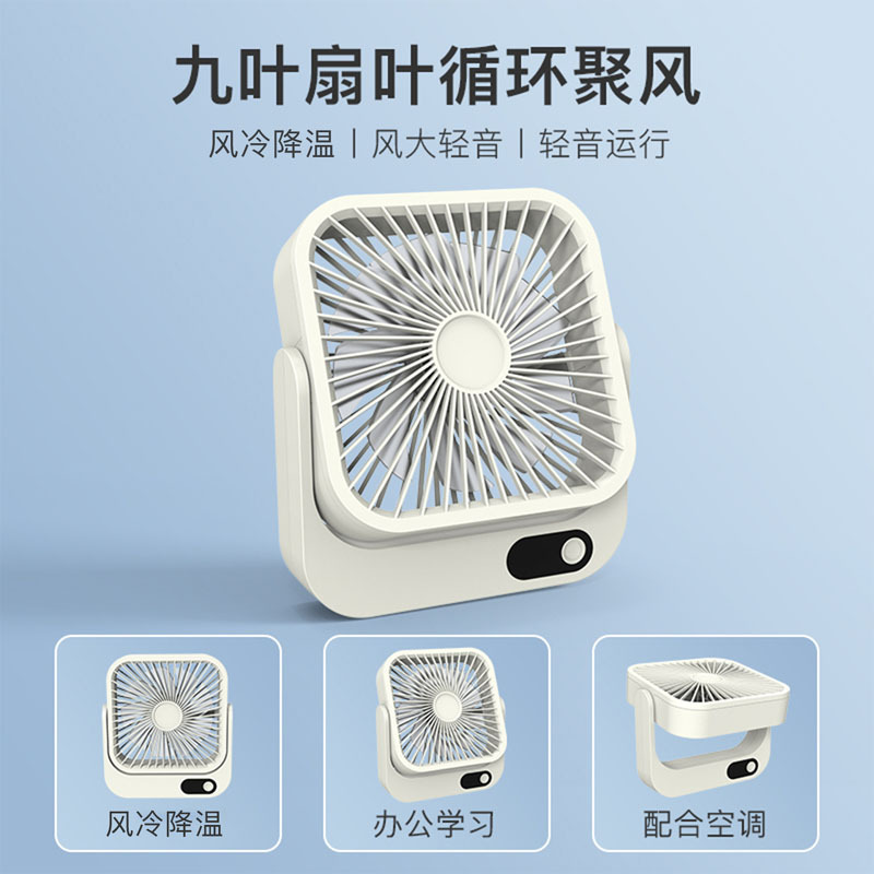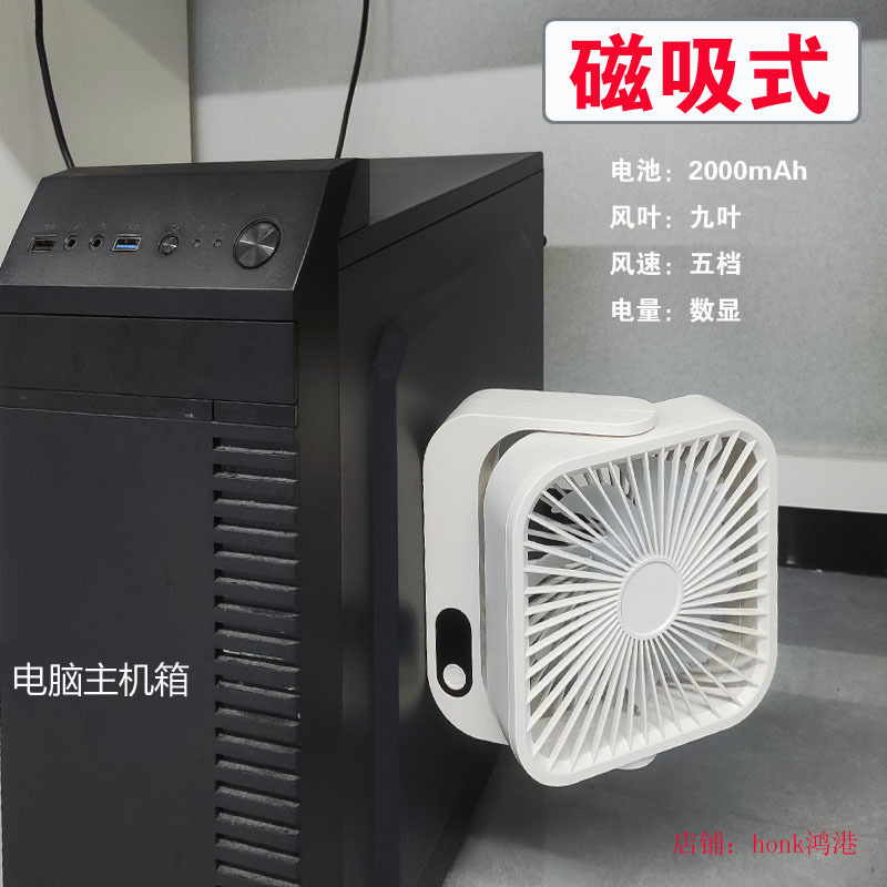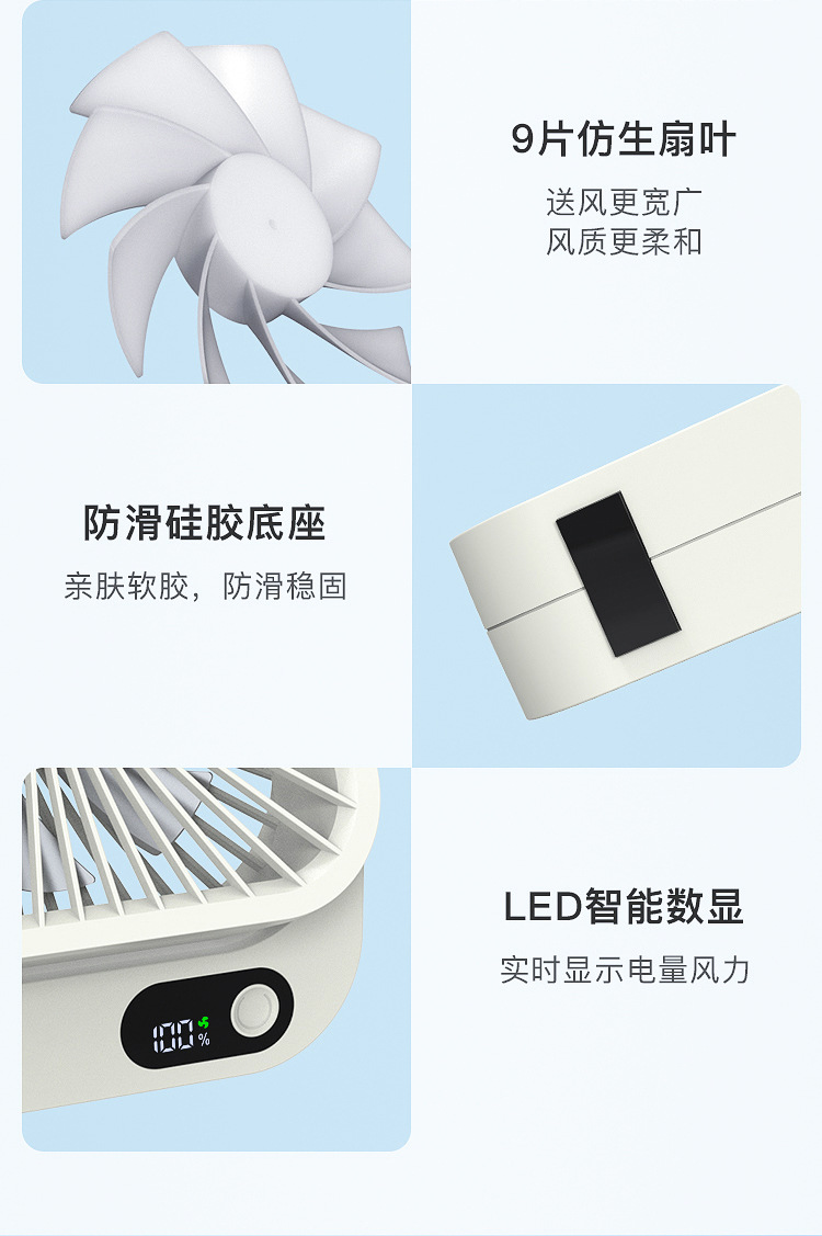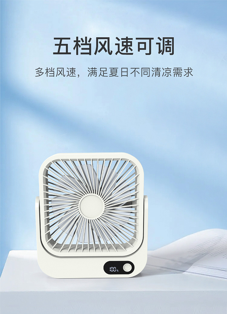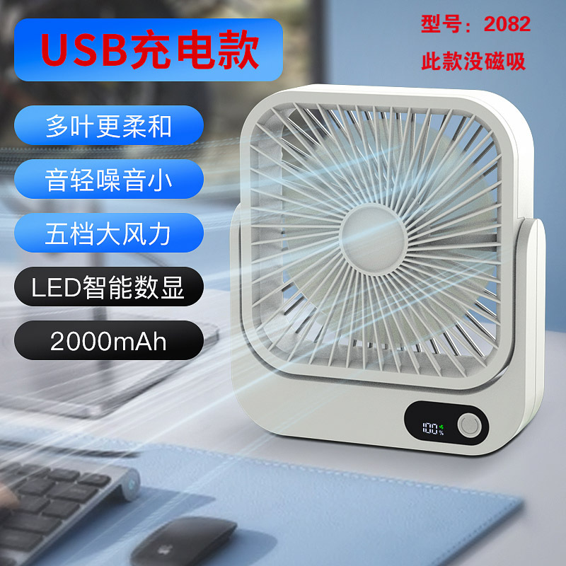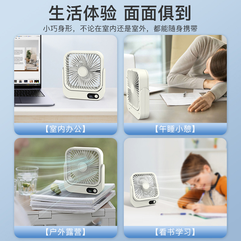 2024新款充电小风扇USB办公桌面广角多叶磁吸数显缩舍便携带台扇