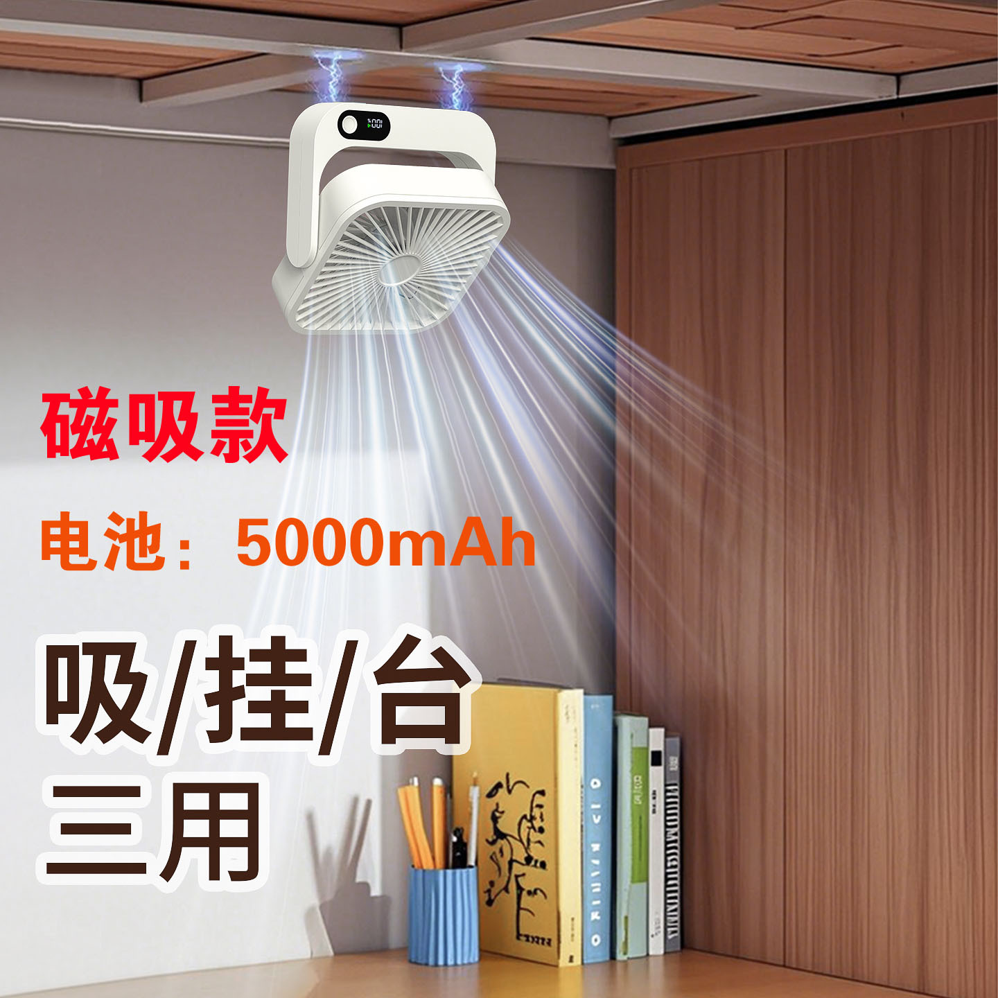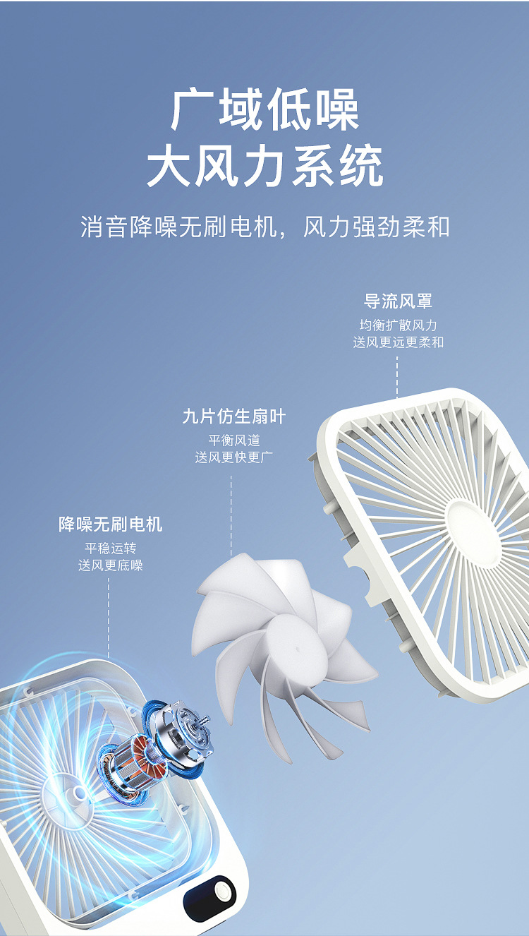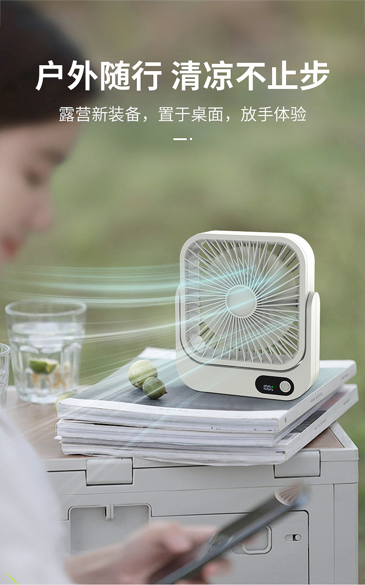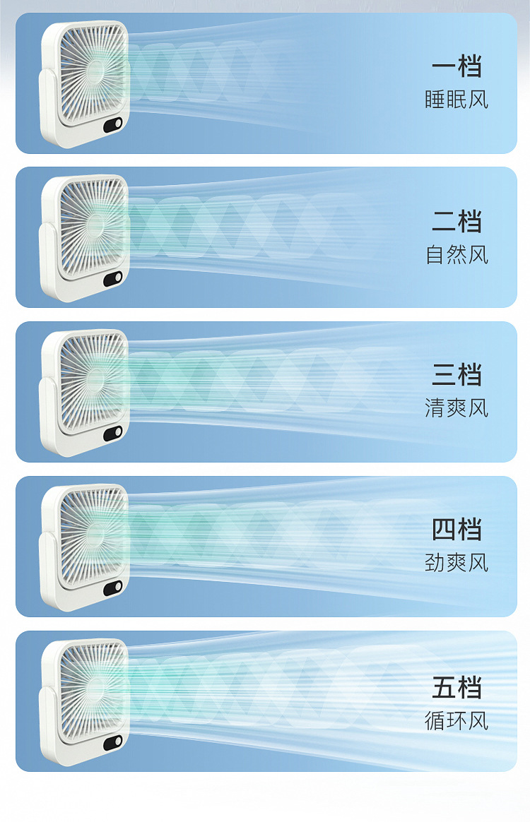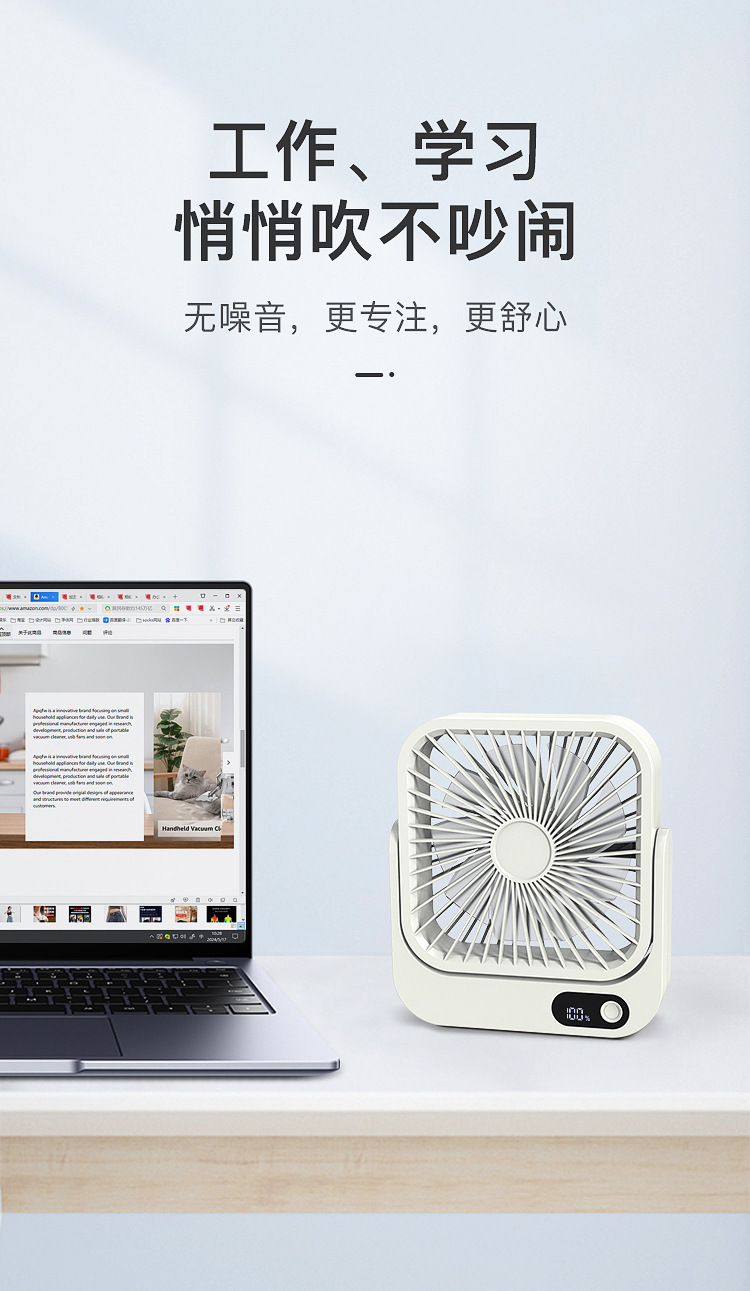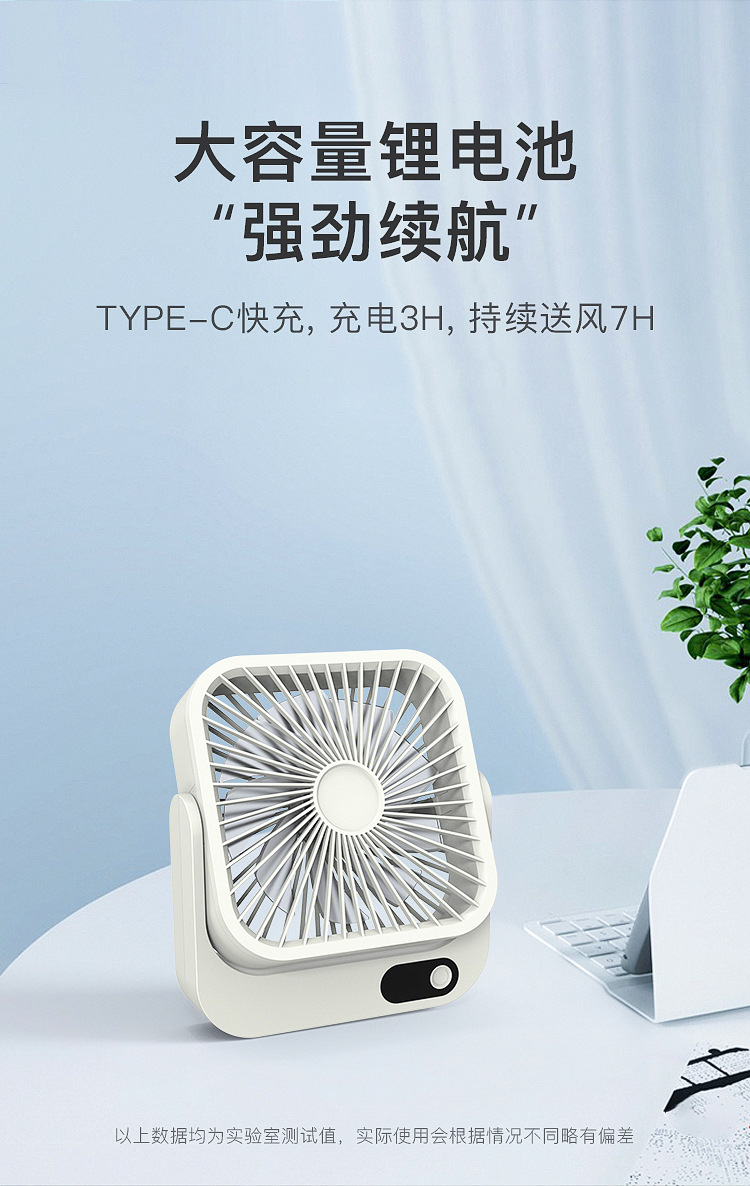 2024新款充电小风扇USB办公桌面广角多叶磁吸数显缩舍便携带台扇