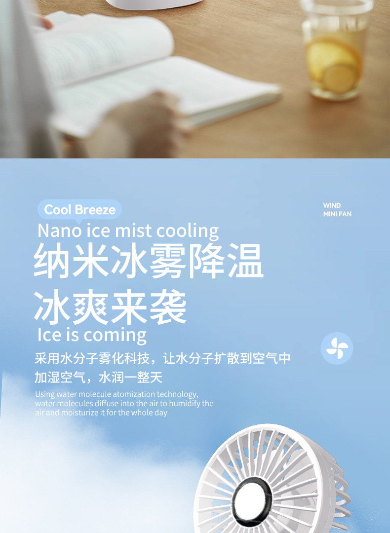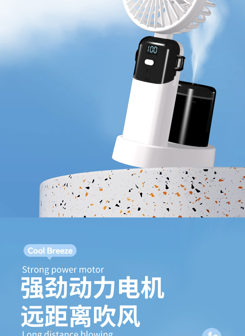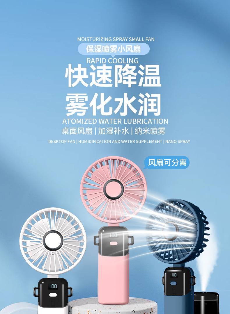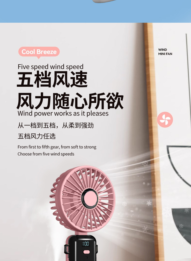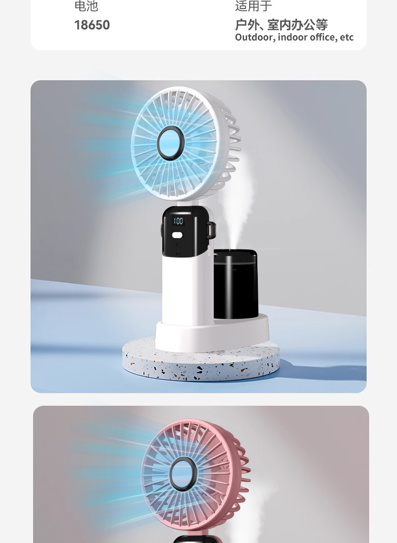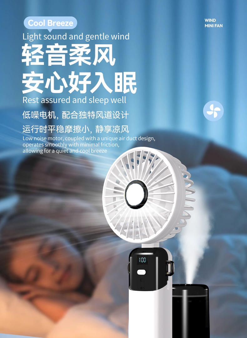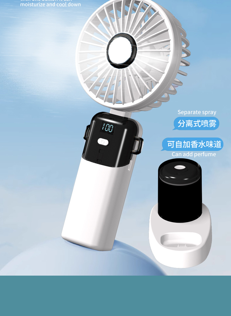 N15T手持小风扇制冷冰敷折叠数显静音大风车载香薰加湿涡轮喷雾