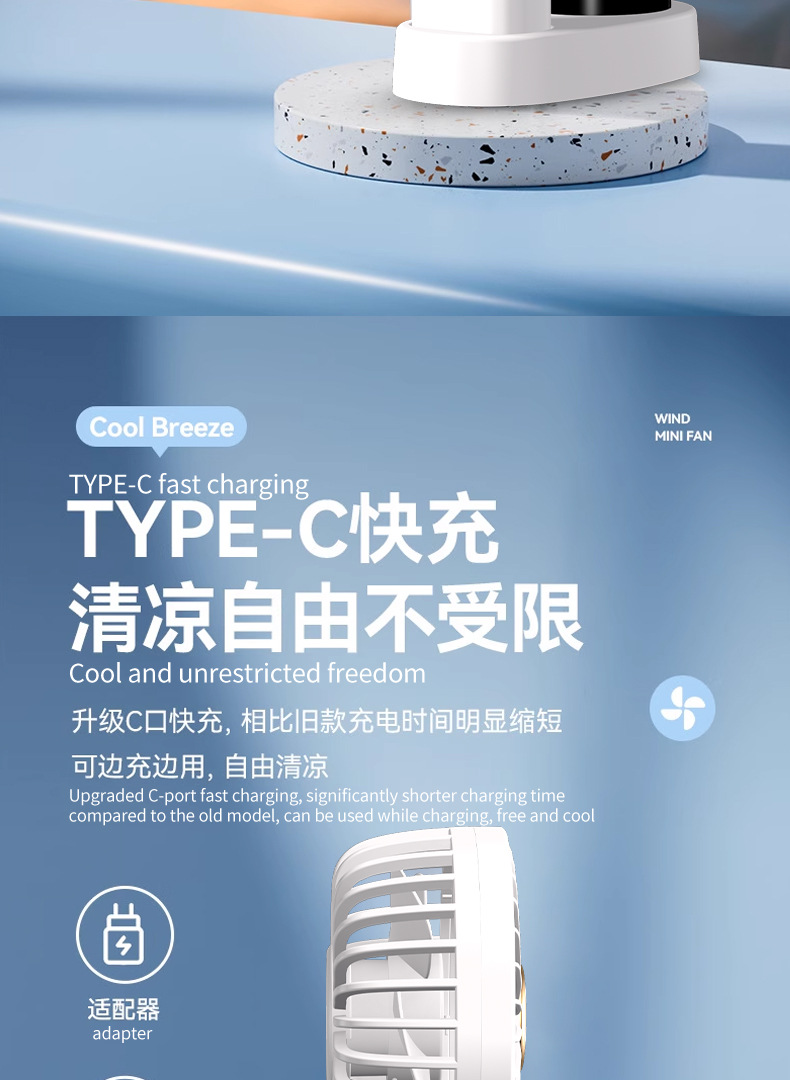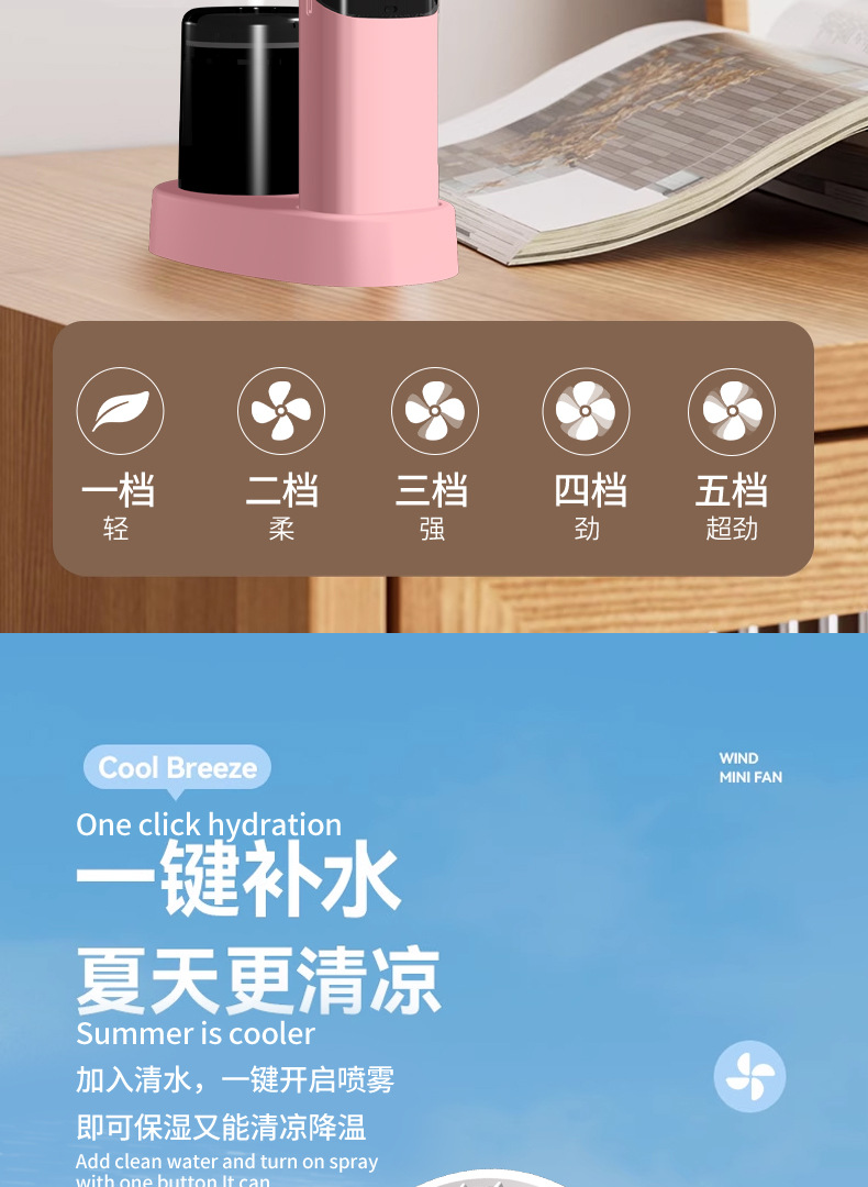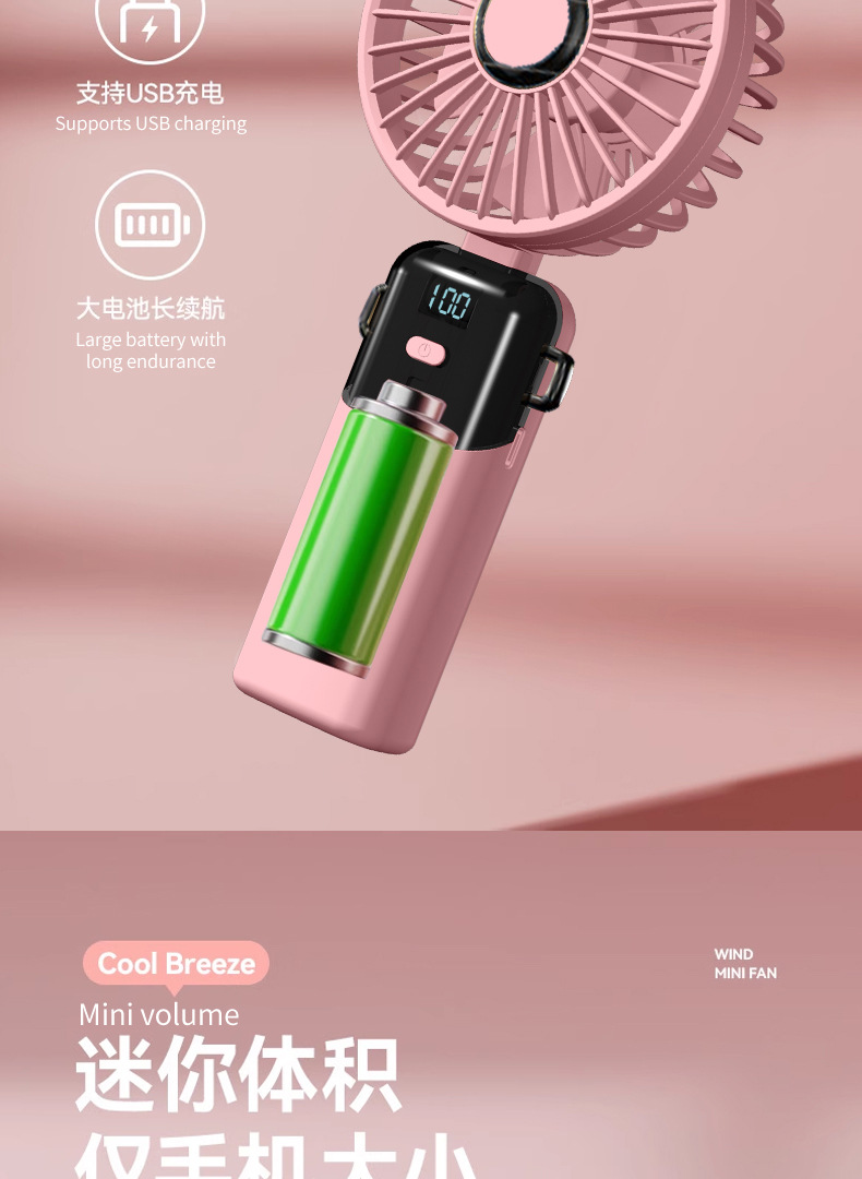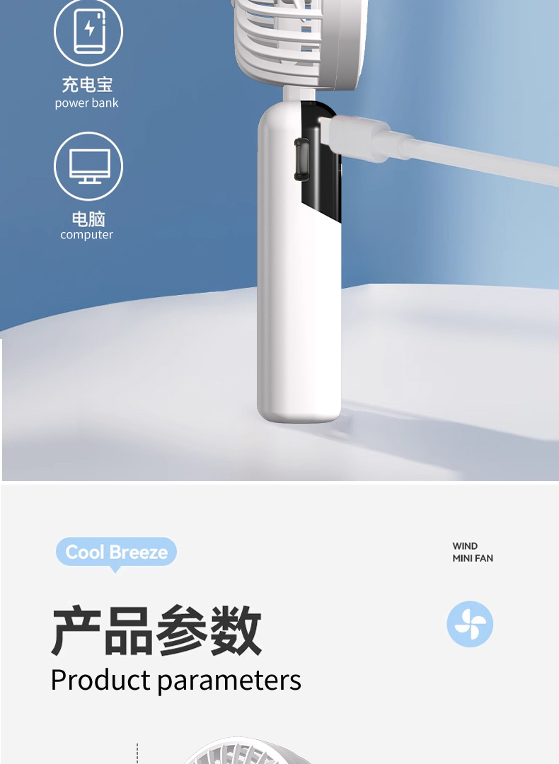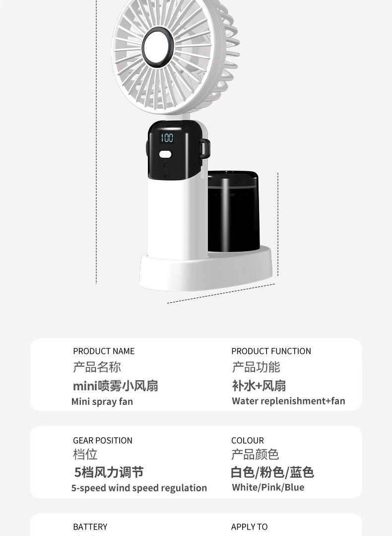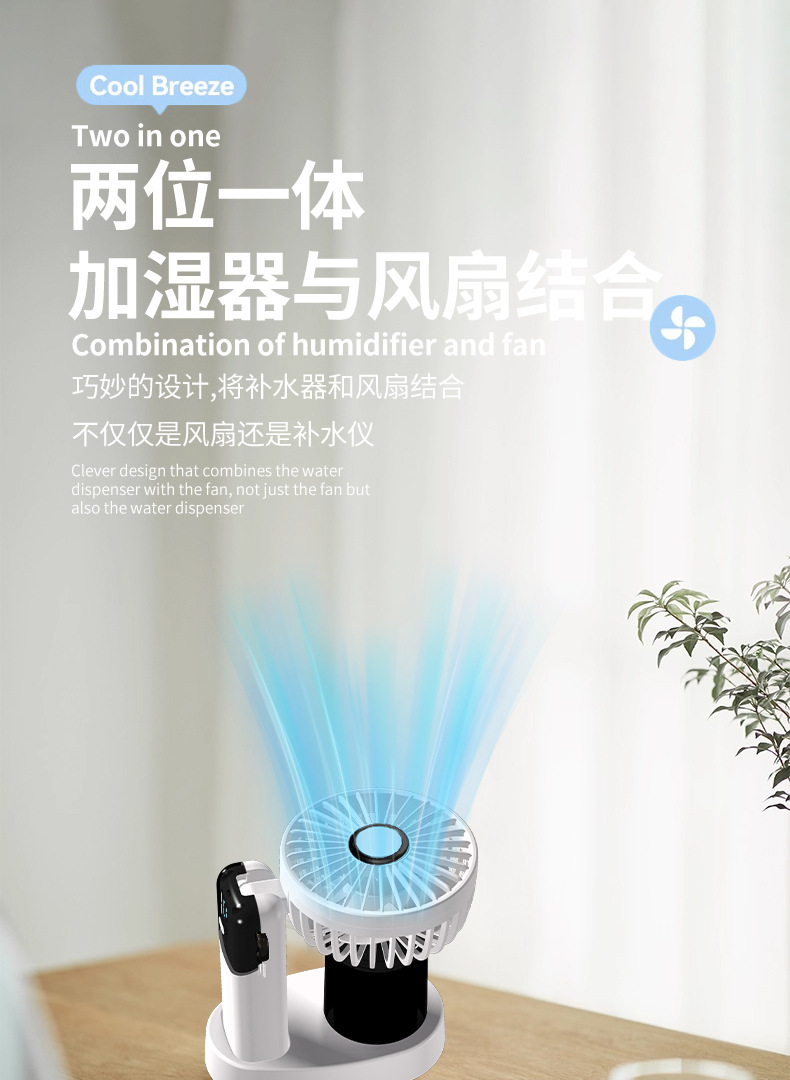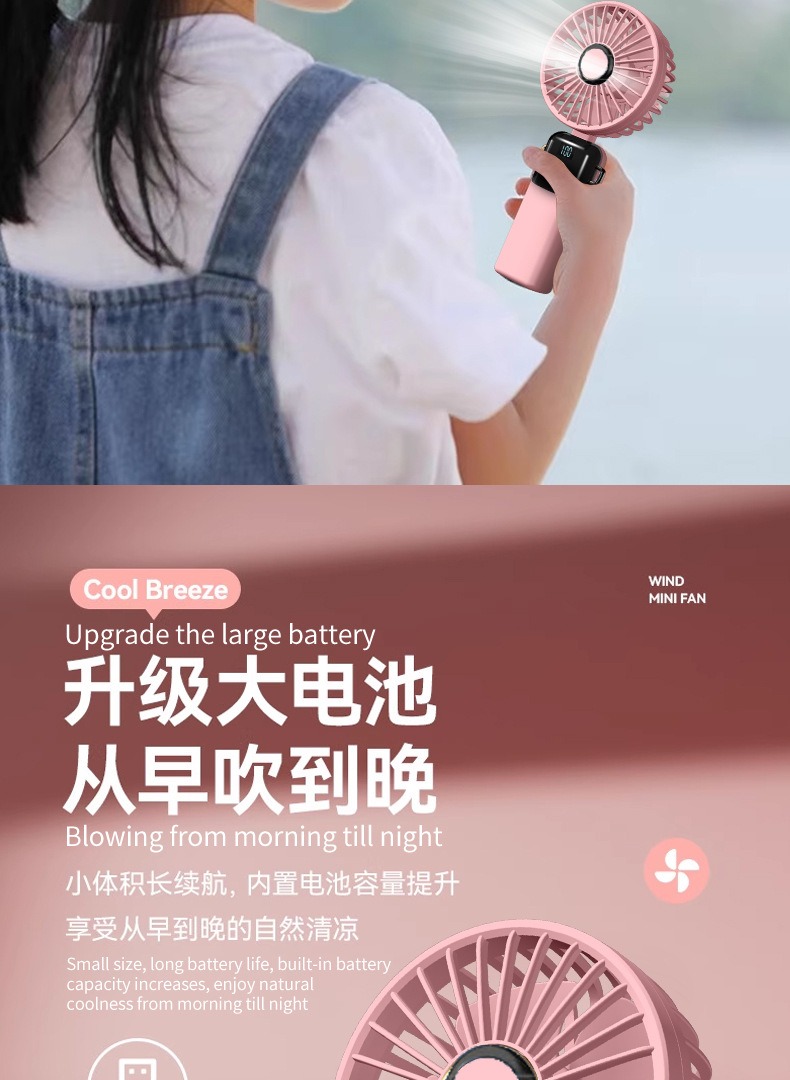 N15T手持小风扇制冷冰敷折叠数显静音大风车载香薰加湿涡轮喷雾