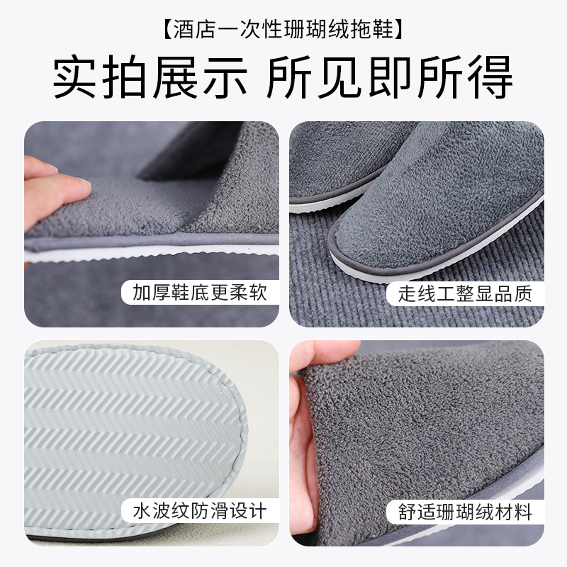 一次性拖鞋五星级酒店专用加厚防滑珊瑚绒拖鞋居家待客厂家批发