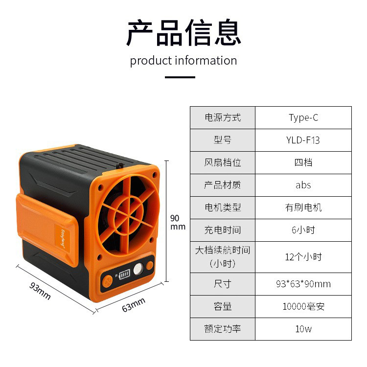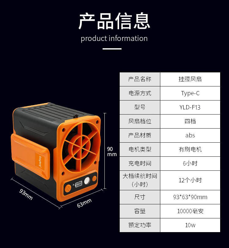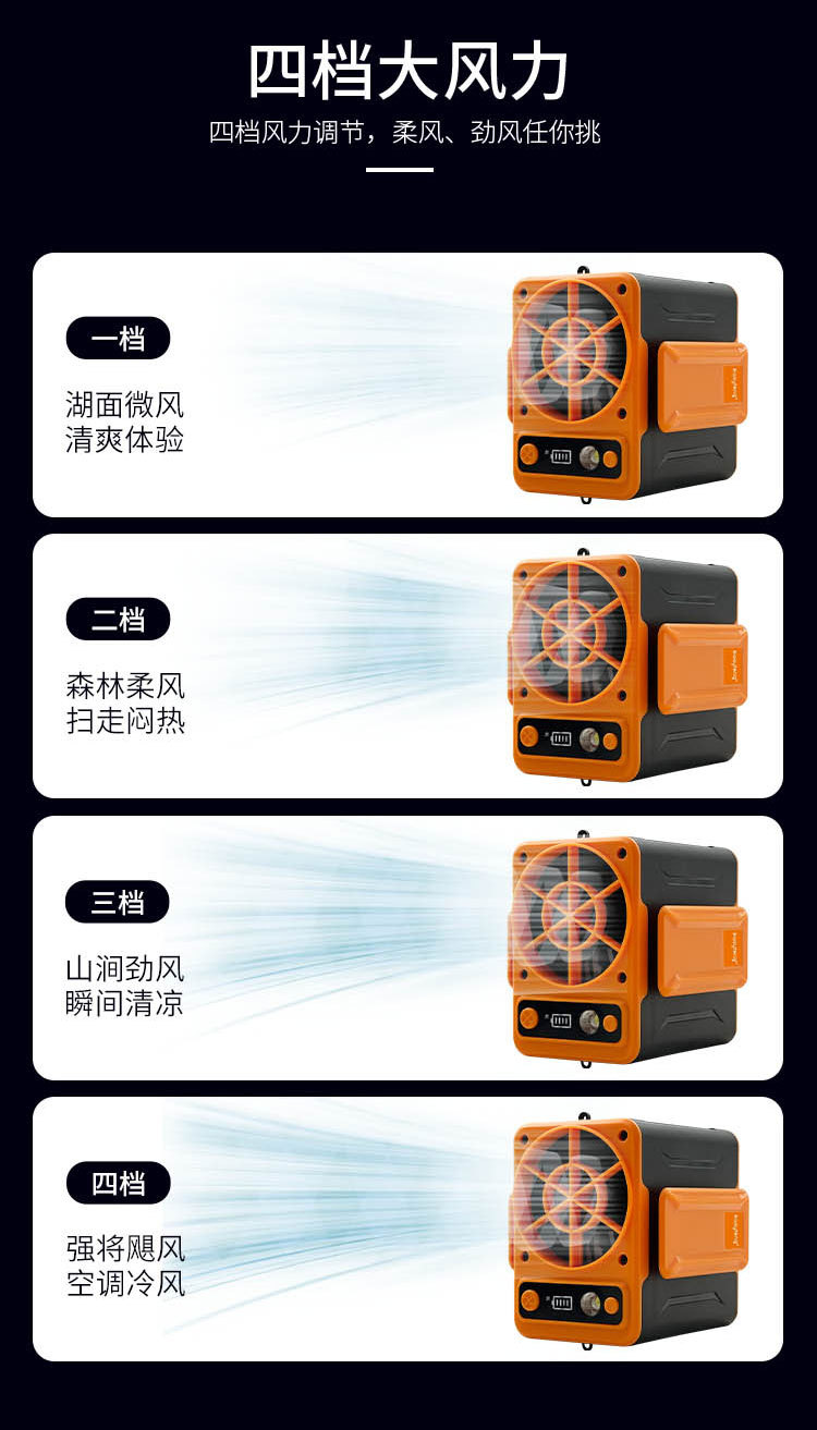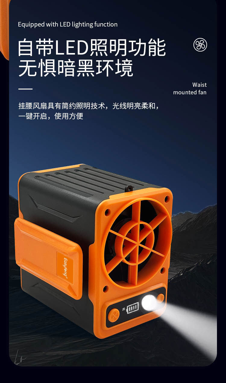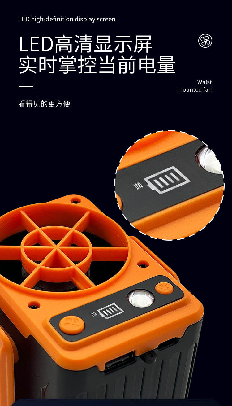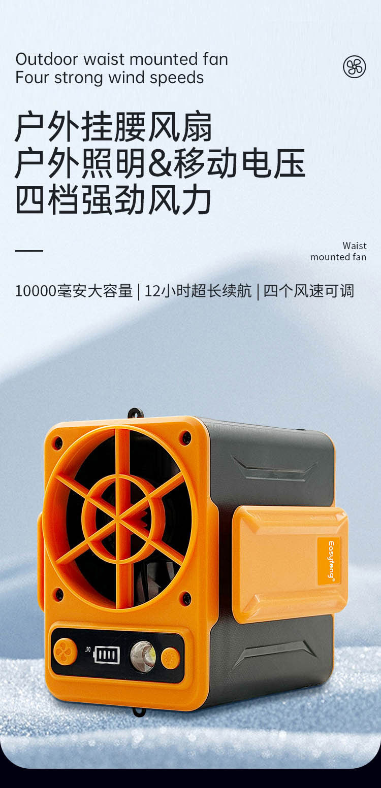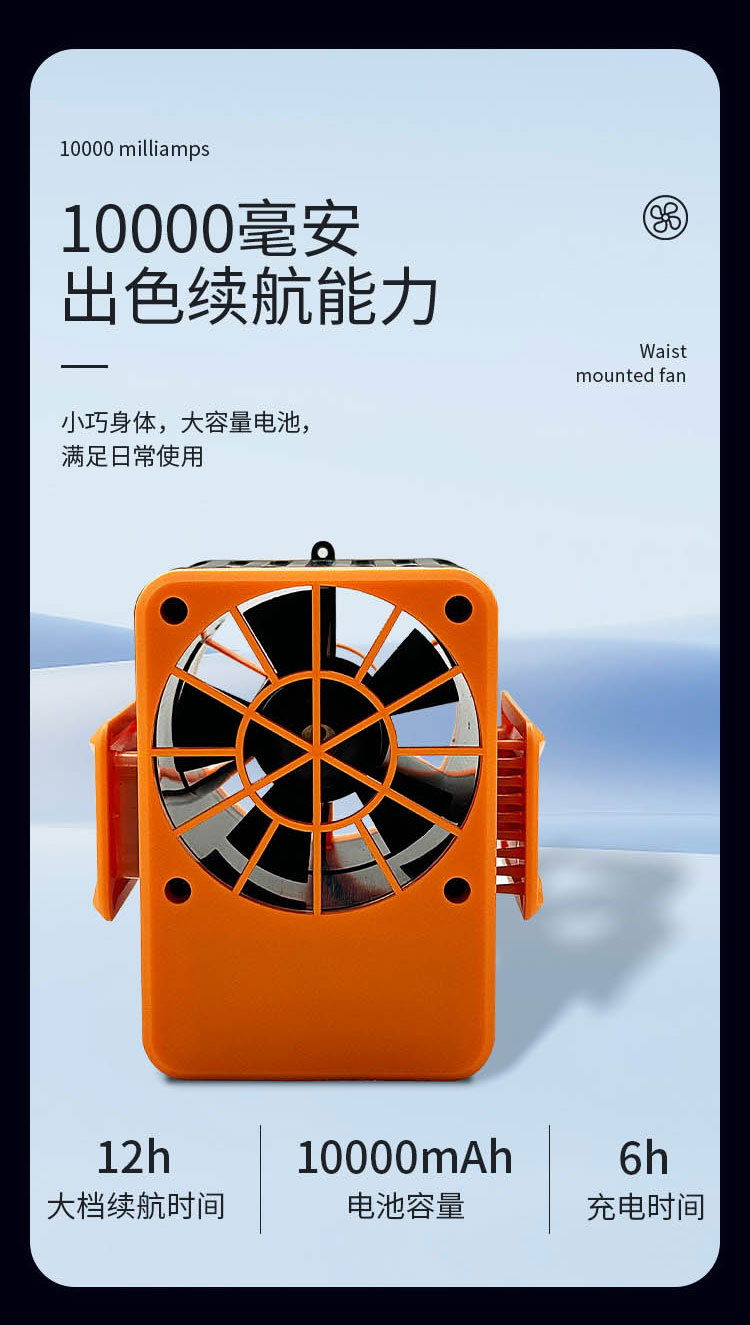 厂家批发新款户外单筒挂腰风扇工地夹腰间腰挂充电暴力降温神器