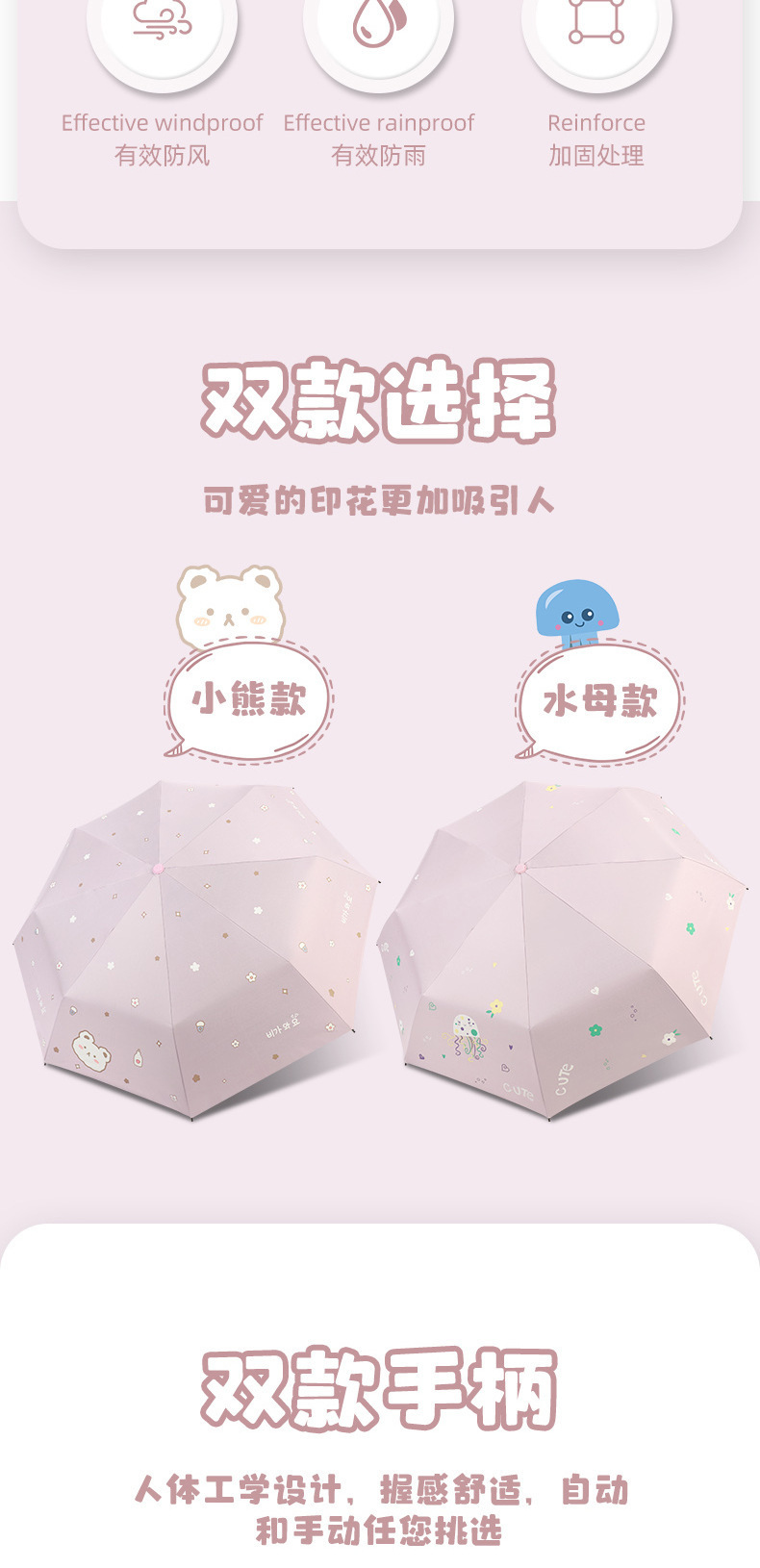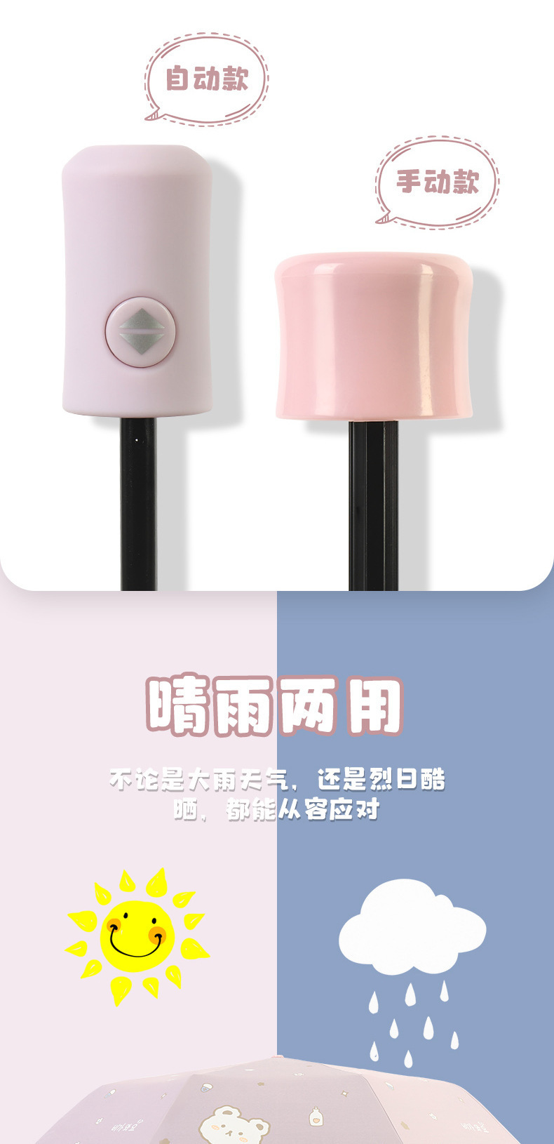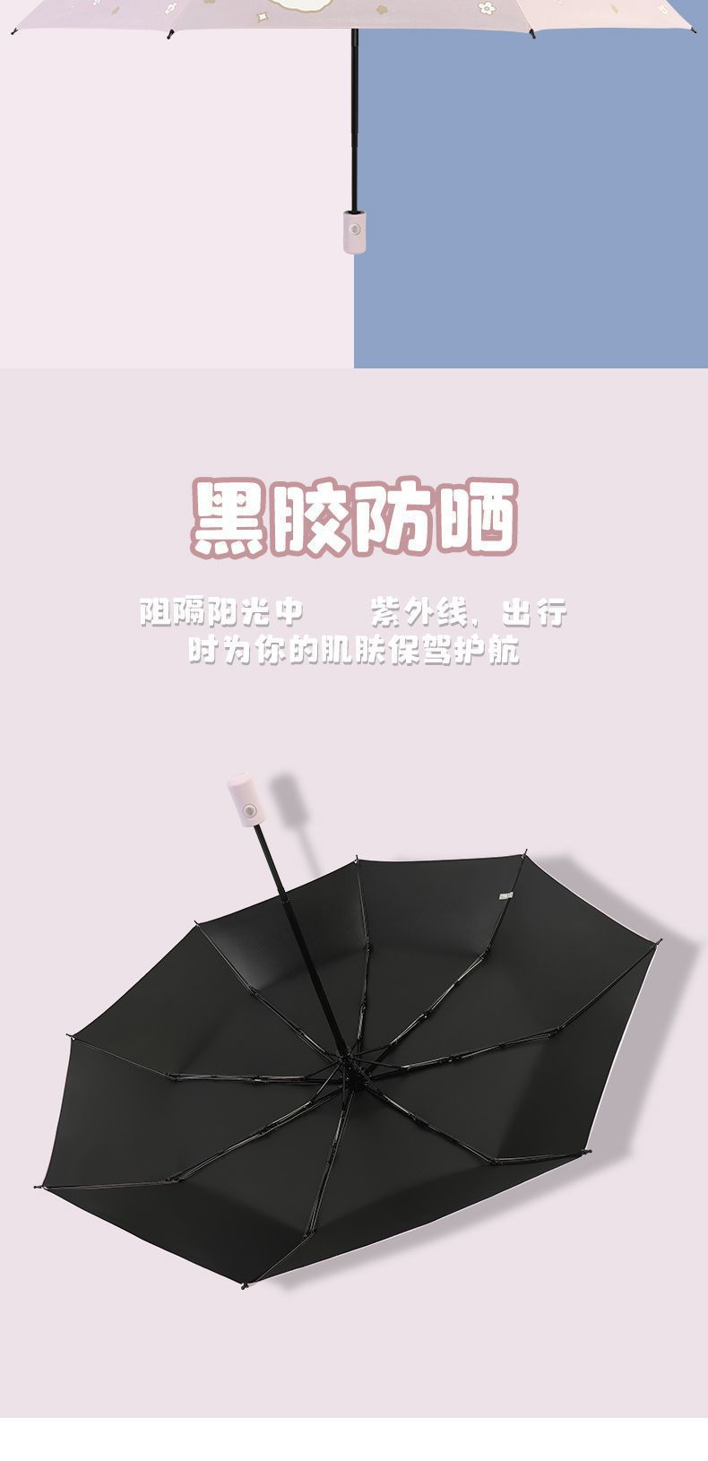 全自动雨伞女学生上学儿童晴雨两用折叠防晒紫外线遮阳伞代发批发