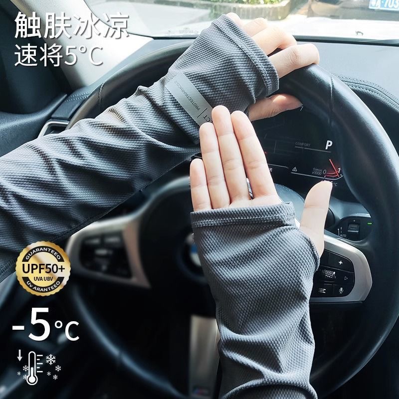 夏季男女开车防紫外线冰袖男士防晒薄款冰丝宽松大码手袖套手套