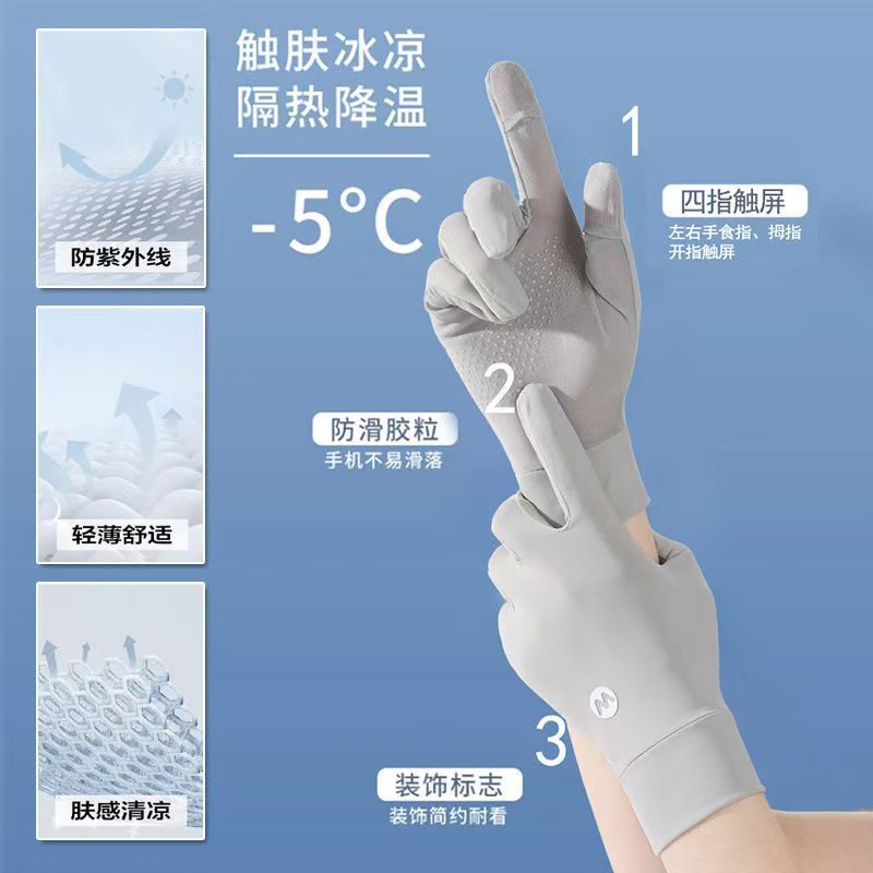 夏季防晒手套女士冰丝超薄骑行防滑触屏透气紫外线露指户外开车