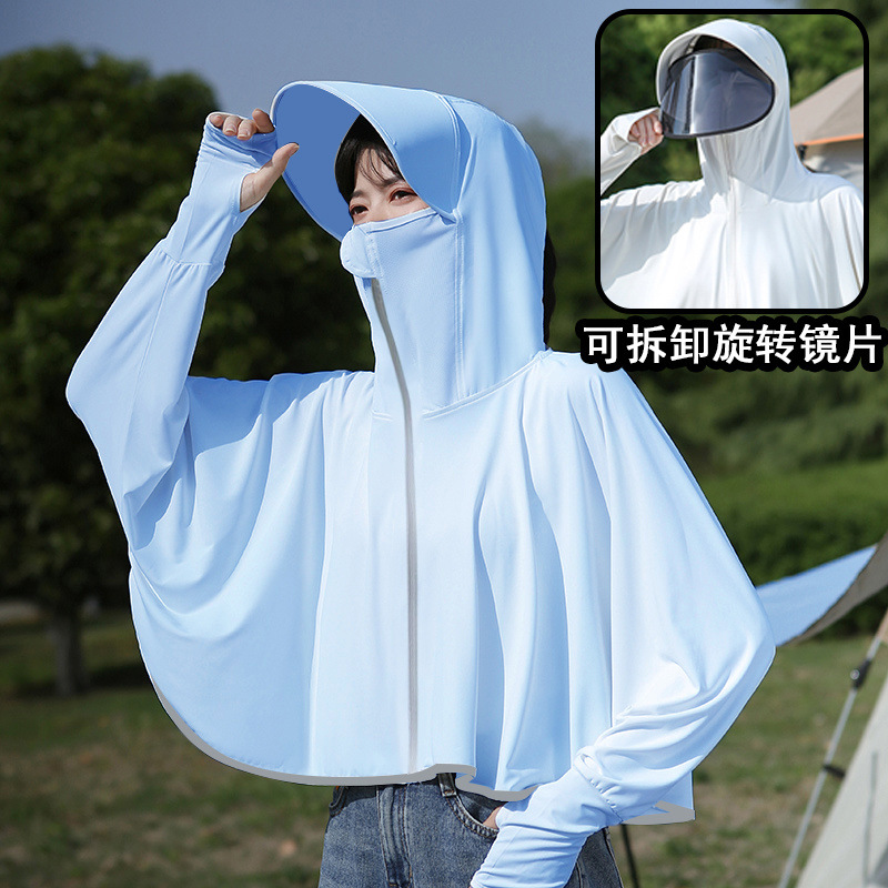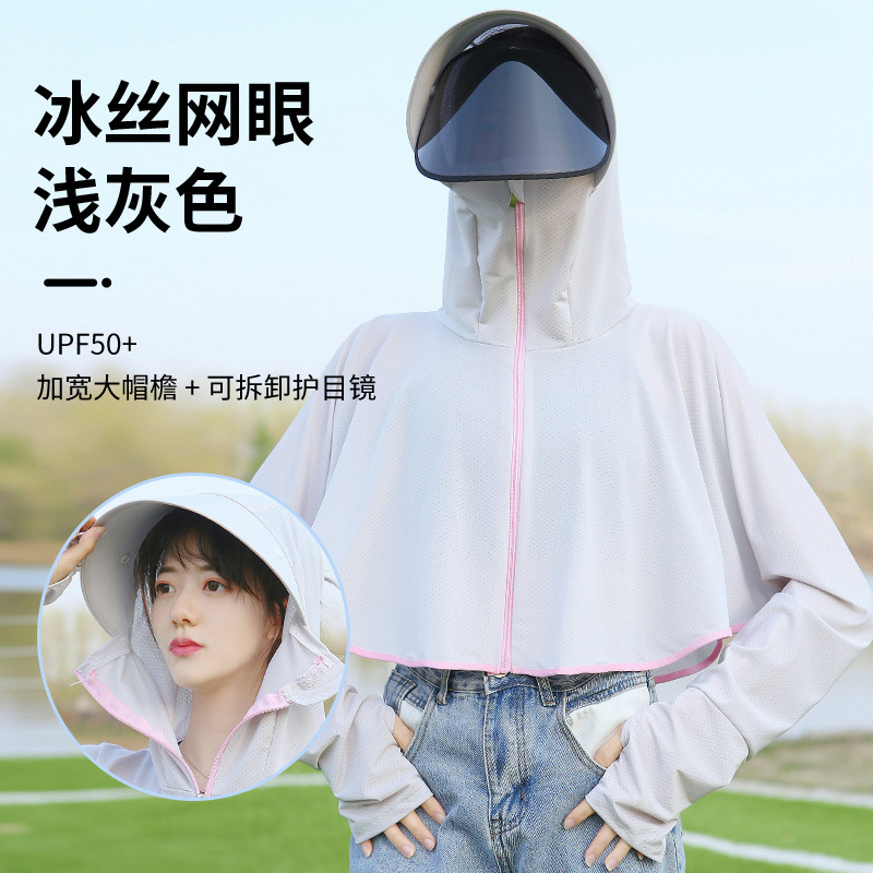 防晒衣女2025夏季新款骑车防紫外线透气冰丝防晒衫骑车网红遮阳帽