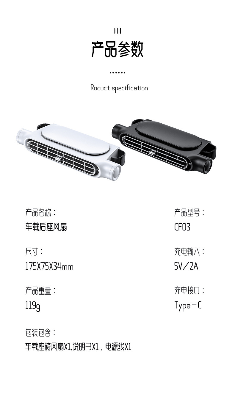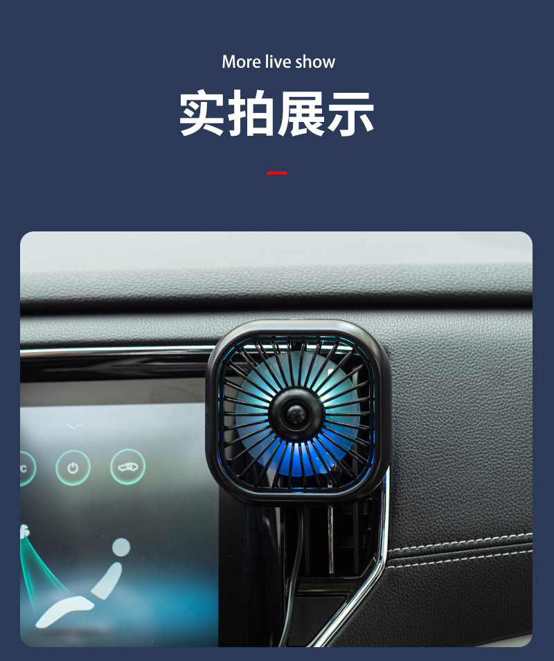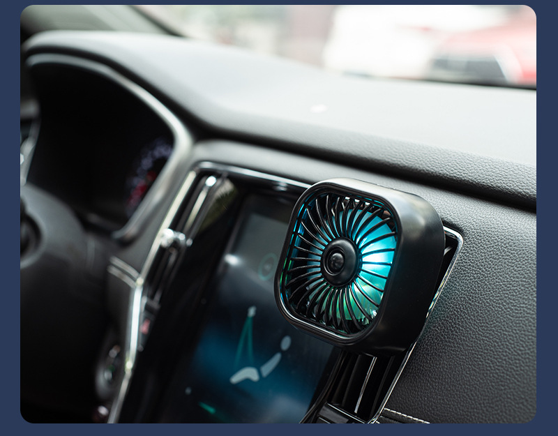 爆款车载风扇氛围灯车载小风扇空调出风口夹子风扇车载座椅风扇