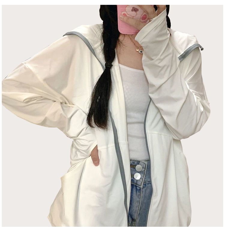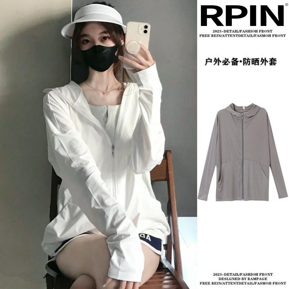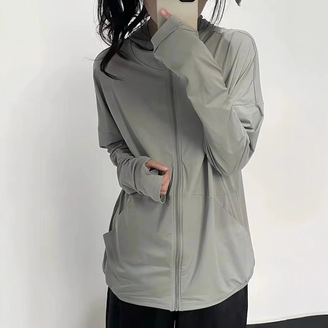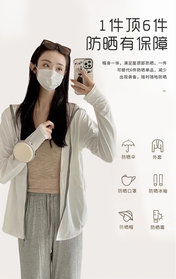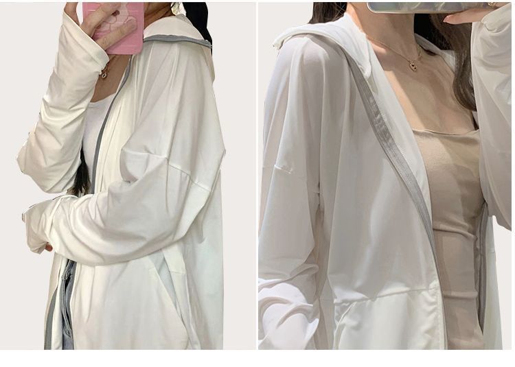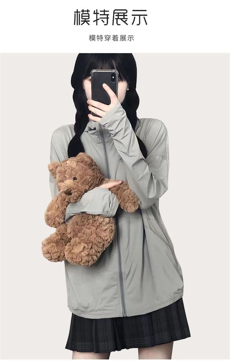 户外凉爽轻薄防晒衣女款冰丝透气凉感开衫连帽防紫外线防晒服外套
